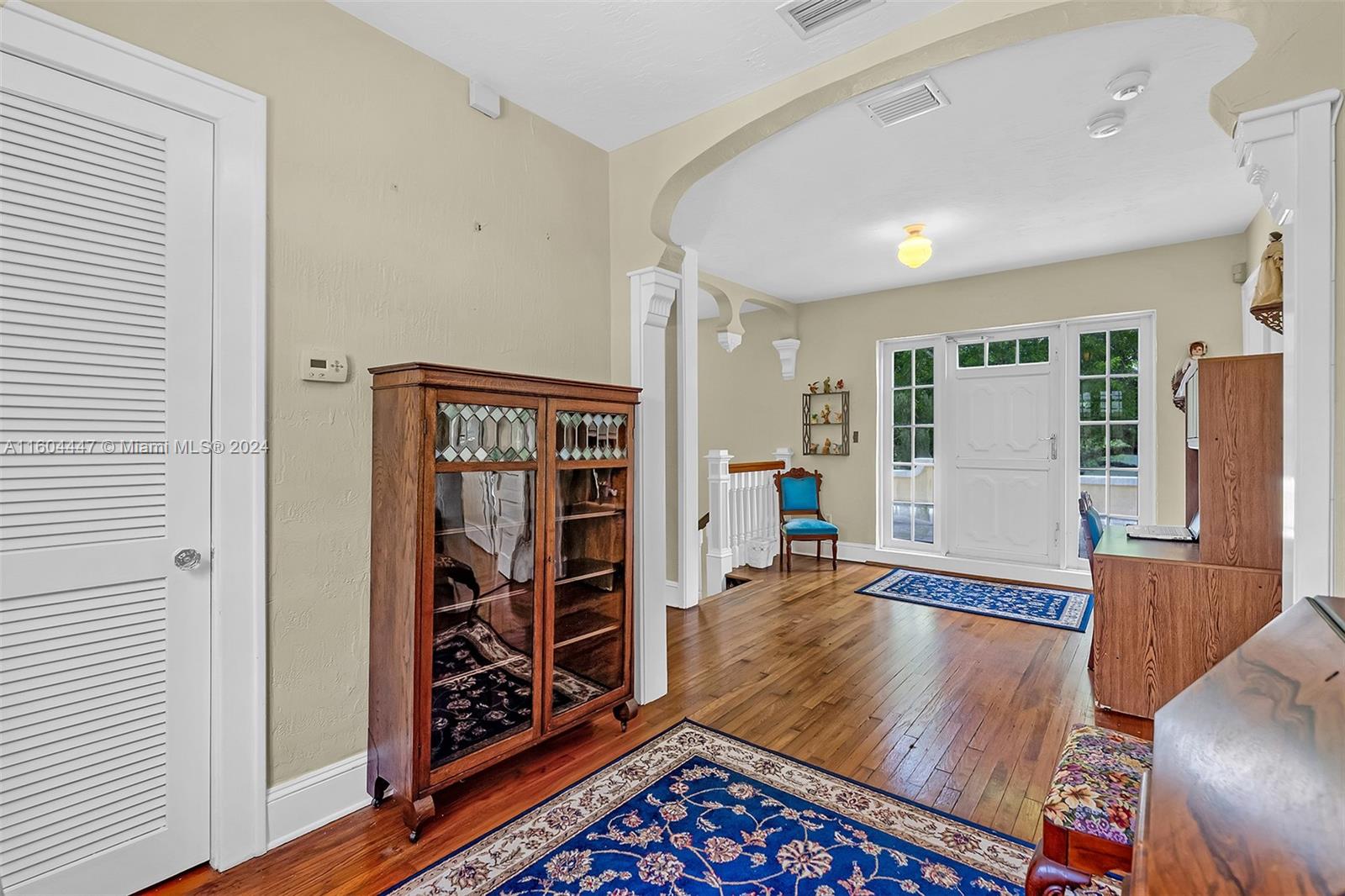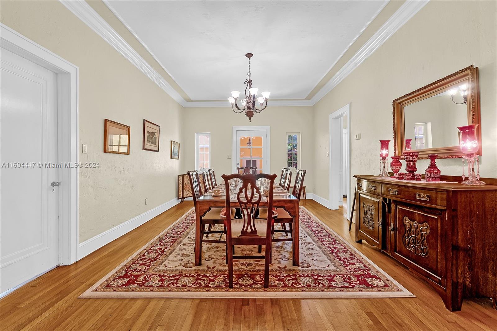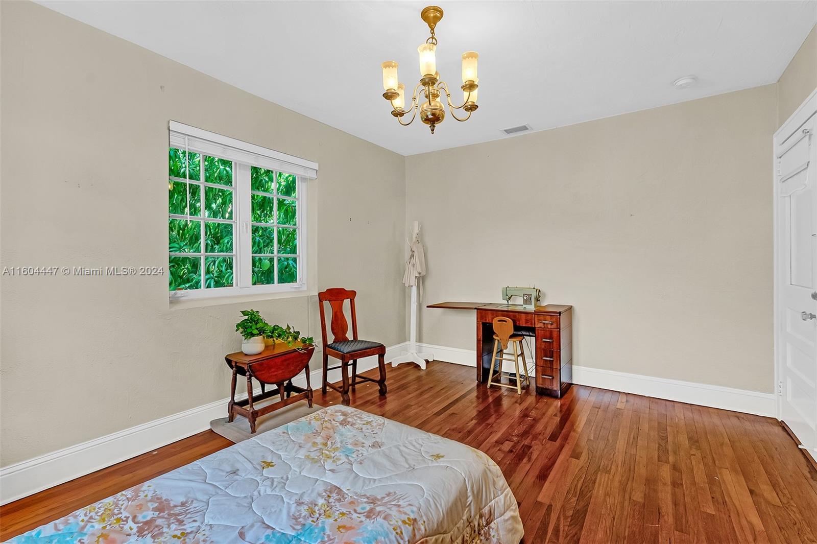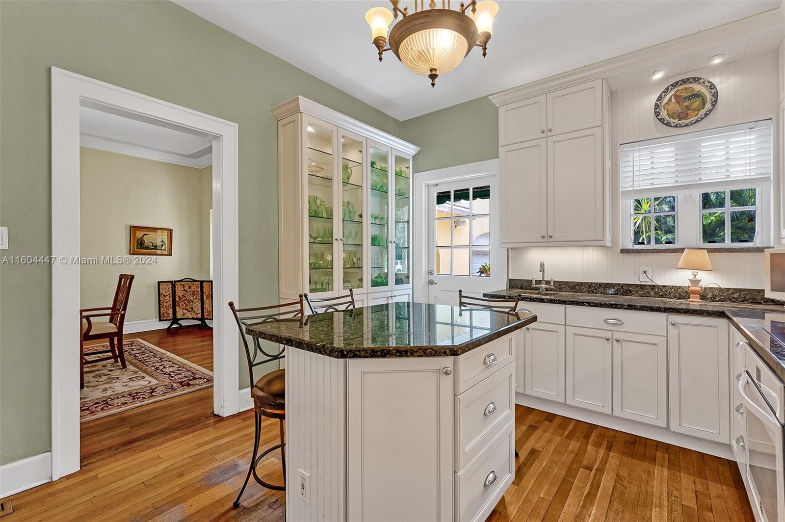 This classic Old Spanish is a true must see starting from roofed front porch entry! Gracious 36x15 ft living area with original fireplace opens to 20x13 ft dining room ideal for entertaining plus chef’s kitchen completely remodeled in 2009 with new expanded kitchen cabinets and island with granite counters. First floor includes 15x12 family room and 14x13 primary suite. Original oak floors. Second floor includes open area ideal for office/crafts/playroom, 2 large bedrooms and bath. Corner property has side street entry to 2 car garage building with upstairs 1/1 guest/in-law quarters. Just 3 blocks to Biltmore Hotel, golf and tennis, Youth Center and Venetian Pool. Short distance to Miracle Mile, Merrick Park and airport.