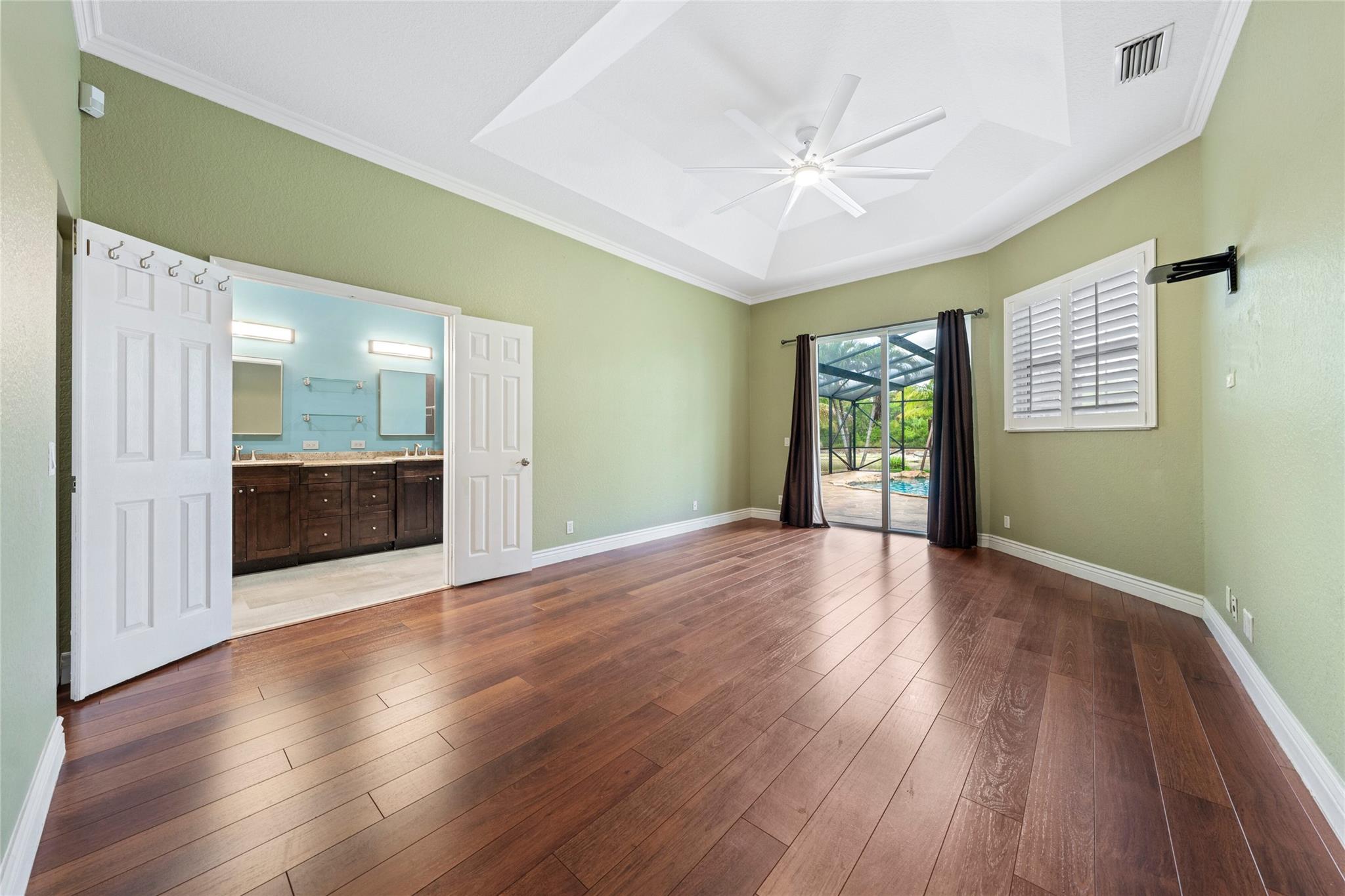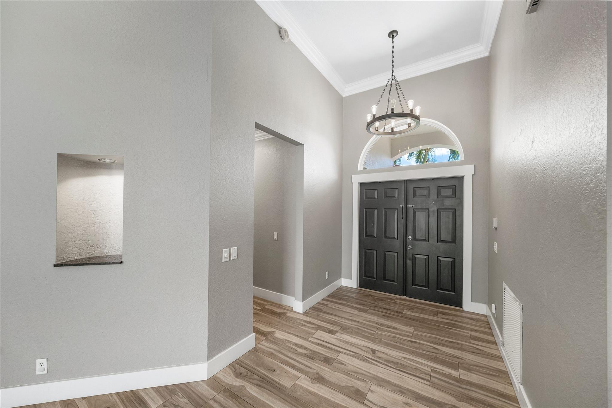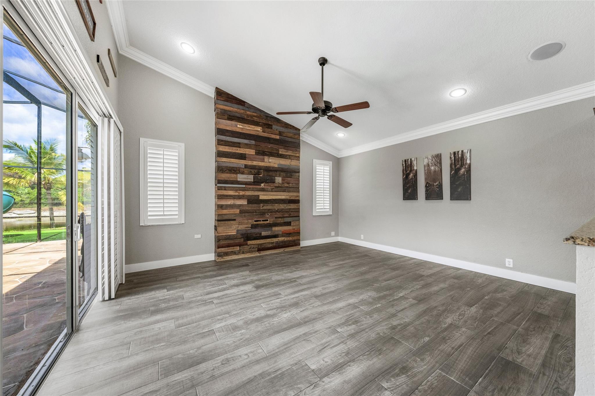 Move-in ready, this is the home you've been waiting for! Situated on an oversized, waterfront lot overlooking a preserve - complete privacy! The house has been fully renovated and features: IMPACT WINDOWS/DOORS throughout; large plank, wood-look tile floors in all living areas & wood laminate flooring in bedrooms; completely remodeled bathrooms; updated kitchen w/wood cabinets, granite countertops and newer stainless steel appliances (2021); newer a/c (2018) and hot water heater (2021); recently painted exterior (2024); crown molding; plantation shutters; volume ceilings; large, screen-enclosed patio w/heated pool (salt); turf in backyard and tons of side yard (with no neighbors on one side)! Low HOA fees and conveniently located near shopping, dining and highways!