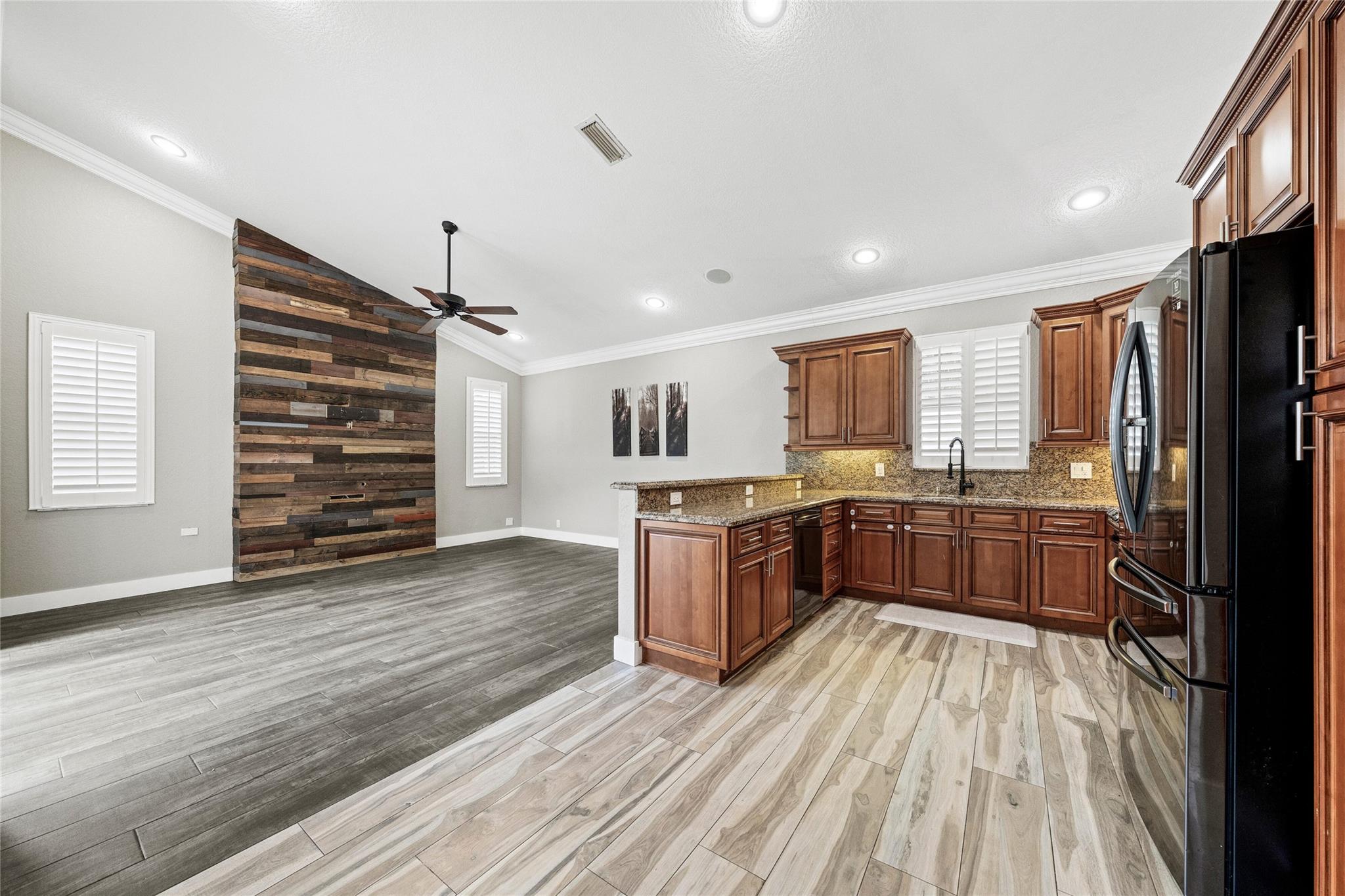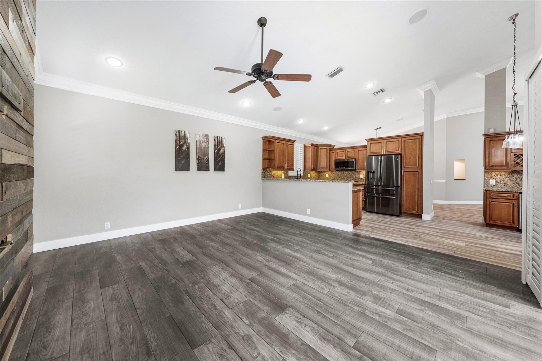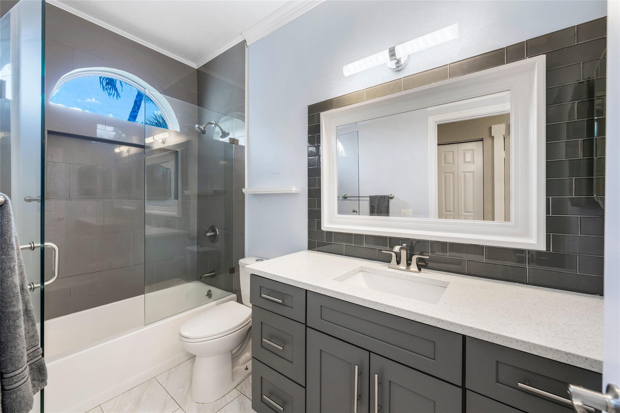 Move-in ready, this is the home you've been waiting for! Situated on an oversized, waterfront lot overlooking a preserve - complete privacy! The house has been fully renovated and features: IMPACT WINDOWS/DOORS throughout; large plank, wood-look tile floors in all living areas & wood laminate flooring in bedrooms; completely remodeled bathrooms; updated kitchen w/wood cabinets, granite countertops and newer stainless steel appliances (2021); newer a/c (2018) and hot water heater (2021); recently painted exterior (2024); crown molding; plantation shutters; volume ceilings; large, screen-enclosed patio w/heated pool (salt); turf in backyard and tons of side yard (with no neighbors on one side)! Low HOA fees and conveniently located near shopping, dining and highways!