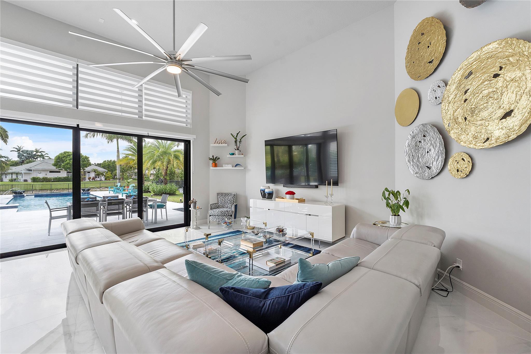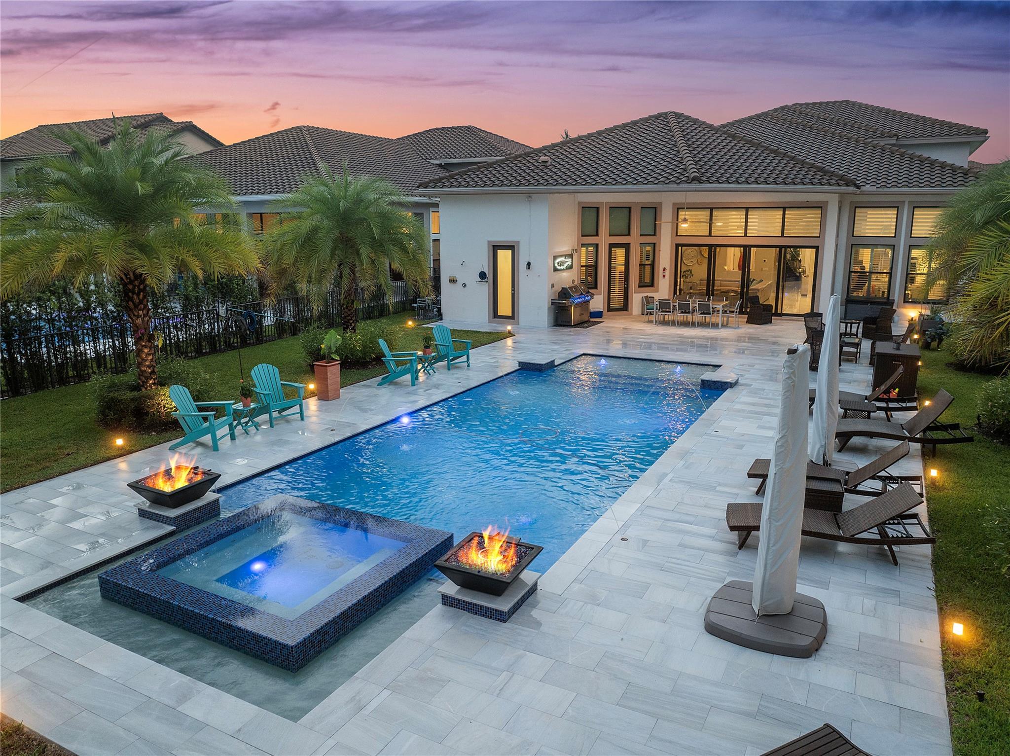 Nestled within the prestigious enclave of Parkland Golf and Country Club, this extraordinary residence redefines luxury living with its impeccable design and unparalleled amenities. Gorgeous Carrington Model, 5-bedroom, 5.5-bathroom plus custom built library and lushly landscaped resort style salt water pool and patio with peaceful water view. As you approach the entrance, etched front doors welcome you into a grand foyer illuminated by the soft glow of LED lights. Downstairs master suite with His and hers bathrooms offer unparallel comfort. The stunning chef's kitchen is a culinary masterpiece, featuring top-of-the-line appliances, gas stove, plentiful storage, and an oversized island perfect for both meal preparation and casual dining. Custom closets and exquisite lighting add a touch of