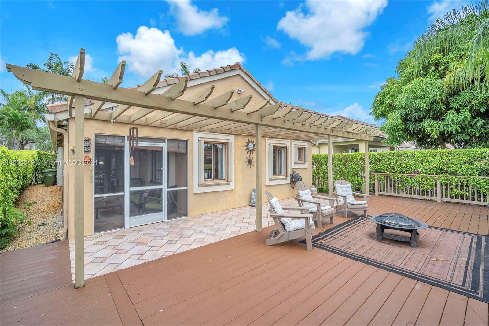 This elegant 3 bed, 2 bath home offers a blend of luxury and comfort, with a range of high-end features and finishes throughout. All living areas feature large 18x18 neutral Italian marble providing a sophisticated and timeless look. All three bedrooms feature beautiful hardwood floors, adding warmth and elegance to these private spaces. The kitchen features top of the line stainless steel appliances along with wood cabinets and granite countertops. The bathrooms are covered in Italian tumbled marble, wood cabinets and granite countertops. The patio features an oversized deck complete with pergola overlooking a tranquil lake. This home combines luxury finishes with practical design elements, making it a perfect choice for those seeking both style and functionality in a beautiful setting.