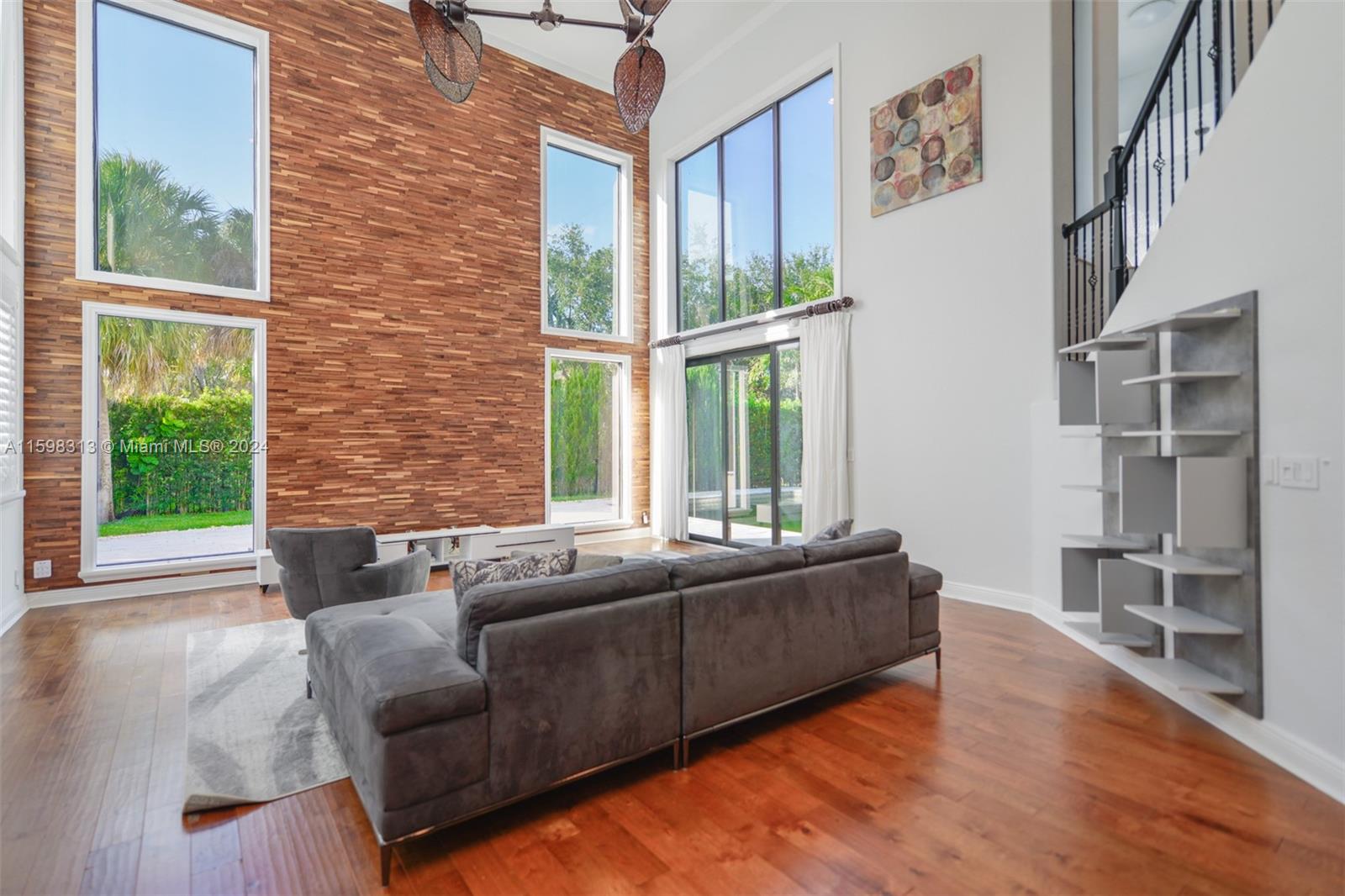 Elegant and modern remodeled 5-bedroom, 3-bathroom residence, featuring a private heated pool and BBQ area. Enhanced with impact windows and a modern kitchen boasting top-tier cabinets, this home also offers a 2-car garage w/tesla charger and complete backyard privacy with outdoor kitchen. Nestled on an expansive cul-de-sac lot within the prestigious Heron Bay community, it showcases captivating 20-foot ceilings, a triple split floor plan, a wood and iron staircase, hardwood floors, and meticulously designed landscaping. Residents can take advantage of Heron Bay's gated entrance, clubhouse, tennis courts, fitness facility, and swimming pools.