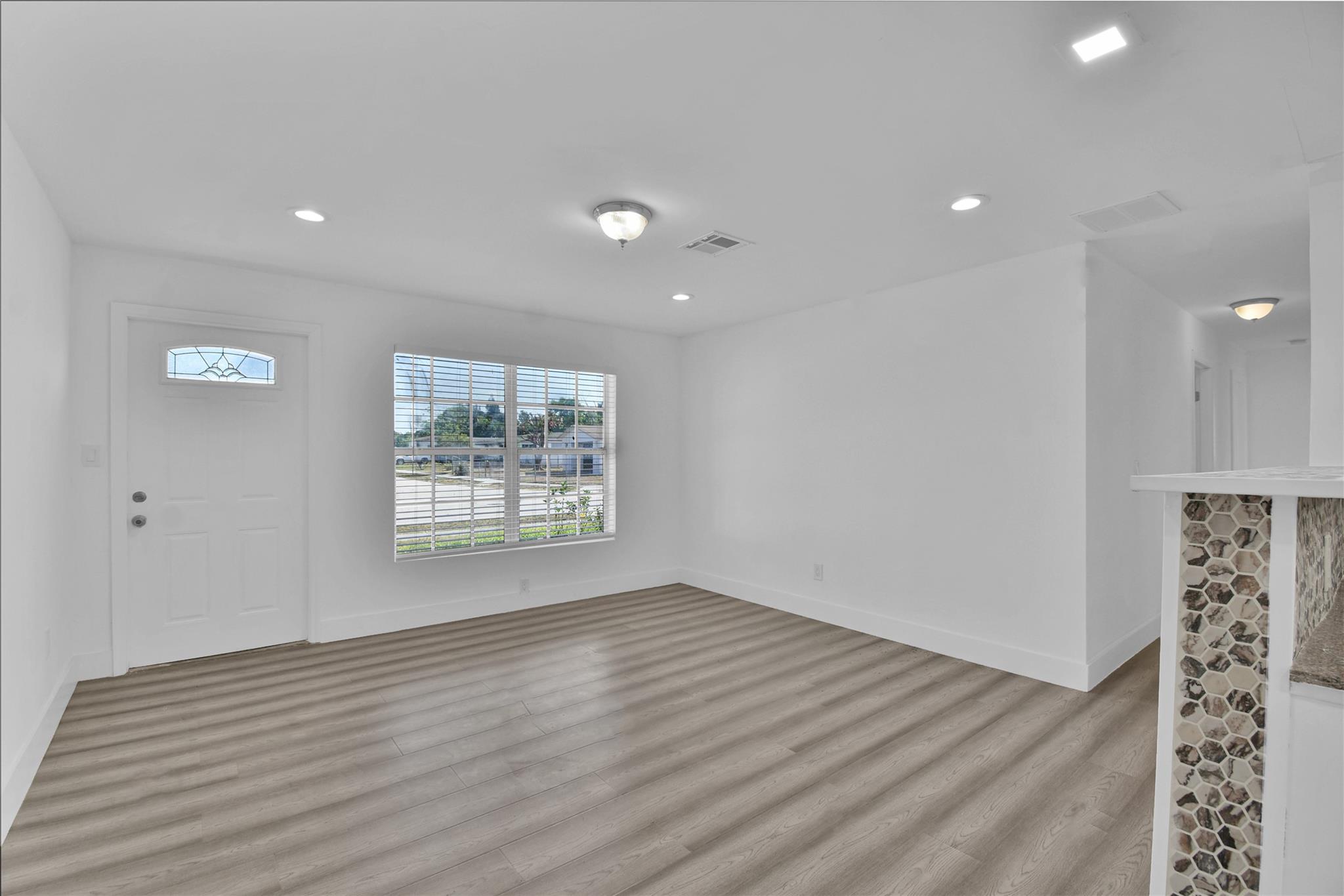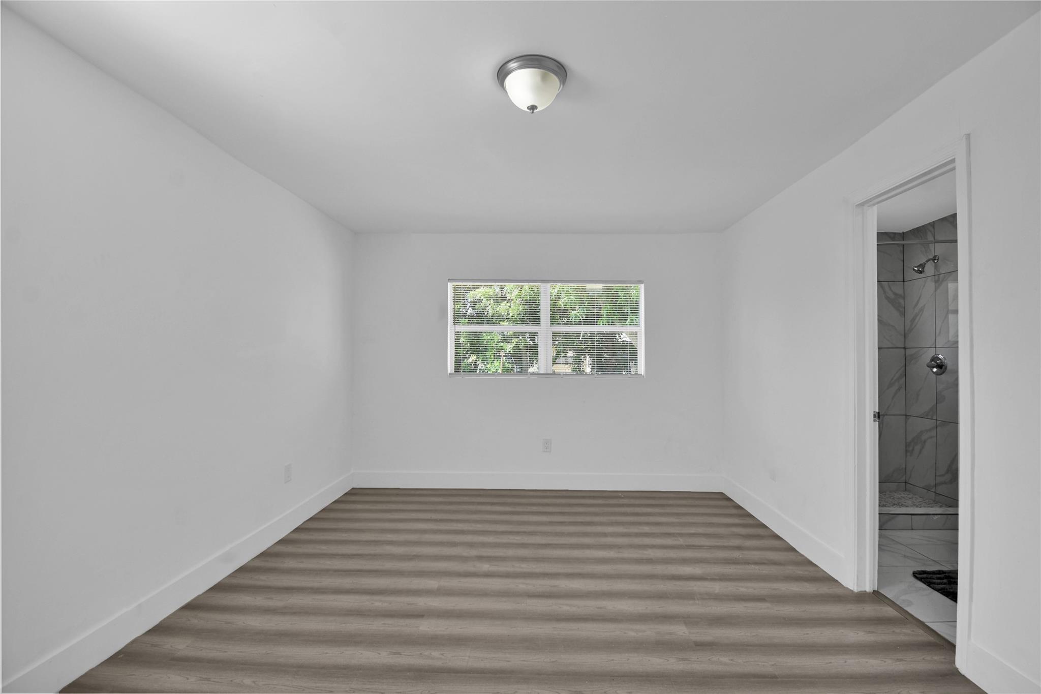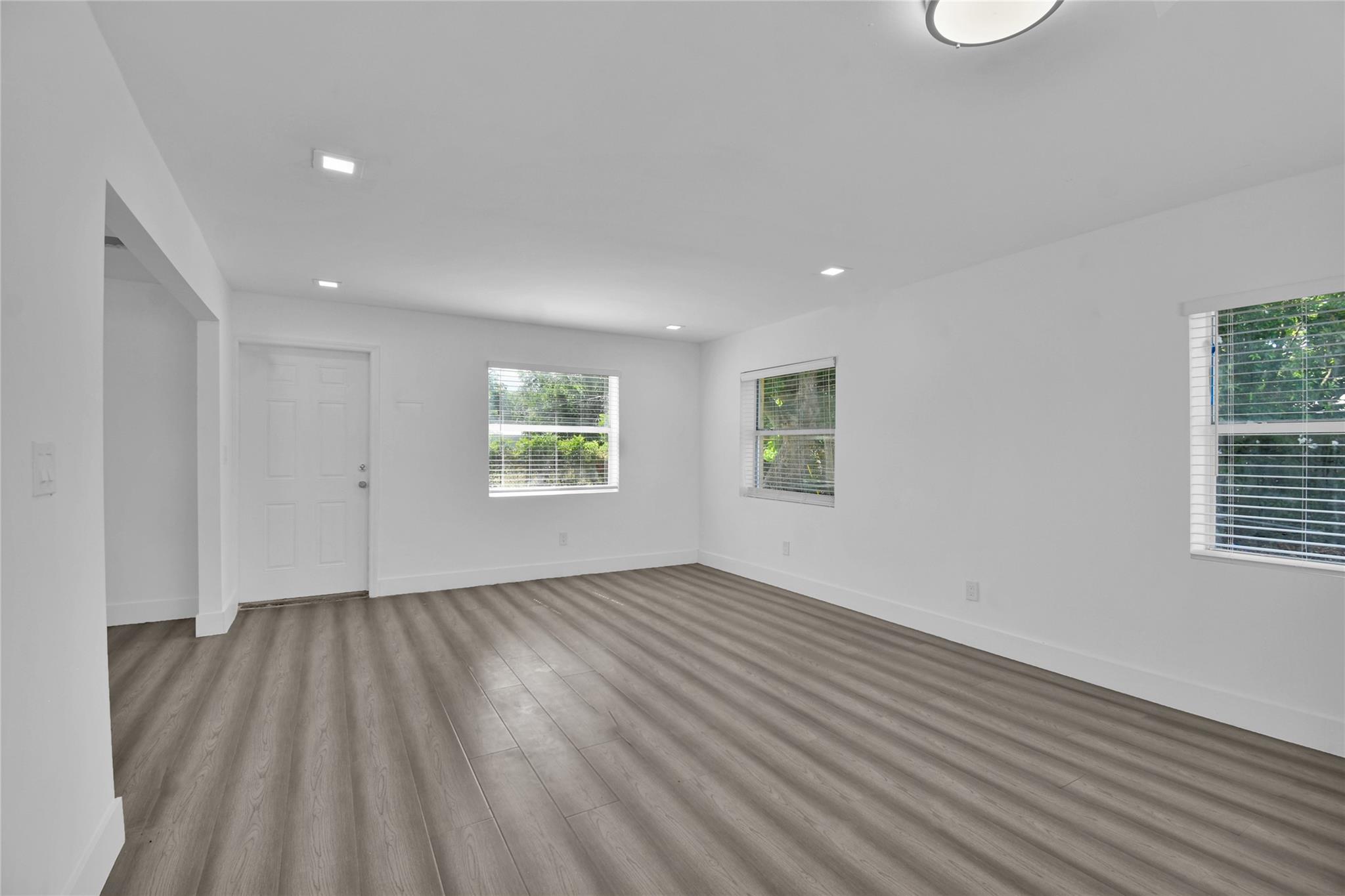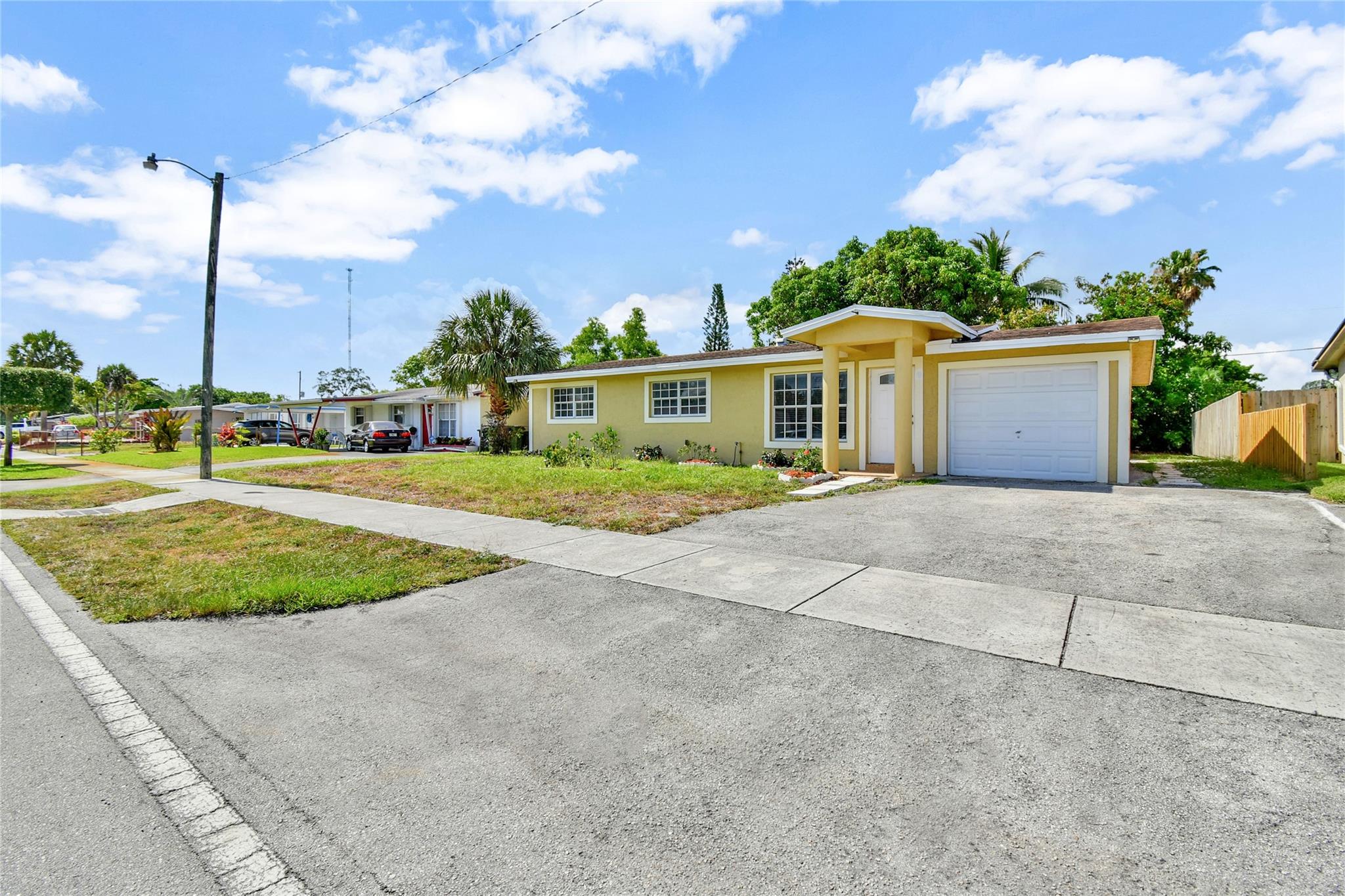 Newly renovated 3-Bed, 2-Bath home + Den with separate entrance that can be converted into a studio for extra income! Conveniently located near I-95 & Turnpike, just 13 minutes from Las Olas & 15 minutes from the beach with NO HOA or rental restrictions. Situated on a 6,800-sq ft fenced lot, this property boasts a serene backyard w/mango trees, ideal for entertaining & a 1-car garage equipped w/cabinetry for ample storage. The living area is accentuated by recessed lighting & distinct grey vinyl flooring. The kitchen showcases custom cabinetry, granite countertops, & stainless steel appliances. Enjoy spacious bedrooms and a distinctive guest bathroom w/marble-style tiles & gold accents. The sizable master bedroom features a luxurious en-suite bathroom with dual sinks and mirrors.