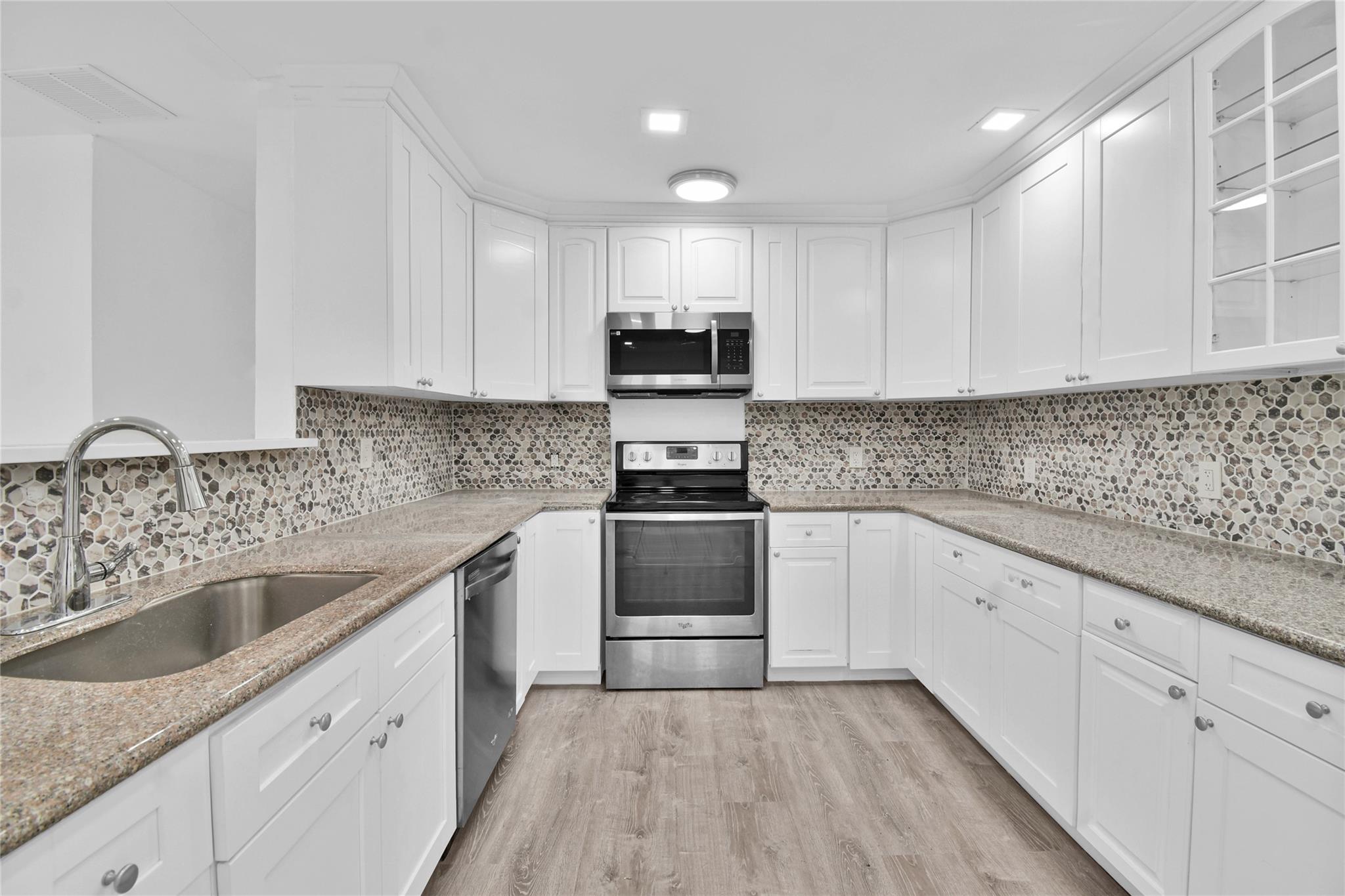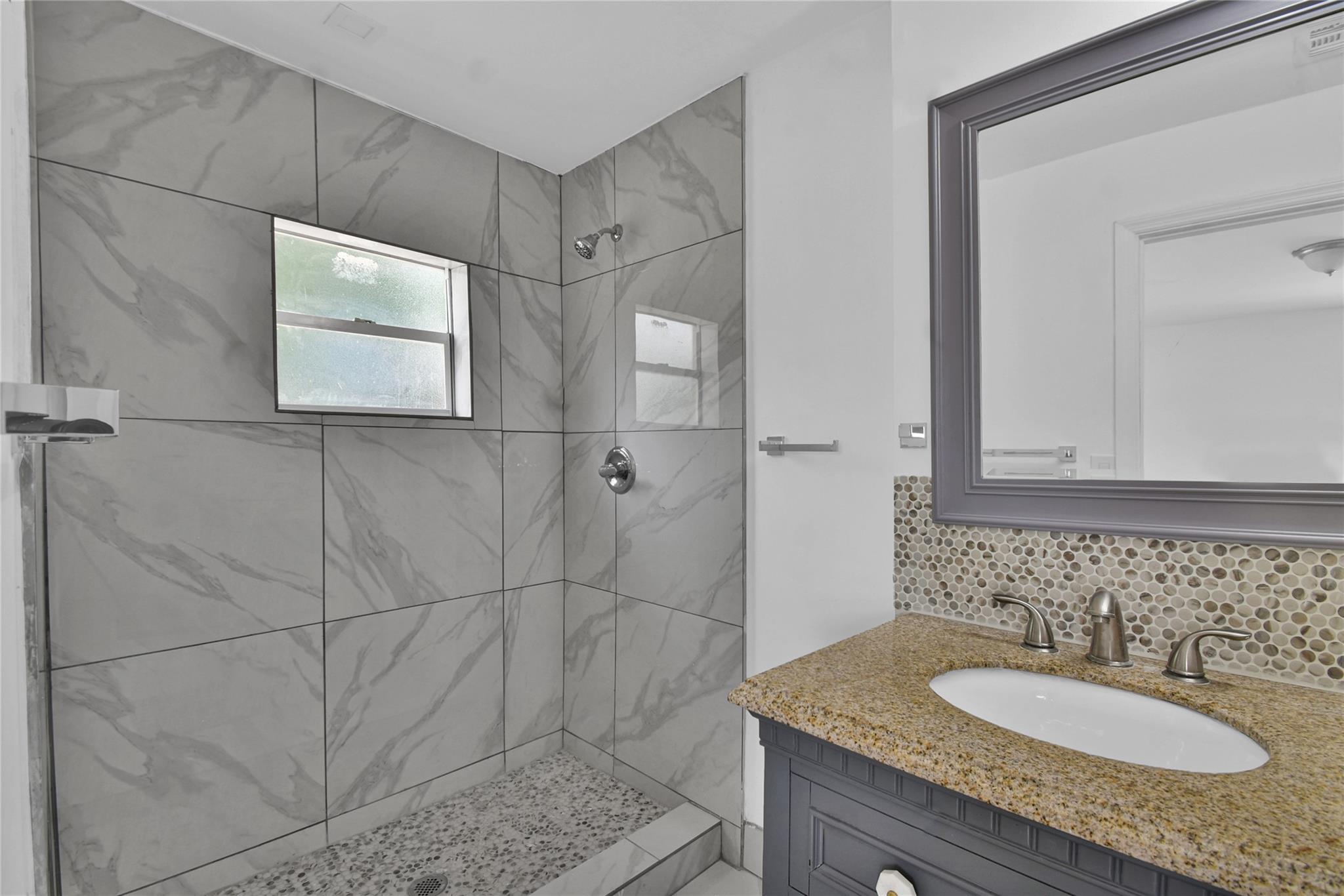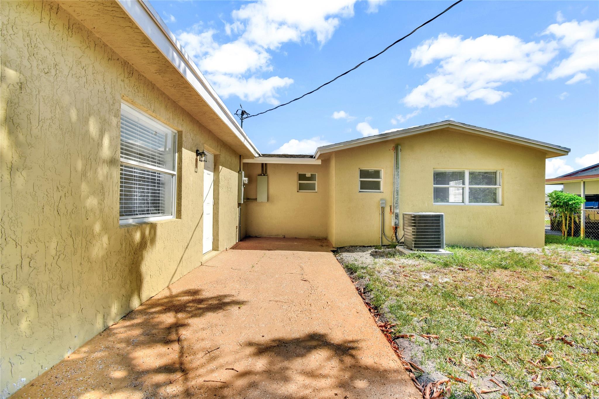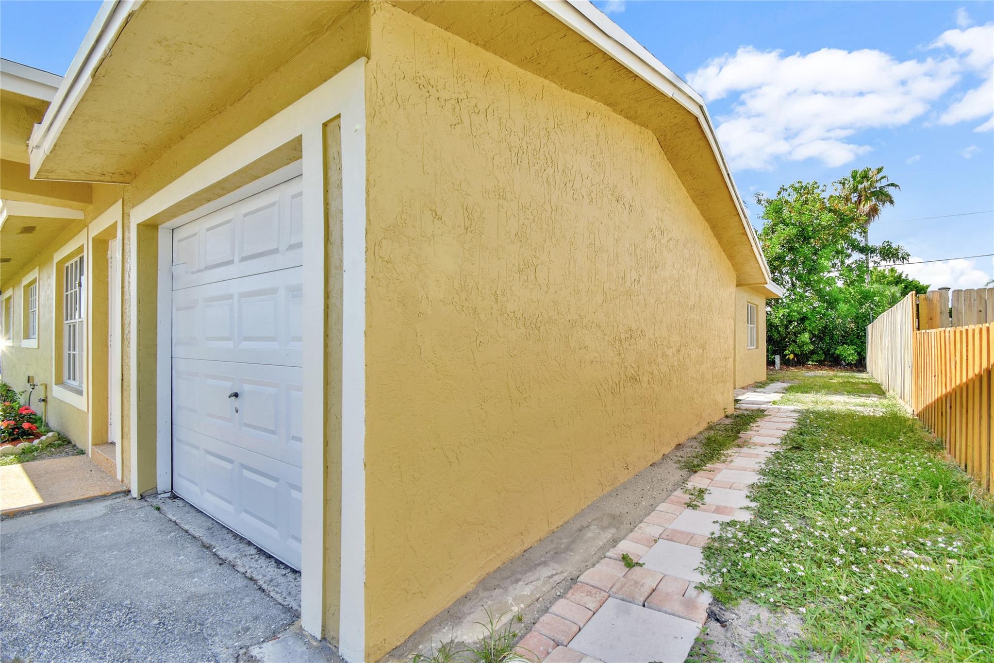 Newly renovated 3-Bed, 2-Bath home + Den with separate entrance that can be converted into a studio for extra income! Conveniently located near I-95 & Turnpike, just 13 minutes from Las Olas & 15 minutes from the beach with NO HOA or rental restrictions. Situated on a 6,800-sq ft fenced lot, this property boasts a serene backyard w/mango trees, ideal for entertaining & a 1-car garage equipped w/cabinetry for ample storage. The living area is accentuated by recessed lighting & distinct grey vinyl flooring. The kitchen showcases custom cabinetry, granite countertops, & stainless steel appliances. Enjoy spacious bedrooms and a distinctive guest bathroom w/marble-style tiles & gold accents. The sizable master bedroom features a luxurious en-suite bathroom with dual sinks and mirrors.