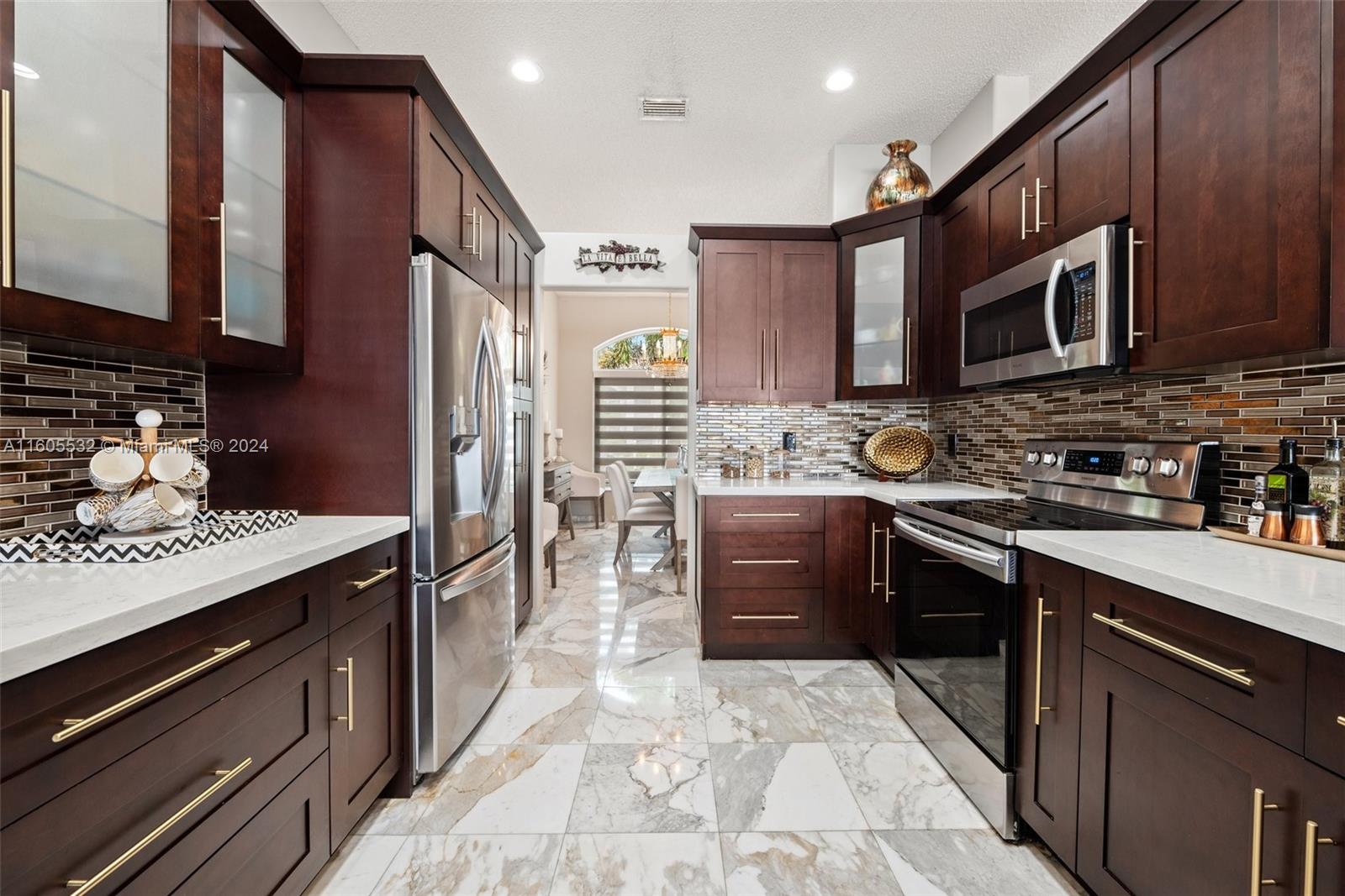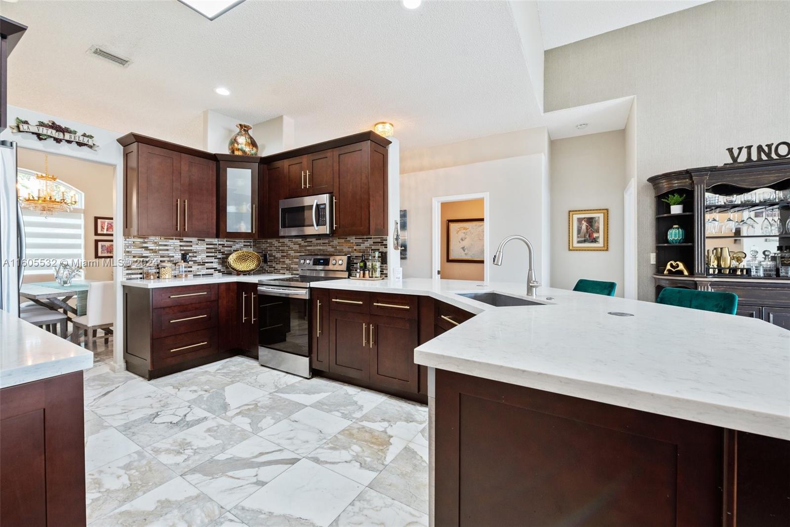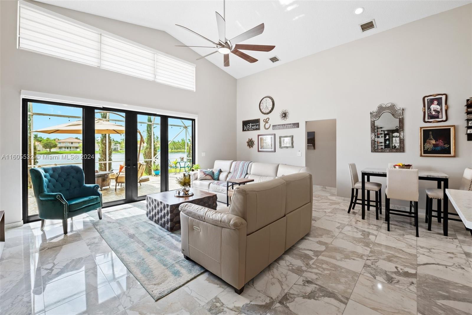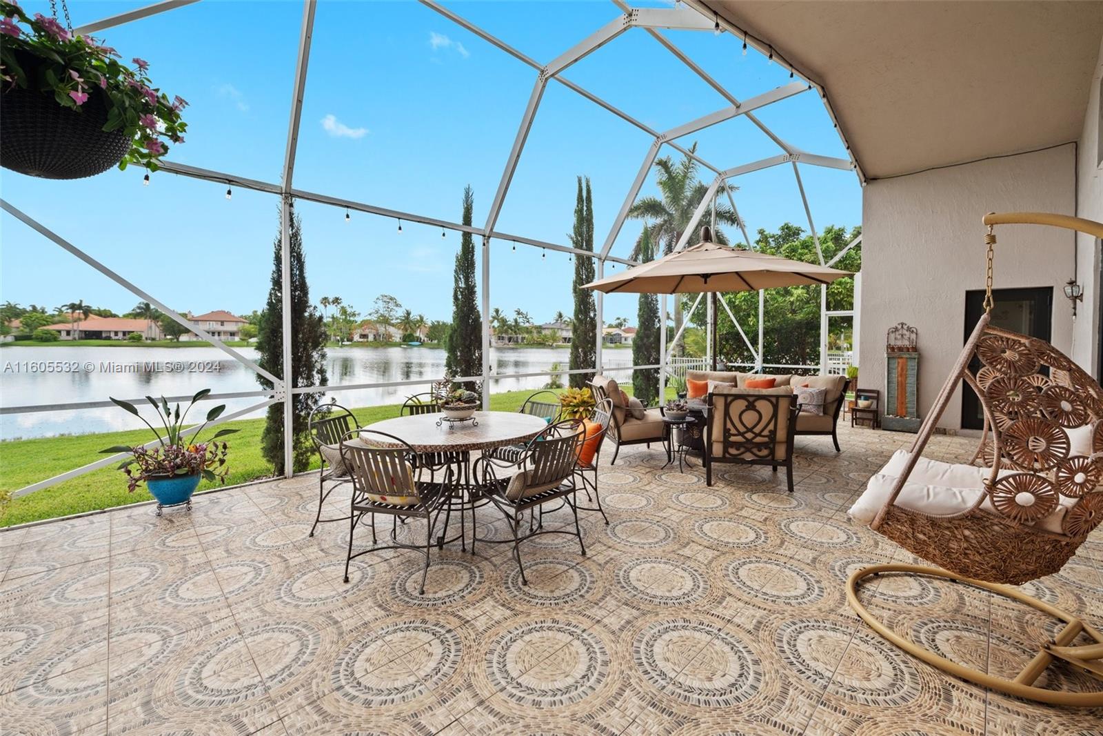 Stunning Lakefront Residence Experience modern living at its finest in this exquisite lakefront residence. Featuring 3 bedrooms, 2.5 beautifully designed bathrooms, a den, and a 2-car garage, this home offers a perfect blend of style and functionality. Step onto the large screened patio and enjoy serene lake views. With a new roof, front & rear impact doors & windows, accordion shutters on sides , Inside, you'll find a fully renovated kitchen and baths, along with newer A/C and hot water heater. The re-tiled patio adds to the home's allure. The interior boasts complete upgrades, including marble flooring, a top-of-the-line kitchen with sleek cabinetry, and a tranquil master suite with a modern, European-designed bathroom. Welcome to luxury living at its finest.