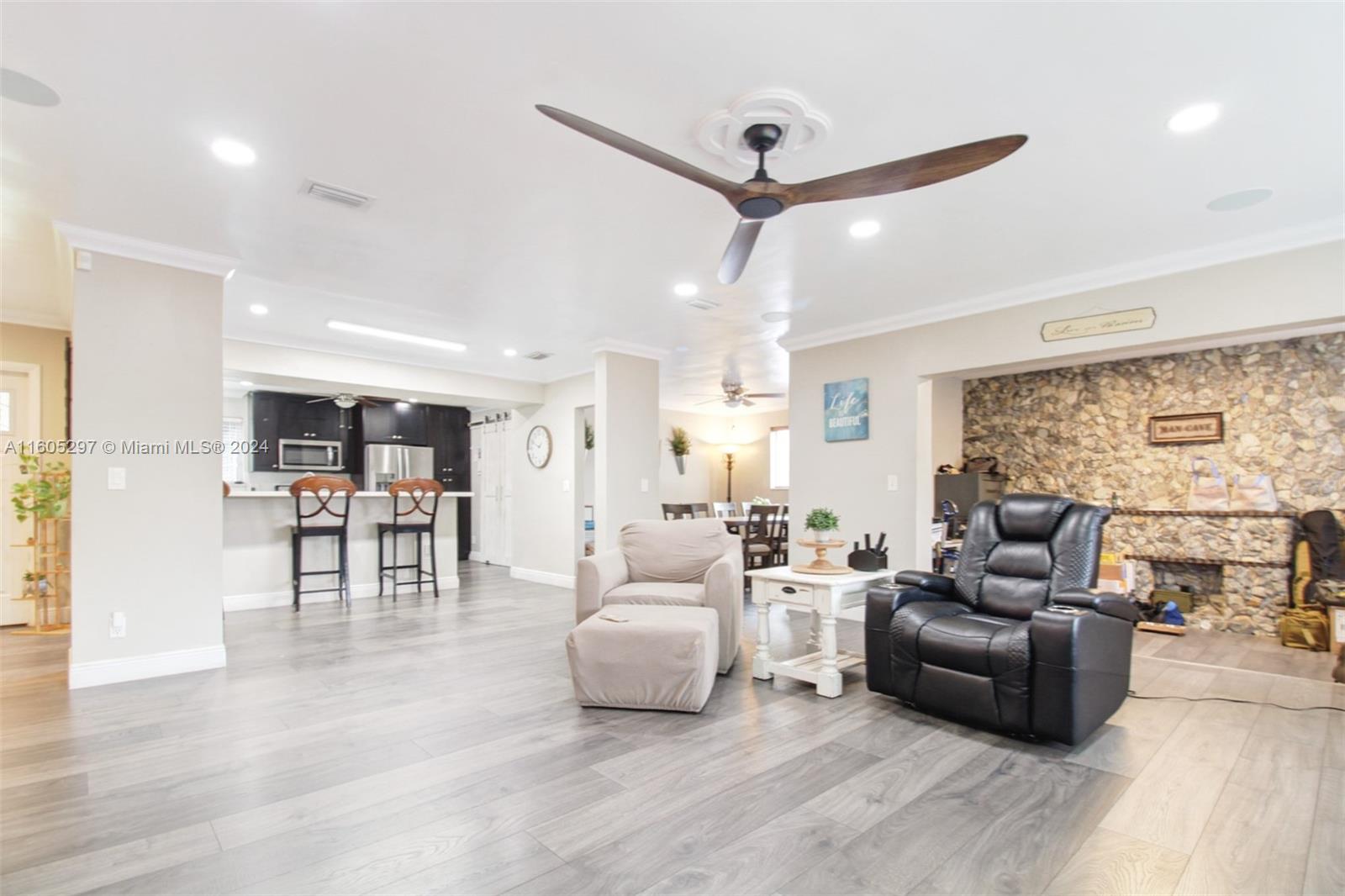 Single-family home. The kitchen is equipped with quartz countertops & stainless steel appliances, while Brazilian floors & elegant bathroom fixtures add a touch of sophistication throughout the house. The farm doors, newer roof, newer windows, shutters & updated electrical panel provide peace of mind for potential buyers. The pipes have been recently changed, adding to the home's overall appeal. Outside, the property offers two sheds & a fenced patio for added storage & outdoor living space. Inside, the home features a formal dining room & a den or bonus room that can be versatile for various needs. The primary bedroom has two walk-in closets & a spacious en suite, two additional bedrooms & a bathroom. Surround sound & ring alarm system. Close to Broward Community College & the Turnpike.