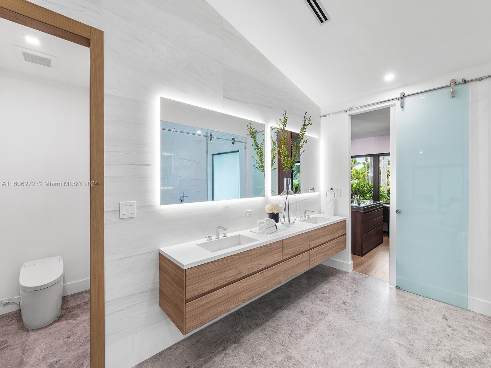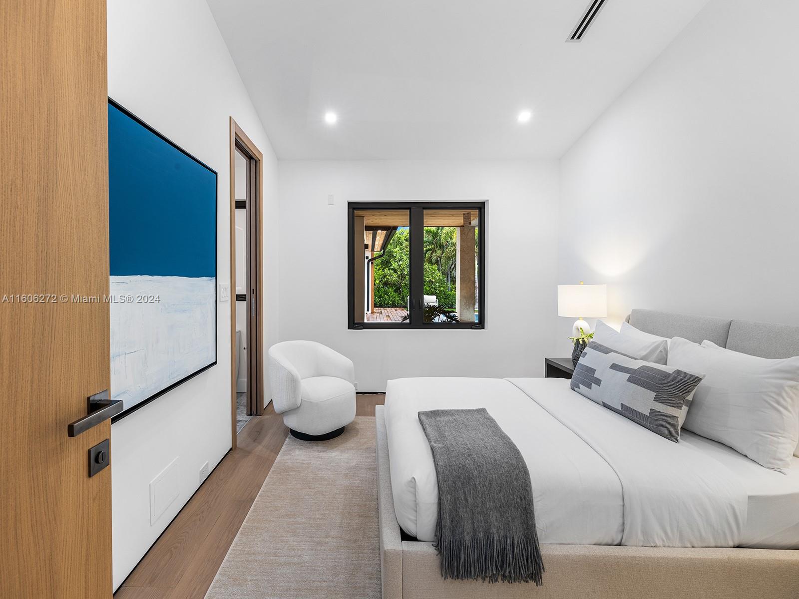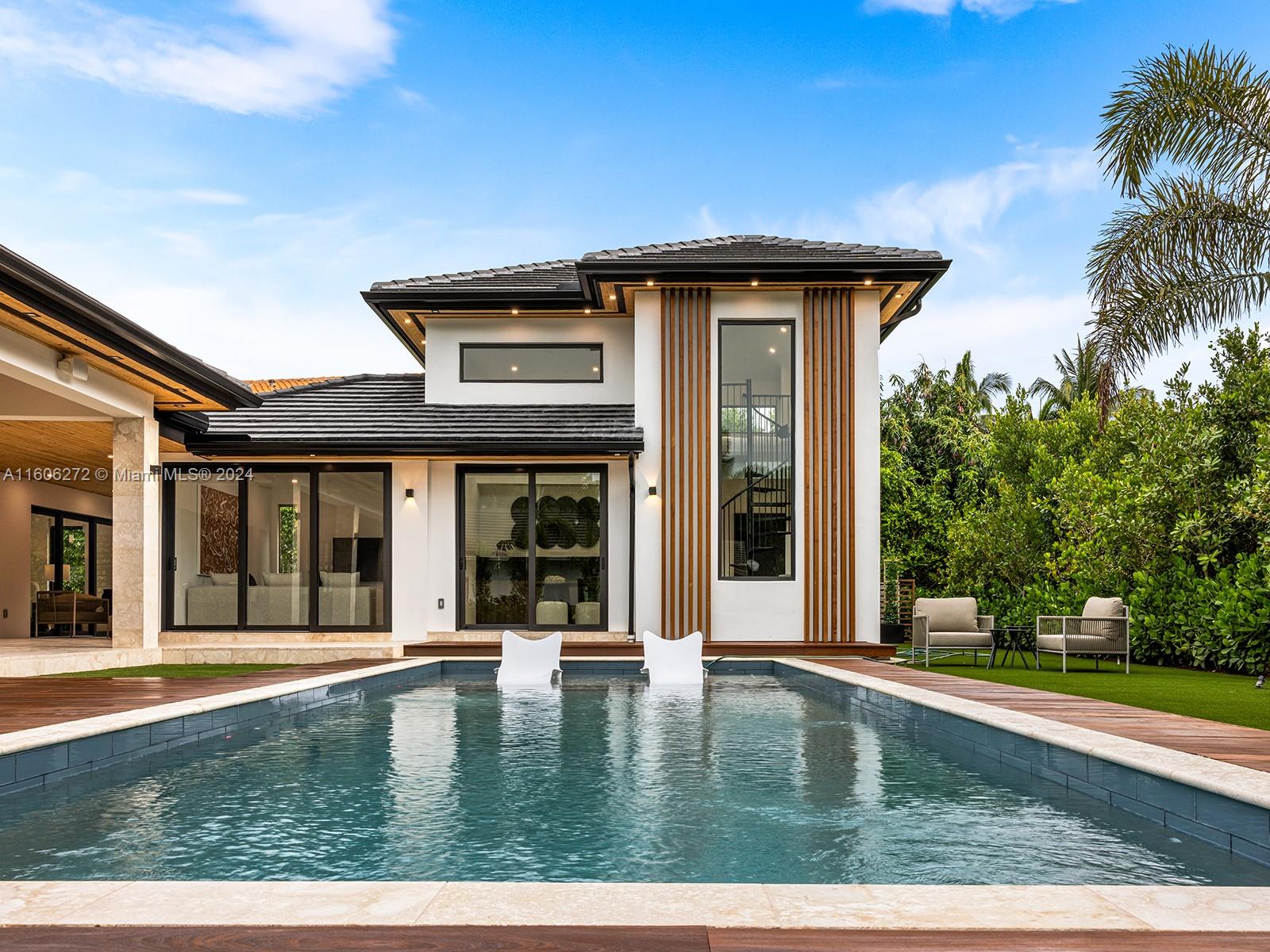 Welcome to this stunning, turnkey contemporary home in Cocoplum. Offering 5 bedrooms and 5.5 bathrooms across 5,391 sqft under AC, this home features high ceilings, recessed lighting, hardwood floors, and floor-to-ceiling windows. The Mia Cucina kitchen, with top-of-the-line appliances, an island, and a pantry, is a chef's delight. There is also a formal dining room, home office, library/den, or media/recreation room. The primary suite has a Mia Cucina walk-in closet and a luxurious marble bathroom with a soaking tub, double shower, and dual vanity. Other bedrooms have custom closets and ensuite bathrooms with elegant finishes. The private yard includes an expansive pool and a summer kitchen, ideal for entertaining. Don’t miss this masterpiece in one of Coral Gables' top neighborhoods!