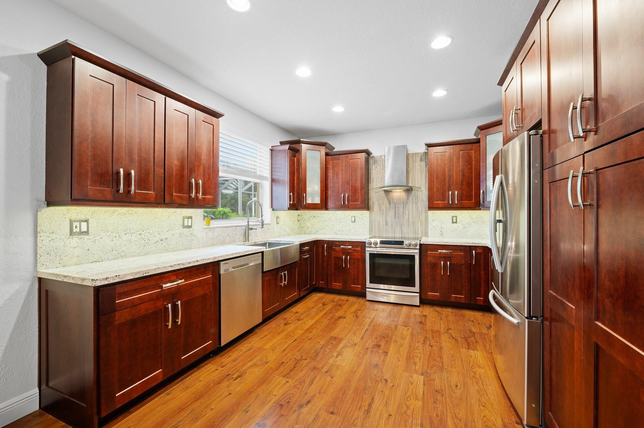This exquisite 4 bedroom, 3 bathroom home exudes charm & elegance. The updated kitchen features stainless appliances, farmhouse sink & quartz counters. Primary bdrm is a sanctuary itself, w/ private balcony overlooking the lake & additional sitting room can easily transform into an office or serve as a 5th bedroom. Additional bedrooms are spacious w/ great closet space. Boasting a refreshing pool & screened in patio, it's ideal for entertaining. Recently painted exterior & new exterior lights enhance its curb appeal, while the aluminum fence surrounding the backyard provides both security & style. W/ a spacious 3 car garage providing ample storage space, this home combines luxury, functionality, and breathtaking views, promising a lifestyle of comfort & relaxation.