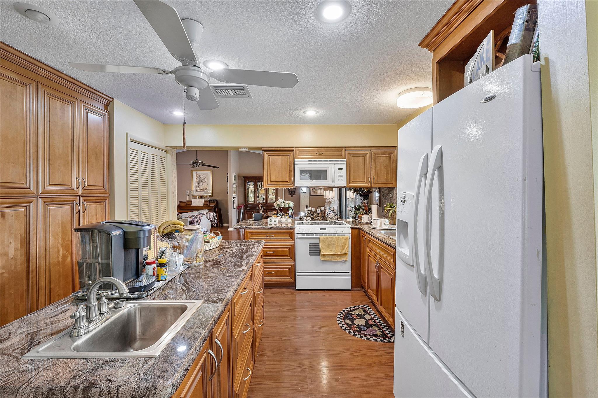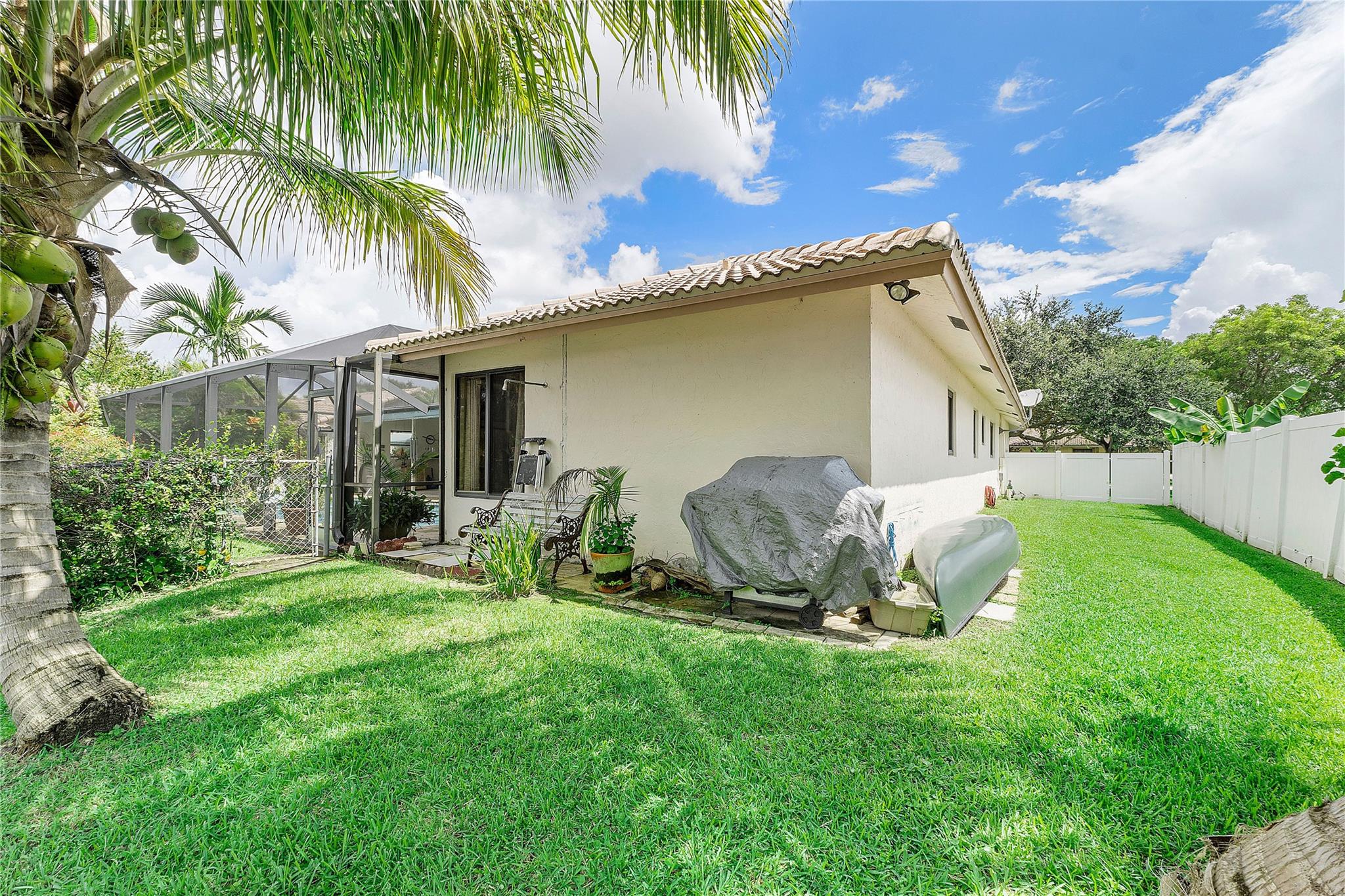 Popular Jacaranda lake home! This 3-bed, 2-bath gem boasts stunning lake views. Walk into an open living/dining area that showcases the scenery. On the left, find a spacious 3rd bedroom, a large bathroom, and a 2nd big bedroom. The owner's suite at the hallway's end offers pool and lake views. Enjoy the open kitchen with windows that bring in beautiful vistas from every angle. This home is perfect for those who love natural light and serene water views and lots of trees and foliage. Don't miss out on this tranquil retreat! Lake Life living at its best! Come see it today!