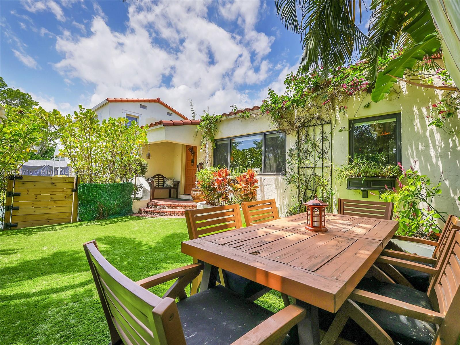 Mediterranean Modern Masterpiece on majestic Normandy Isle. A whimsical ambiance imbues this property from front to back and everywhere in between. An absolutely special home featuring wonderfully private & gated front and back yards, perfect for summertime BBQ's and play dates, a sparkling, wide-open quartz & stainless steel kitchen custom-built for entertaining and usability, immense walk-in, built-out closets in every room and a brand-new tiki hut in the back yard to cool off under the sun. This home checks every box and hits every note. New roof, impact windows, 4 ample beds & 3 full baths, vaulted ceilings, synthetic grass for virtually no maintenance, an enormous primary suite and more. Normandy Isle is idyllic with pocket parks on every block & cul-de-sacs on both sides. Call today.