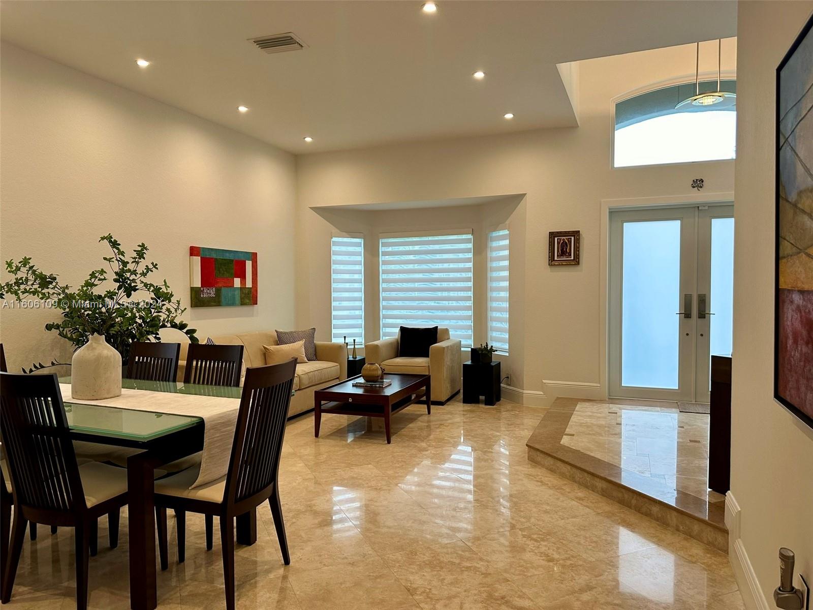 Stunning one-story residence featuring 4 bedrooms, 2 bathrooms and 2 car-garage. This property boasts a resort-style salted pool with a deck for outdoor enjoyment and a fully fenced backyard. Nicely updated and impeccably maintained, it includes a European-style kitchen, modern bathrooms, impact-resistant windows and doors, hurricane accordion shutters on lateral windows, security cameras, Wi-Fi access points in every room, upgraded lighting throughout, lots of natural light, garage storage cabinets and wall organization system, and much more! Located in Emerald Estates, a desirable gated-full-service community, this move-in ready home offers top-notch features and luxury living. **Some furniture included** Don't miss this opportunity to call this property your own!