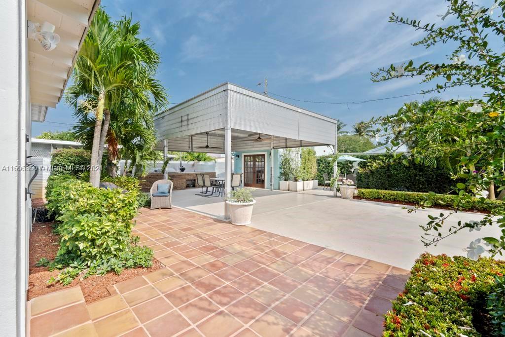 Nestled in a prime location near Palm Beach, the intracoastal, downtown, and the new WPB golf course. Fully restored 1948 gem! Concrete construction. 2023 aluminum roof with a solar fan, complemented by a new Carrier HVAC system and new attic insulation. The remodeled kitchen boasts quartz countertops and top-tier Kitchen Aid appliances. Renovated bathrooms and powder rooms feature updated mechanicals, lots natural light, enhanced custom blackout and screens windows treatments. Professionally maintained landscape surrounds a spacious solid aluminum porch (466 sq ft) adorned with Jasmine vines. Outdoor shower adjacent to an additional room (103 sq ft) with new AC offers versatile space. New irrigation system and underground water. Come and tour it!