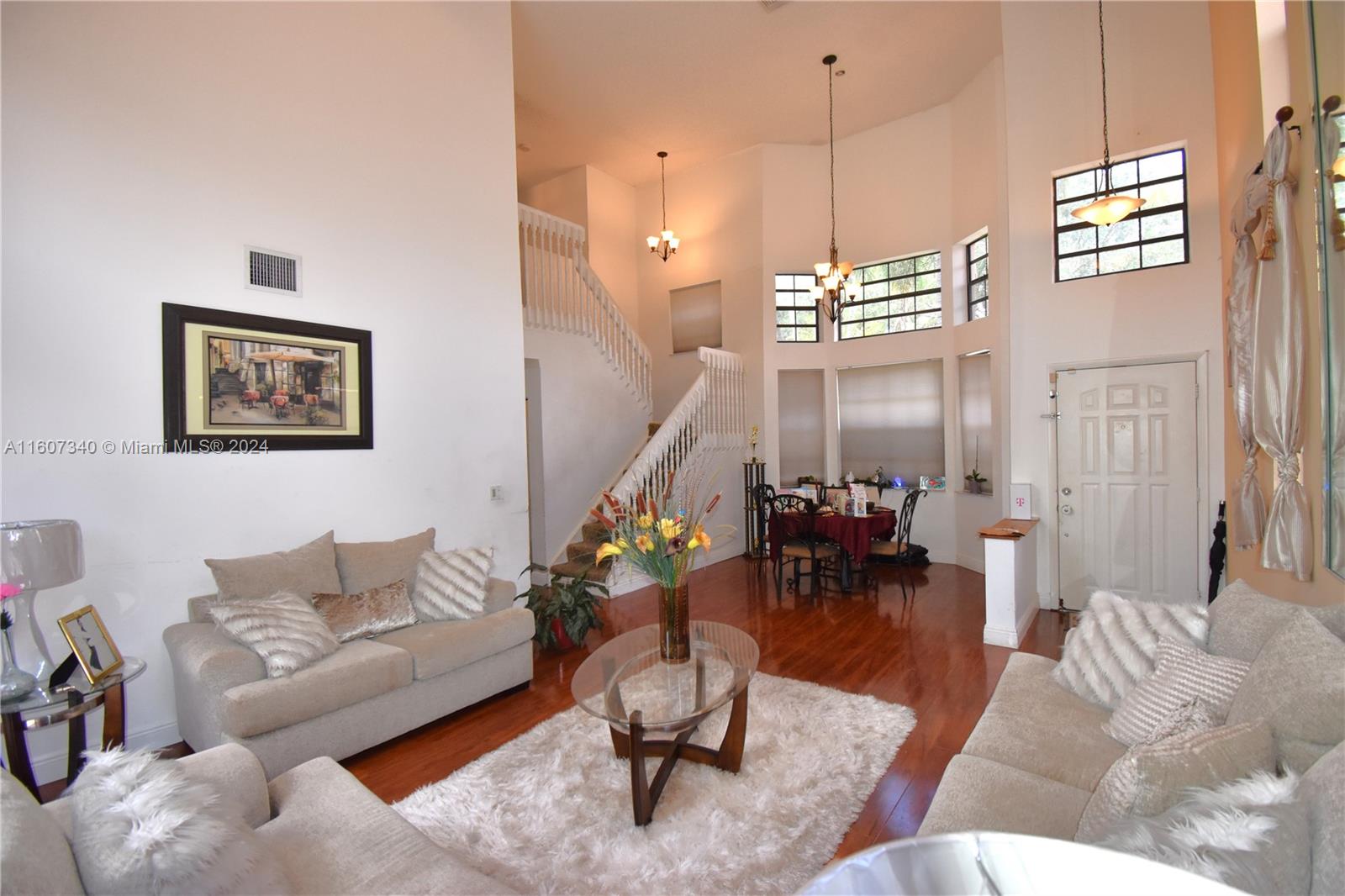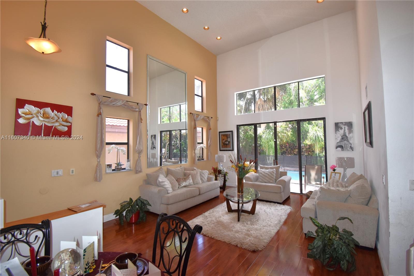 Spacious 3-bedroom 2.5 bath offers formal living and dining room with high ceilings, large kitchen and family room, good size bedrooms , large master with a spacious master bath with dual sinks, a sperate tub and walk in shower. Home has a beautiful yard with a large pool and spa. Location is close to shopping and entertainment. Amenities include: Clubhouse, huge pool and park.