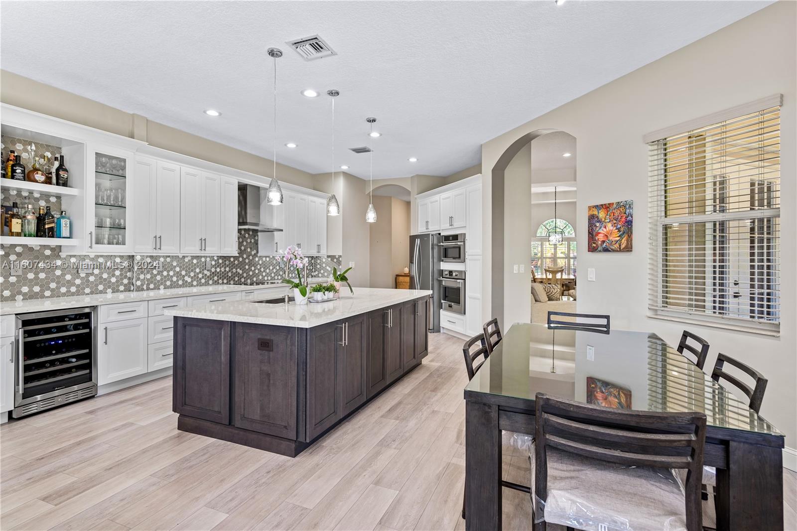 Just reduced: Discover your dream home in this Luxury style prestigious community, nestled in The Isles At Weston. This exquisite house has 4 large bedrooms, 3 bathrooms with huge custom built closet. This beautiful home overlooks the lake with fenced backyard with room for a pool. Oversized lot in a tranquil cul-de-sac Fully renovated kitchen features a wet-bar, wine-cooler, double oven, flat cooktop, spacious island with quartz countertops and 42 inch custom cabinetry with stainless-steel appliances. New flooring throughout the house with soaring 14-foot ceilings. Accordion shutters, extended patio. State-of-the-art club-house, fully remodeled with an improved gym and swimming pools. 24/7 security guard. Walking distance to Schools. Look no further, this is indeed your dream home.