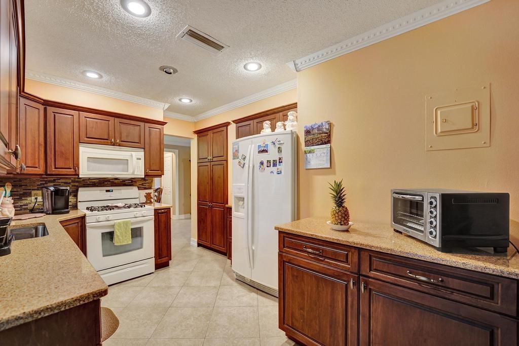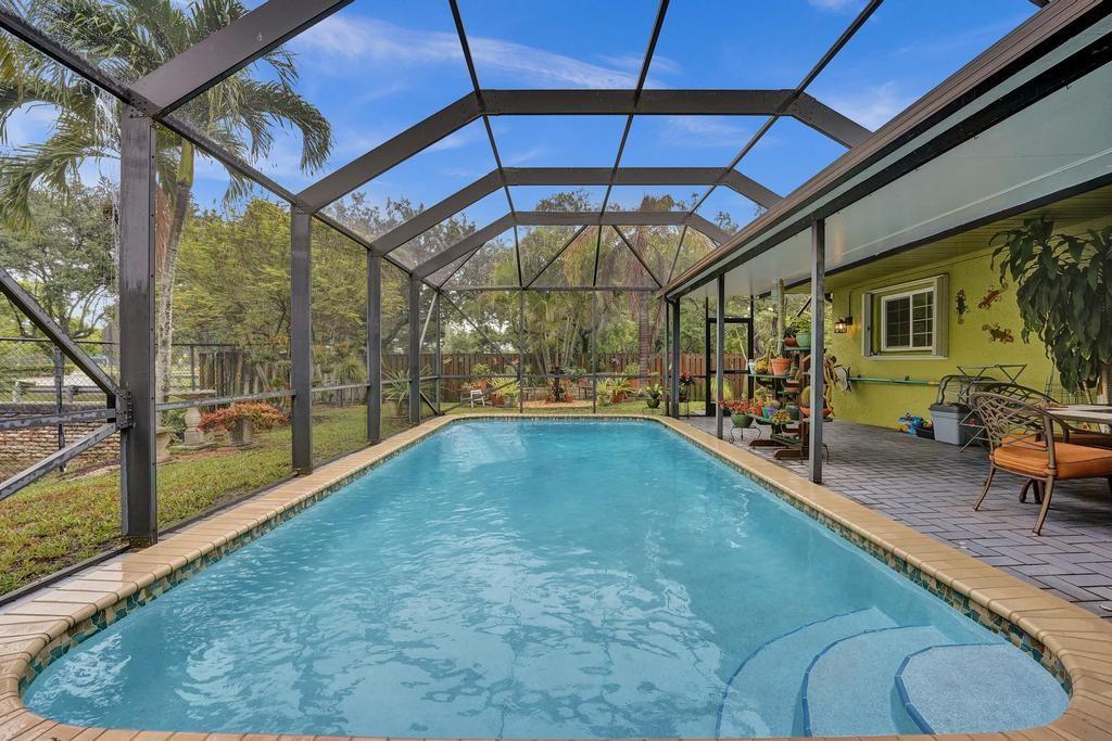 Welcome to this beautifully updated pool home in the highly-desirable Windward Isles neighborhood! This property has been lovingly-maintained & tastefully updated featuring an upgraded kitchen with quartz countertops, custom wood cabinetry & a gas range. Tile & laminate wood flooring throughout the home, accented by crown molding, adds a touch of elegance to the living spaces. The split floor plan offers privacy & convenience and every room is bathed in natural light, thanks to the impact windows & doors that adorn the home. The newer A/C & water heater provide peace of mind & energy efficiency. Step outside to the backyard oasis, where a sparkling pool awaits with a screened enclosure & oversized corner lot with water views, offering the perfect spot for relaxation & entertainment.