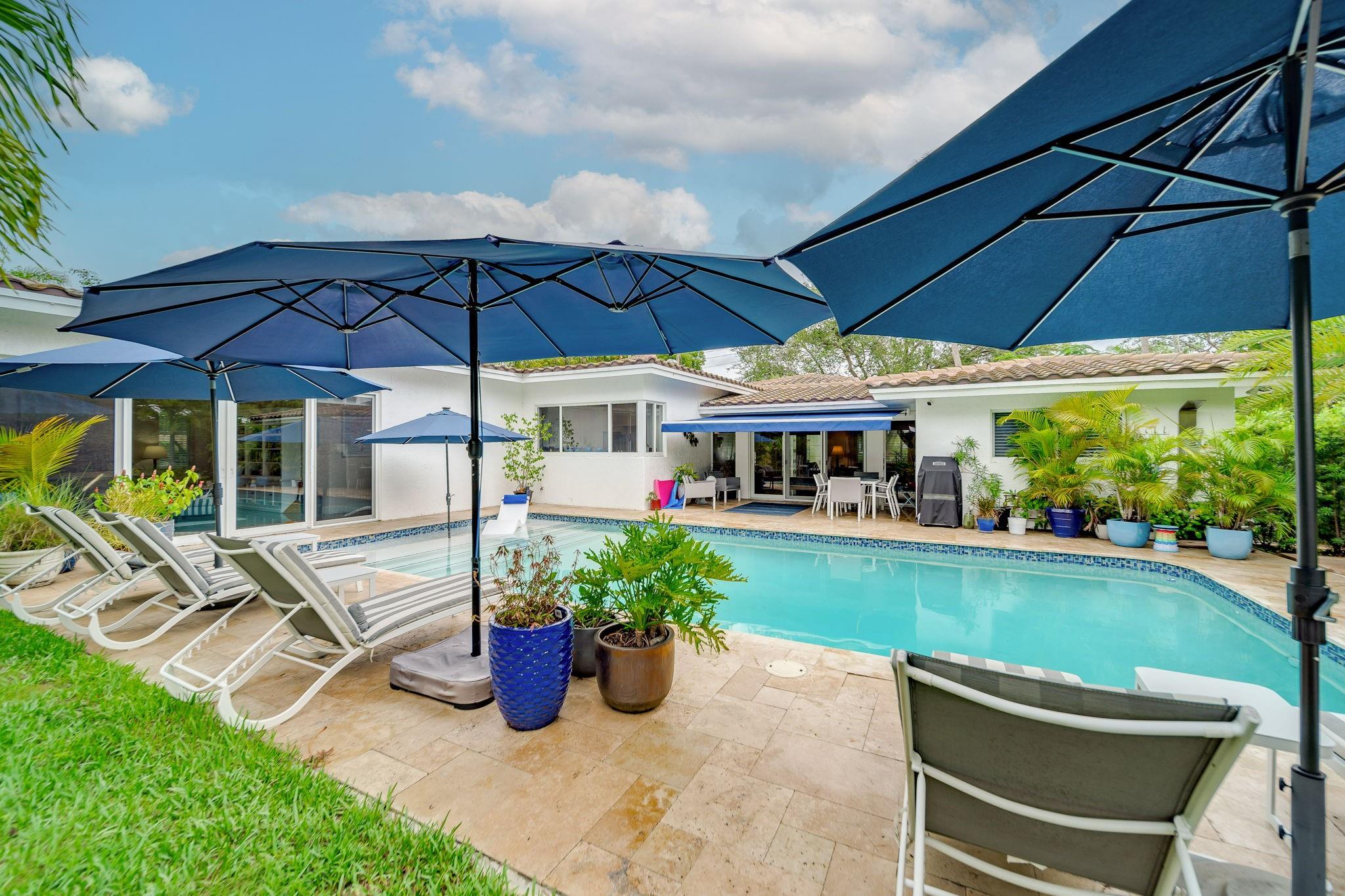 Tastefully updated 4/3 home on an oversized 11,473 sq ft lot. Open split bedroom floorplan. Large primary suite (27x15) has 10 ft ceilings, walk-in closet and seating area overlooking the pool. Updated kitchen with stainless steel appliances, quartz counter tops, and white shaker cabinetry. Impact windows and doors, roof 2018, sewer lines and pipes under home replaced, porcelain flooring throughout & linear air ducts. Secured custom made front fence with keypad entry, Extra-large salt chlorinated pool with heater/chiller and travertine pavers. Professionally landscaped front and back including outdoor lighting. House completely gutted and new wing/addition added in 2018/19 along with new electric wiring, plumbing and flooring. Garage is ready for you to plug in your electric vehicle.