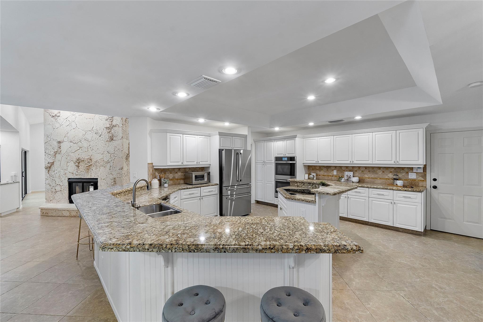 GRACEFULLY NESTLED IN GUARD GATED EXCLUSIVE ISLAND COMMUNITY IN A PARKLIKE SETTING OF ONLY 104 UNIQUE HOMES IN SOUGHT AFTER HEART OF THE CITY. RENOVATED CUSTOM HOME THAT WILL STAND THE TEST OF TIME ON A 13,696 WATERFRONT LOT WITH 2022 ROOF AND ALL IMPACT WINDOWS AND DOORS! LARGE CIRCULAR DRIVE ADDS TO THE CURB APPEAL. FINELY APPOINTED TURNKEY HOME WITH FLEXIBLE EXPANSIVE LIVING SPACES AND SOARING CEILINGS. NEW APPLIANCES IN SPACIOUS WHITE KITCHEN, FRESHLY PAINTED, HUGE PRIMARY SUITE AND LUXURIOUS BATH PLUS CUSTOM CLOSETS, DUAL SIDED STONE FIREPLACE, BRIGHT AND AIRY GREAT ROOM AND SEPERATE FAMILY ROOM WITH WET BAR AREA, BREAKFAST NOOK, DINING ROOM AND CABANA BATH. PRIVATE 5 STAR RESORT POOL WITH COVERED PATIO & WATER VIEW PLUS PLENTY OF ROOM FOR GATHERINGS. SELLER RELOCATING FOR WORK.