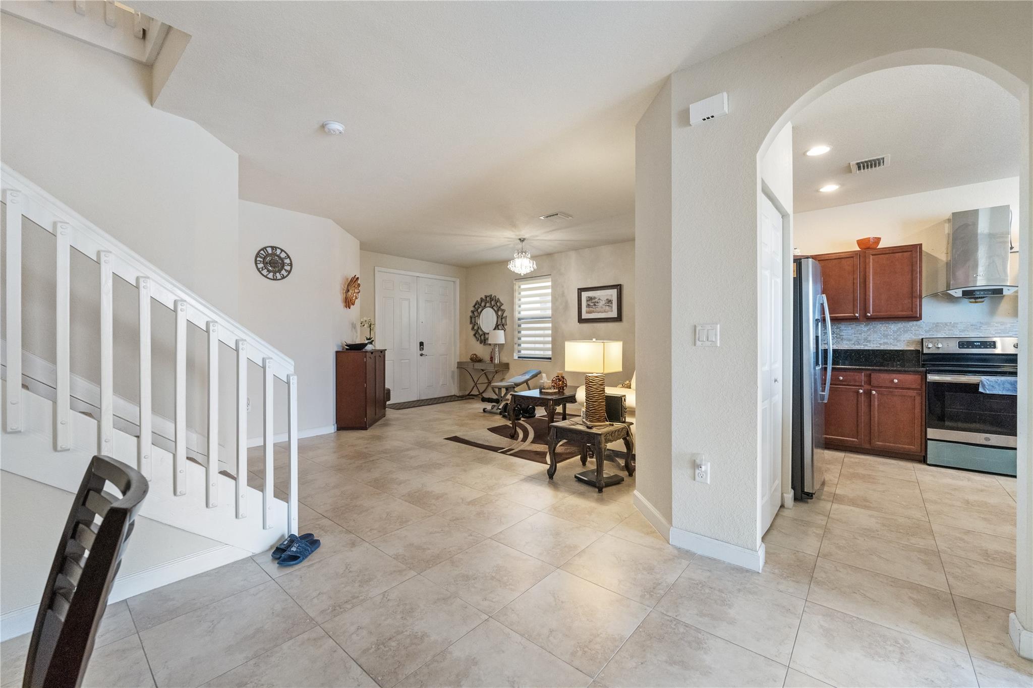 Gorgeous two story Largest Model Lakefront Home in the Gated community of Aragon, tile throughout the first level leading you to a breathtaking fenced, tropical backyard on a wide lake, complemented by a living room area and Kitchen overlooking the serene lake views, with stainless steel appliances and granite countertops and snack breakfast counter with plenty of room for the family & guests. Explore this practical design with 4 spacious bedrooms, 3 and a half bathrooms, and a 2-car garage with a huge paved driveway. Enjoy waterviews from your secluded patio with plenty of space and privacy for outdoor entertainment with family and friends—a fully maintained community with low HOA fees. The seller will credit up to 3% to the buyer as a closing cost. THE BEST LAKEVIEW IN THE COMMUNITY.