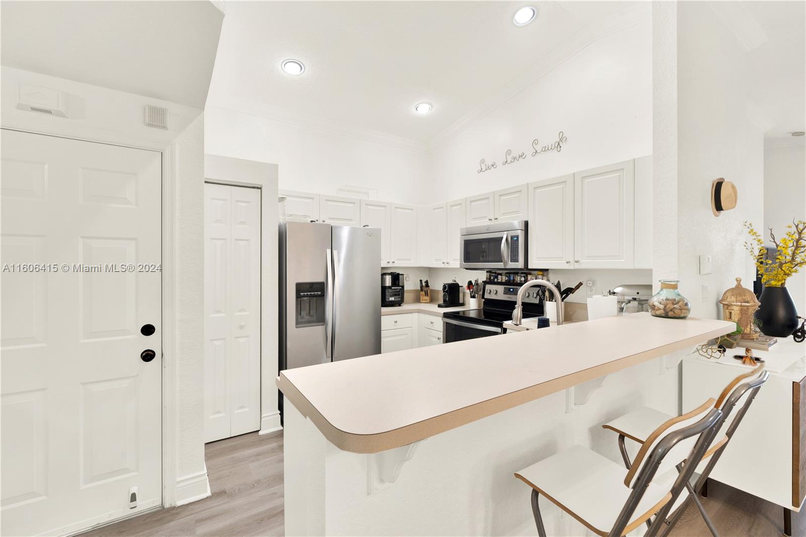 Welcome to Grand Key at Sunset Lakes! This 2-bed, 2-bath corner townhouse boasts a split bedroom plan, luxury vinyl floors, a 1-car garage, and an updated resort-style master bathroom. The spacious master bedroom has a large walk-in closet, adding convenience and storage space. This home is located across from the community playground and guest parking. HOA covers lawn maintenance, cable, high speed internet and access to all of the Sunset Lakes amenities including a heated pool, jacuzzi, BBQ area, game room, gym, sauna, tennis courts, and more!