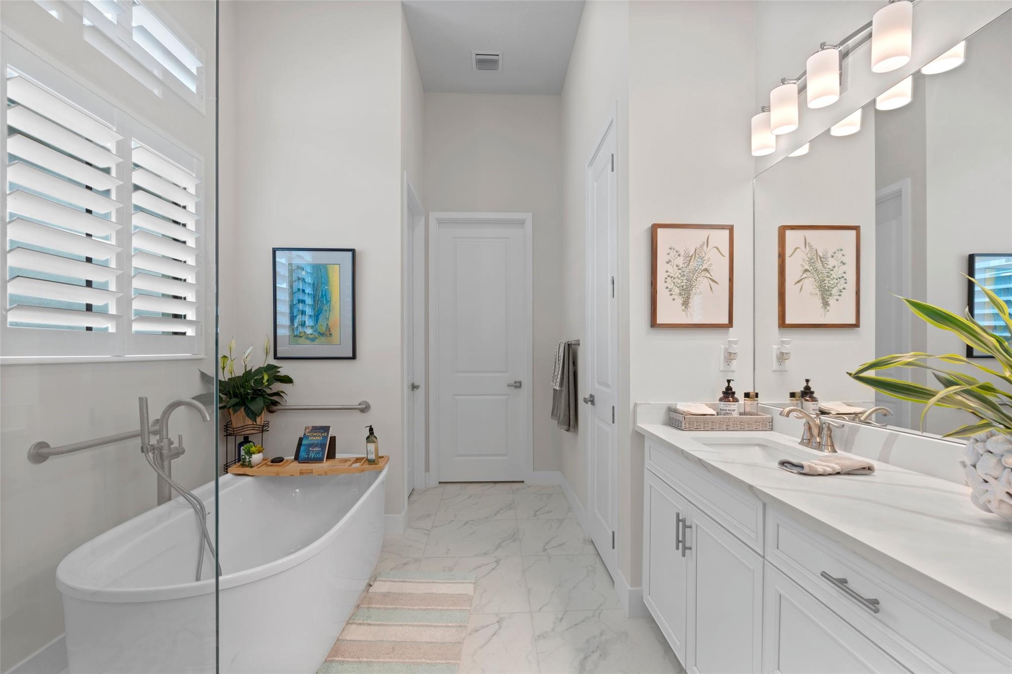 The Falls at Parkland, a premier 55+ community, offers this exceptional Gorda Cay model home, boasting an abundance of upgrades! Luxuriate in the main suite's spa-like bathroom with a freestanding tub, separate walk-in shower, & double vanities. Unleash your inner chef in the gourmet kitchen, featuring a gas stove with a luxury range hood, a large island, and a double ovens. This home provides exceptional storage with a separate laundry room & 3-car garage with an epoxy floor. Park 4 cars comfortably in additional driveway space. Beyond your private oasis, The Falls at Parkland boasts luxurious amenities, including pickleball court, tennis, game/card room, & café. Take a dip in the pool or spa for the ultimate day of relaxation.