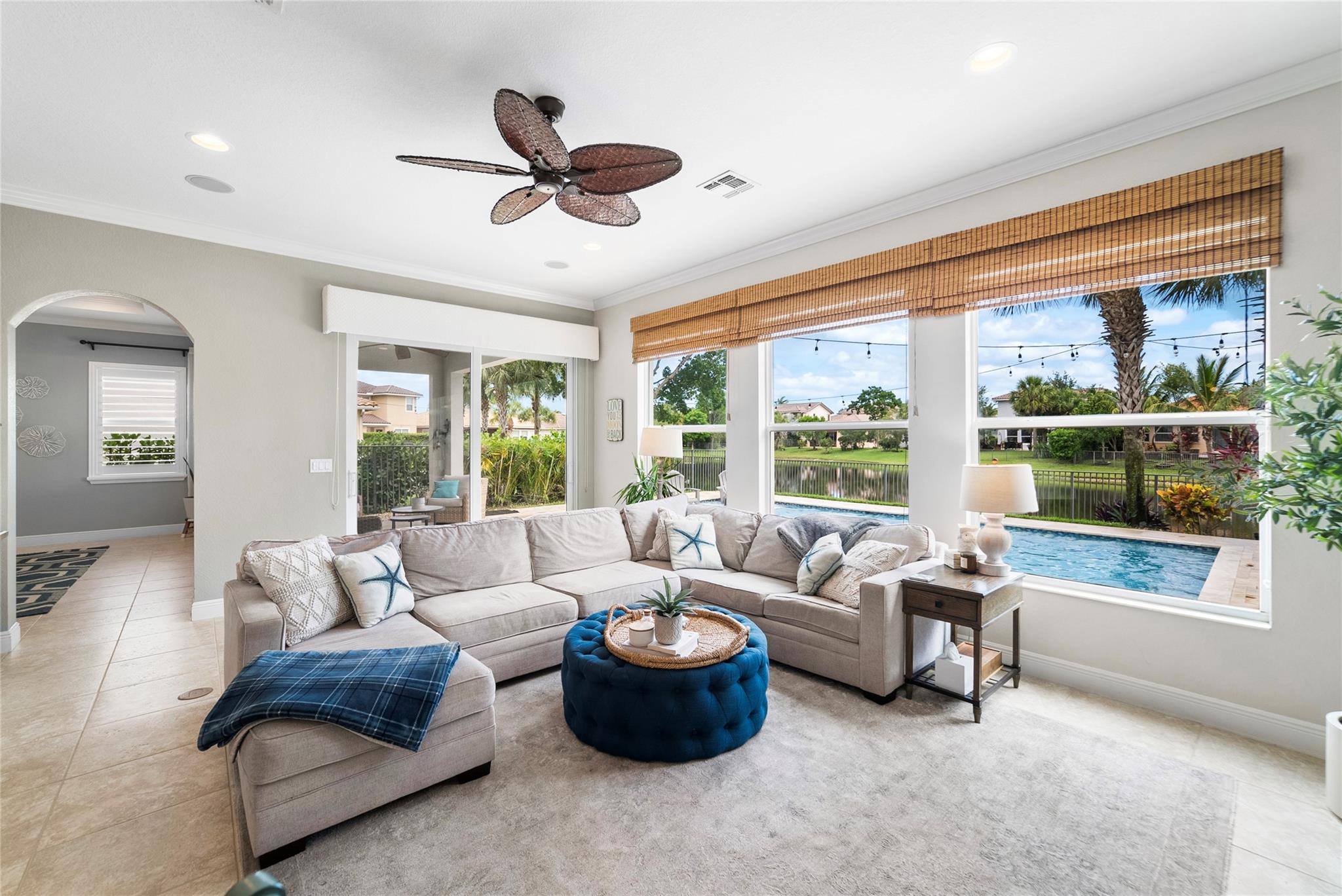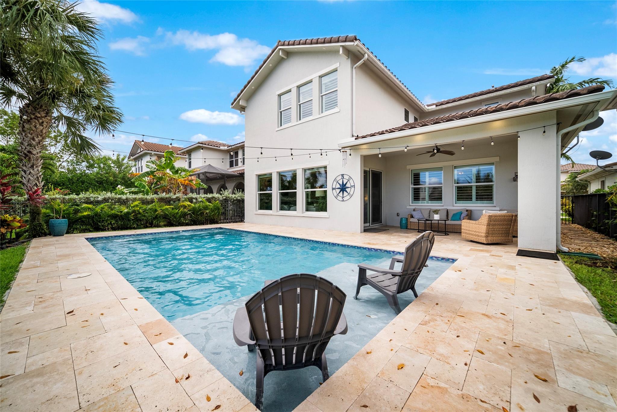 RARELY Available Jasmine 5 Bed+Loft, 4 Bath Waterfront Pool Home & 3-Car Garage w/$134K in Upgrades! w/2019 Newly Installed Heated Salt Water Pool w/Sun Shelf, Travertine Extended Pavered Patio Area w/Covered Area, Fenced-In Lot, Former Builder Model Home w/Custom Window Treatments, Light Fixtures, & Fans, Plantation Shutters, Updated duel-zoned A/C 2023, Primary Bed Upstairs w/Huge Built-In Walk-In Closet, Jack & Jill Bed & Bath, Separate On-Suite Bed & Bath, Downstairs Full Bedroom & Full Bathroom, Kitchen w/Quartz Counters, Stainless Steel Appliances, Gas Stove, Built-In Pantry, Accent Wall In Dining Room, Wainscoting w/Custom Wood Work, LOW HOA Dues Which Includes 2-Resort Style Clubhouses, 24-Hour Guard Gated, A+ Schools, Updated Garage w/ Rust-oleum & Added Storage, Won't Last Long!