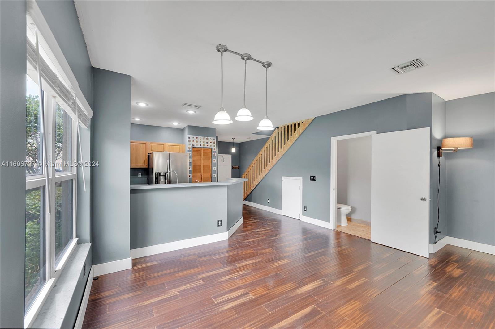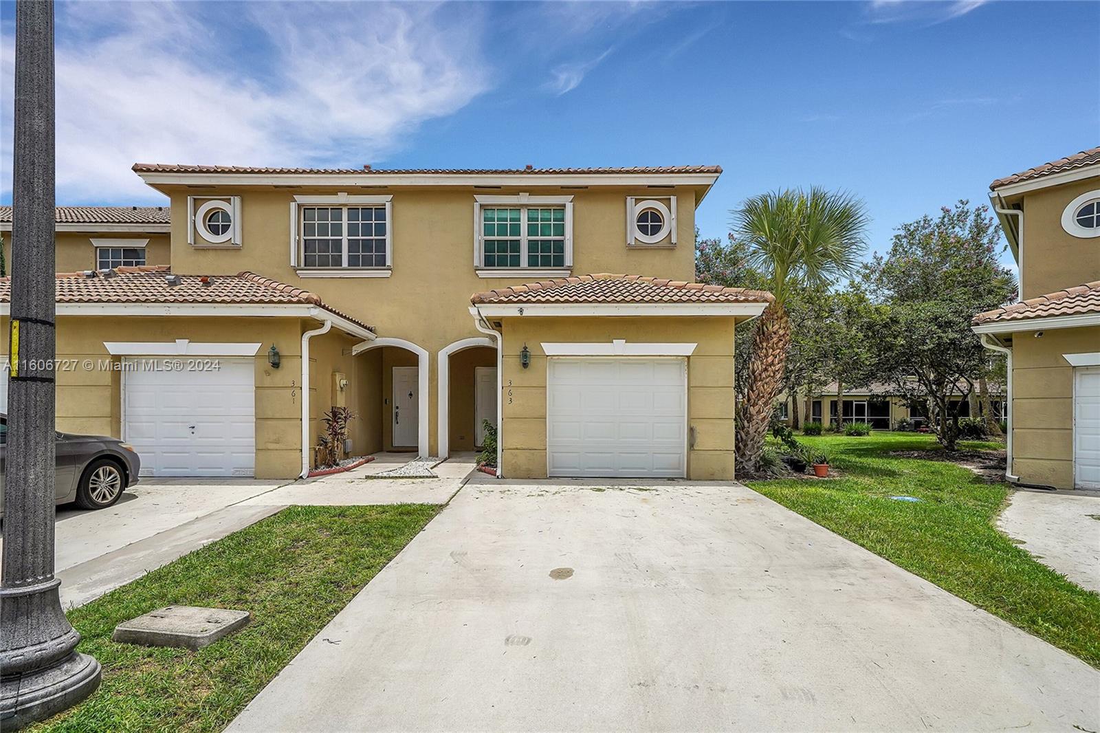 Welcome to this stunning 3-bedroom, 2.5-bathroom corner townhouse located in the highly sought-after gated community of Pelican Pointe. This two-story home features a garage and a screened-in patio located in front of the community's pickleball and tennis courts. Freshly Painted Exterior with impact windows. The home boasts elegant bamboo flooring and modern stainless-steel appliances. The second floor includes a Jack and Jill bathroom for the two spare bedrooms, while the master bedroom features an en suite bathroom. Basic cable and Internet are included in your HOA fees. APPROVAL FOR VARIOUS BUYERS: FHA, VA, and Investors are all welcome. Nestled in a community known for its lush foliage and excellent location, ALL OFFERS WELCOME FOR REVIEW! PLENTY OF GUEST PARKING!