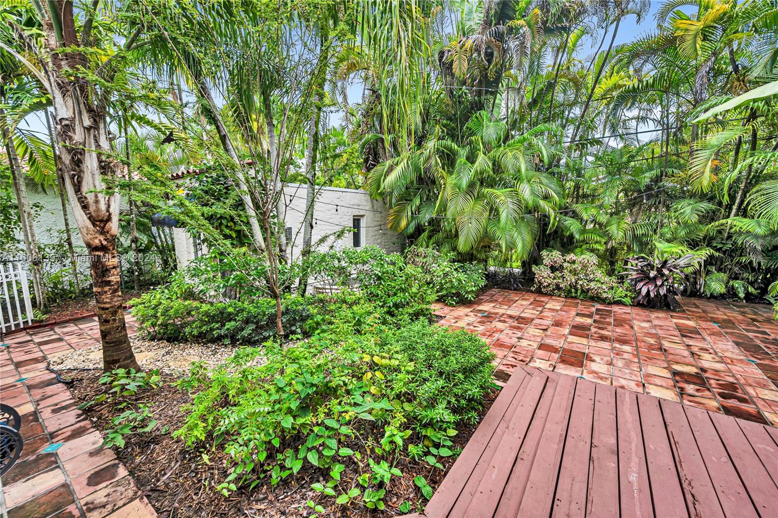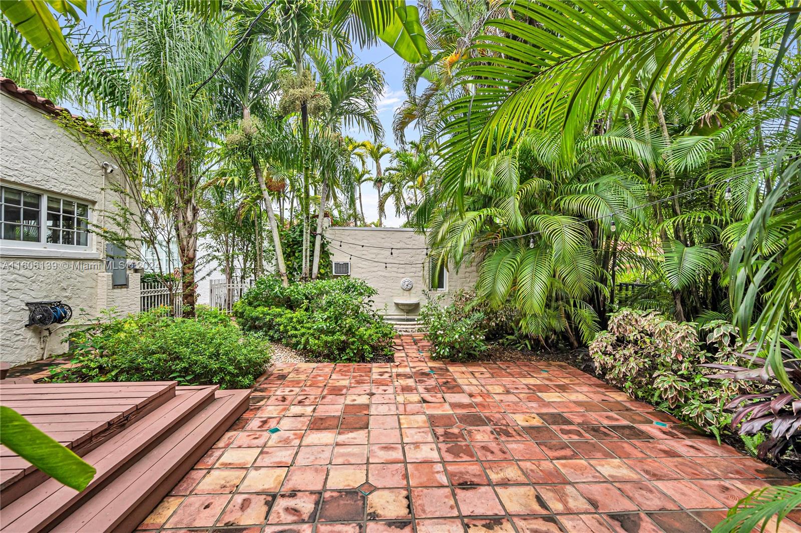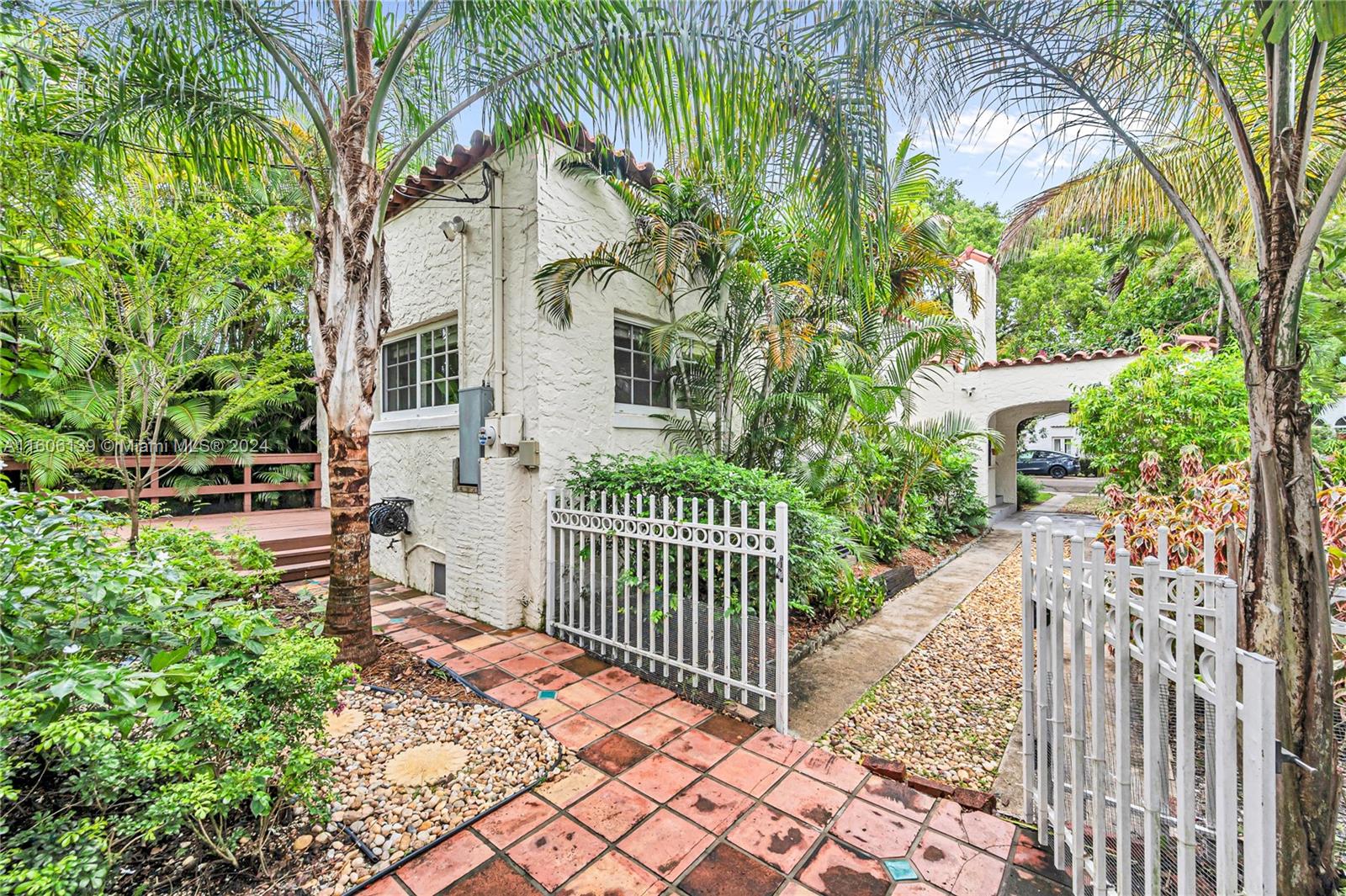 Welcome to this quintessential 1925 Old Spanish gem nestled on a tree-lined street in Coral Gables. This beautiful home seamlessly blends timeless charm w/ modern updates. Full of character w/ an original fireplace, hardwood floors & abundant natural light. The main house offers 2 spacious bedrooms & 2 full baths. Detached 1/1 cottage serves as perfect home office or guest quarters. Enjoy a renovated kitchen w/ ample storage & breakfast nook. Primary suite w/ walk-in closet & large bathroom. Tropical backyard oasis w/ deck, private patio & lush landscaping, ideal for relaxation & entertaining. Upgrades include impact windows, recessed lighting & new water heater. A carport ensures convenient parking. Ideal location just 2 blocks from Granada Golf Course & walking distance to Miracle Mile.