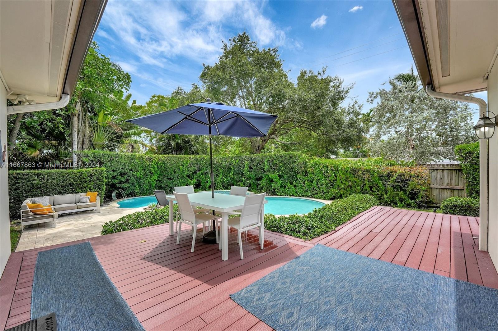 Rare corner lot home in Victoria Park. Private backyard with heated pool, TREX deck, on-demand gas BBQ, and mango/avocado trees. Thoughtful details and extensive renovations throughout: dual ACs, impact windows, new tankless water heater, gas range, coffee corner, automatic blinds, walk-up attic, Bosch appliances, LED lighting, Nest thermostat, original hardwood flooring and more. Primary en-suite with access to pool. Walking distance to Las Olas, Holiday Park, restaurants and shopping. Live your best life. No HOA. No rental restrictions. Not a flood zone. Schedule your private tour today!