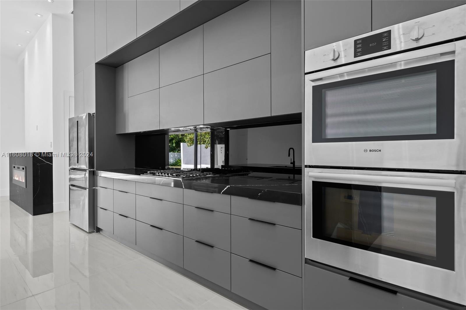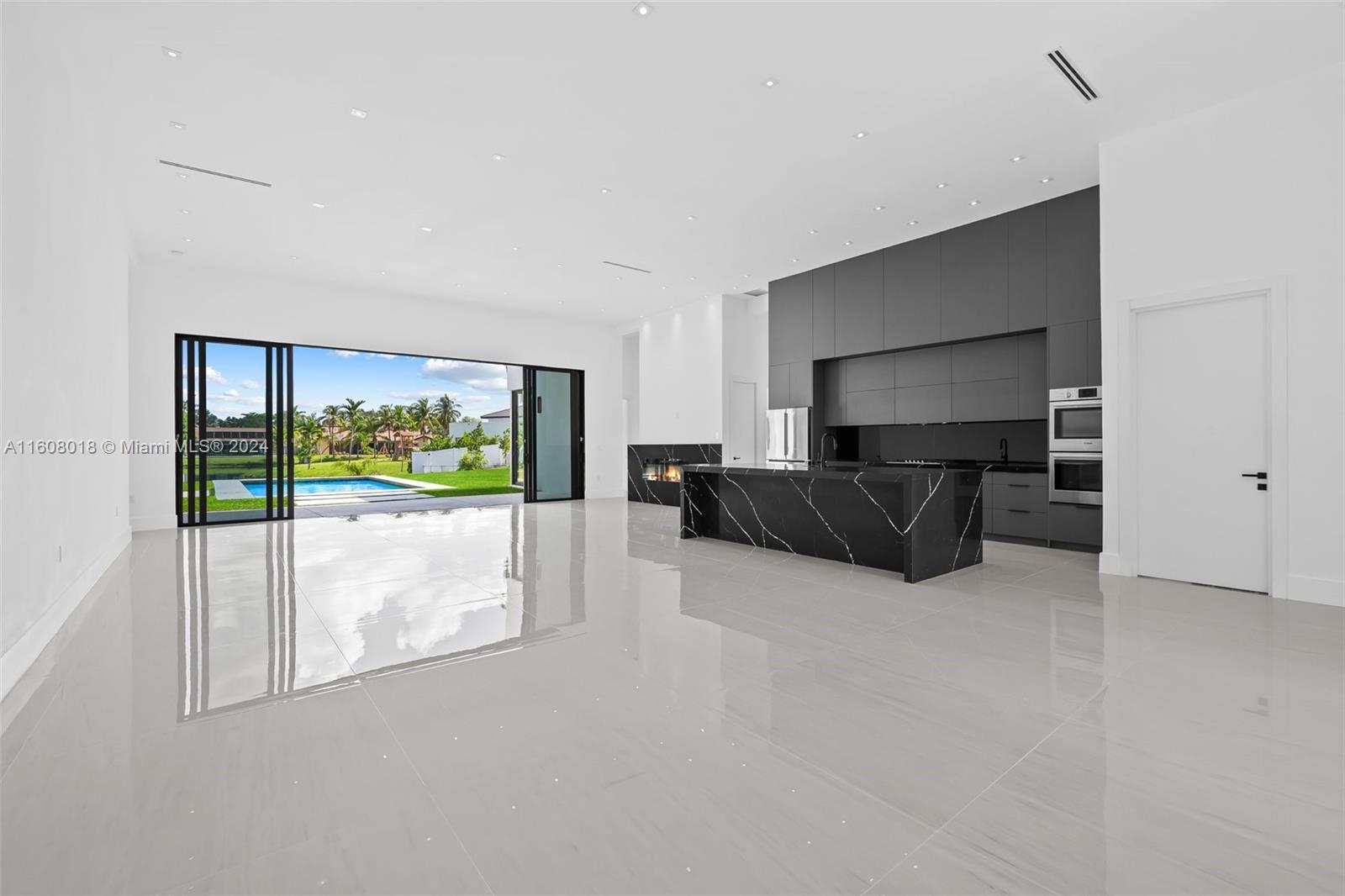 Ultra-Modern Masterpiece, New Construction home on huge Waterfront lot. This stunning residence features an open concept floorplan with 14’ ceilings. Boasting 6 oversized ensuite Bedrooms with walk-in closets and 7 Bathrooms. Huge master suite with oversized closets and a grand master bathroom featuring double rainhead showers and freestanding bathtub. Designer kitchen featuring Bosch and Thermador appliances, wine cooler and gas cooktop. It features 48” porcelain tiles, 8’ European doors and 10’ impact glass doors. It has two 5 ton A/Cs. Oversized pool, covered outdoor dining area, outdoor kitchen area and large firepit with built-in seating. Space for a half basketball court and putting green or soccer field. Located on a cue-de-sac street in a private country club golf course community.