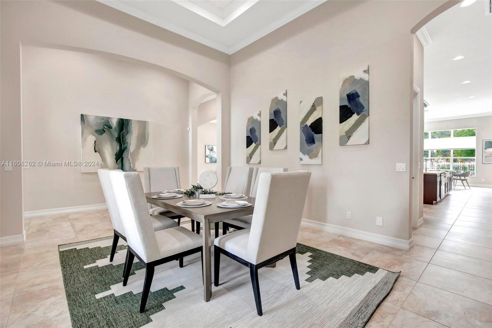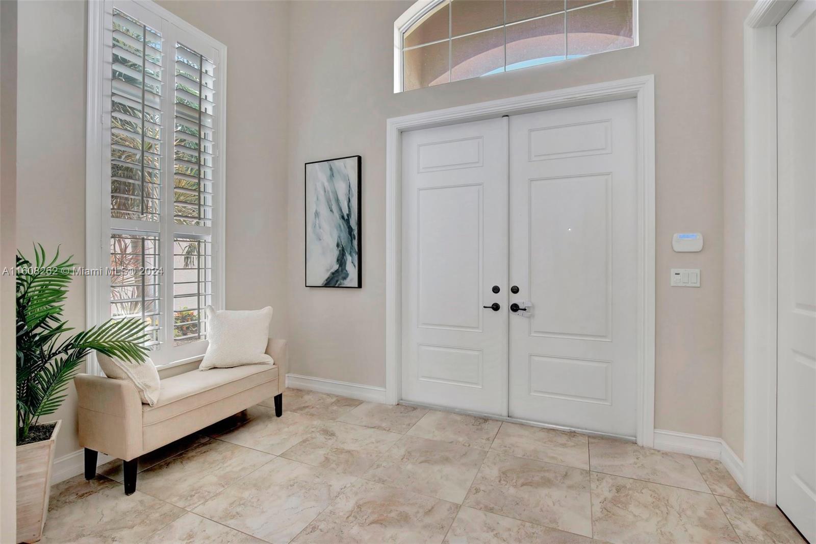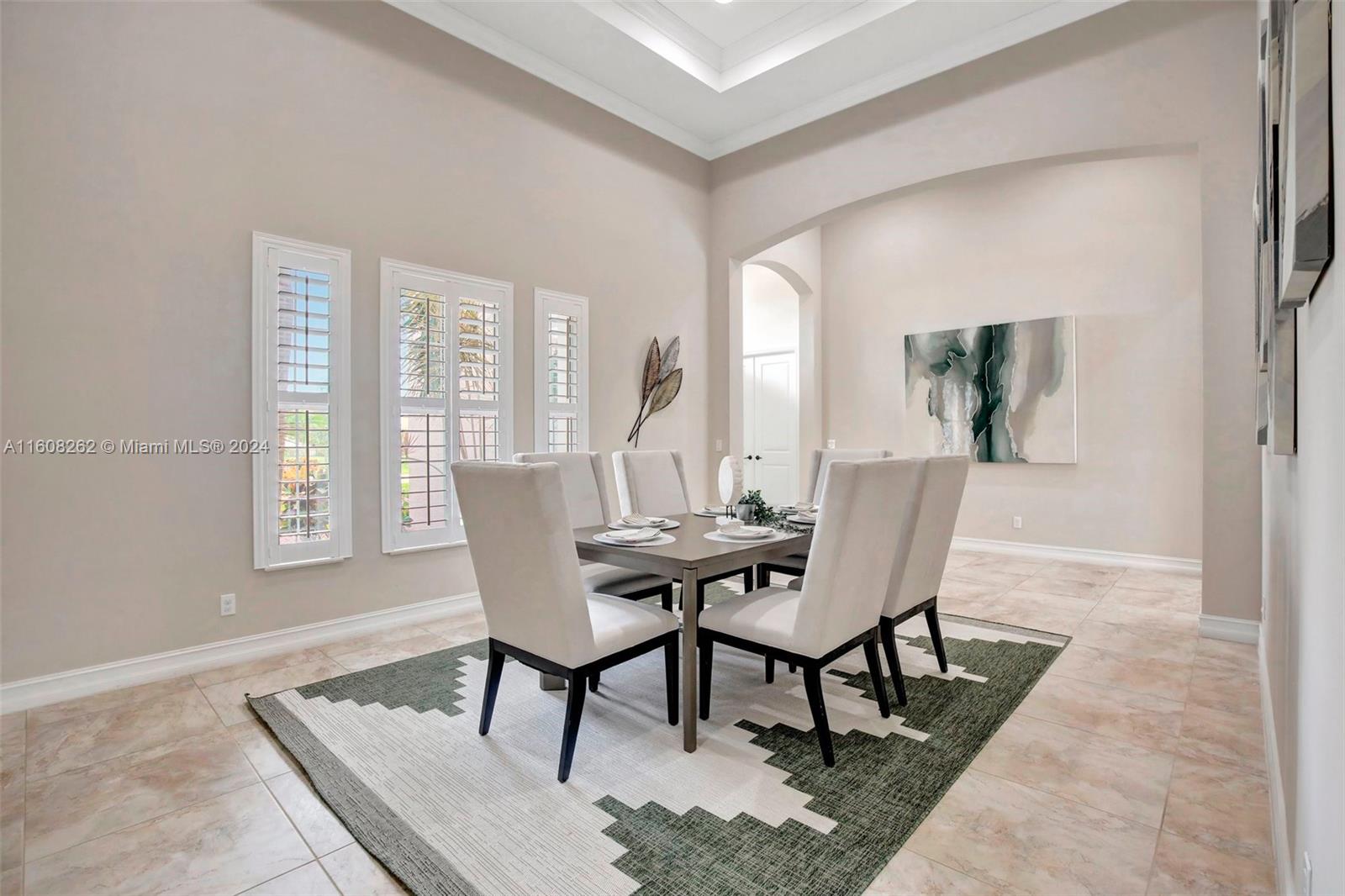 Experience luxury living in this magnificent Hawthorne model home on sprawling .80-acre lot 5 bedroom, one is used as office, 4.5 bath with flex space, this residence offers spacious and adaptable living. Culinary enthusiasts will revel in chef's kitchen, complete with granite countertops and top-of-the-line GE Monogram appliances. True oasis awaits with beach-entry saltwater heated pool and raised spa, all surrounded by travertine. Screened patio, featuring an outdoor kitchen, is perfect for year-round enjoyment. This home is equipped with impact windows and power outlet for generator. HOA fee covers lawn cutting and tree trimming. Living in Sterling Ranch combines luxury and convenience with prime location near major highways and attractions.