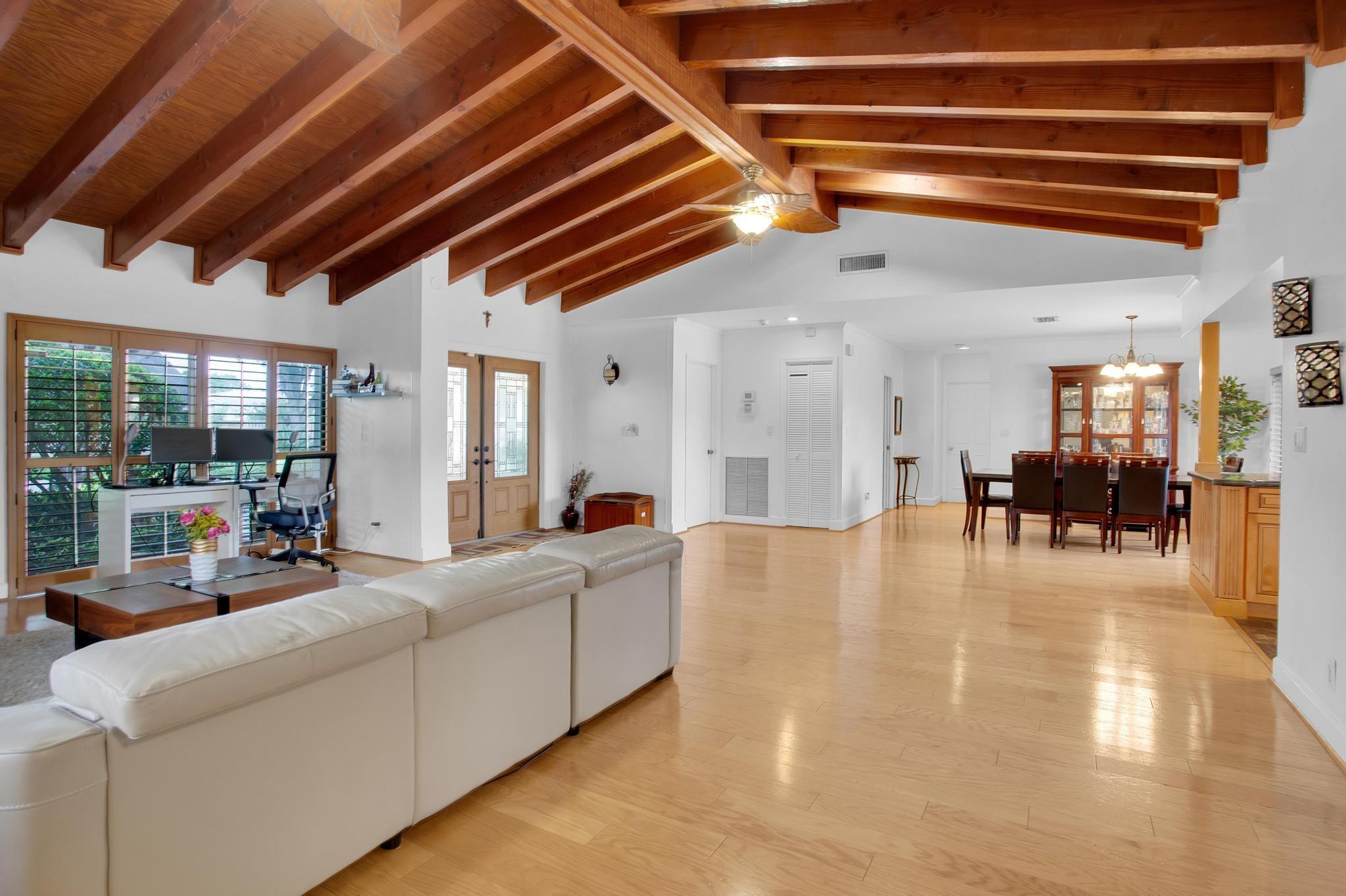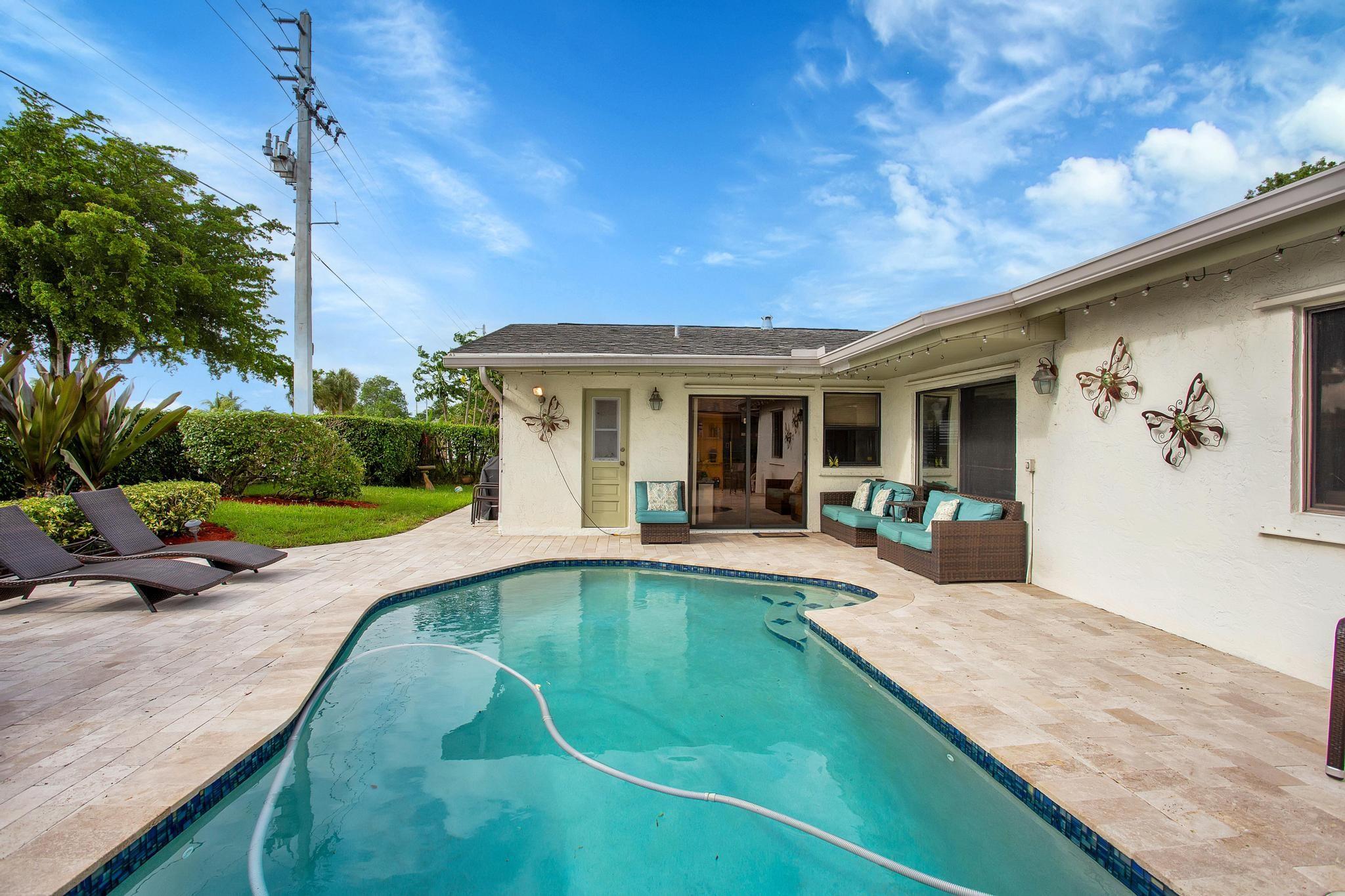 This beautifully designed pool home in Lakeview Homes has timeless features that are hard to come by. This home blends a Mid-20th century ranch-style exterior with contemporary landscaping & pool deck with an open concept floorplan with exposed beam vaulted ceilings. Great curb appeal. Custom double doors with large glass inserts & HVHZ panels. Slate & solid wood flooring throughout. Custom kitchen has real wood cabinetry with soft-close drawers, luxurious beveled edge granite countertops, stainless steel appliances, cook top, wall oven, country sink... Renovated bathrooms & travertine pool deck. Over 2,400 sq. ft. with an oversized garage. No HOA. Walk to schools & a nature park with tot lot. Good location close to everything. Too many details to write here. Call now before it is gone