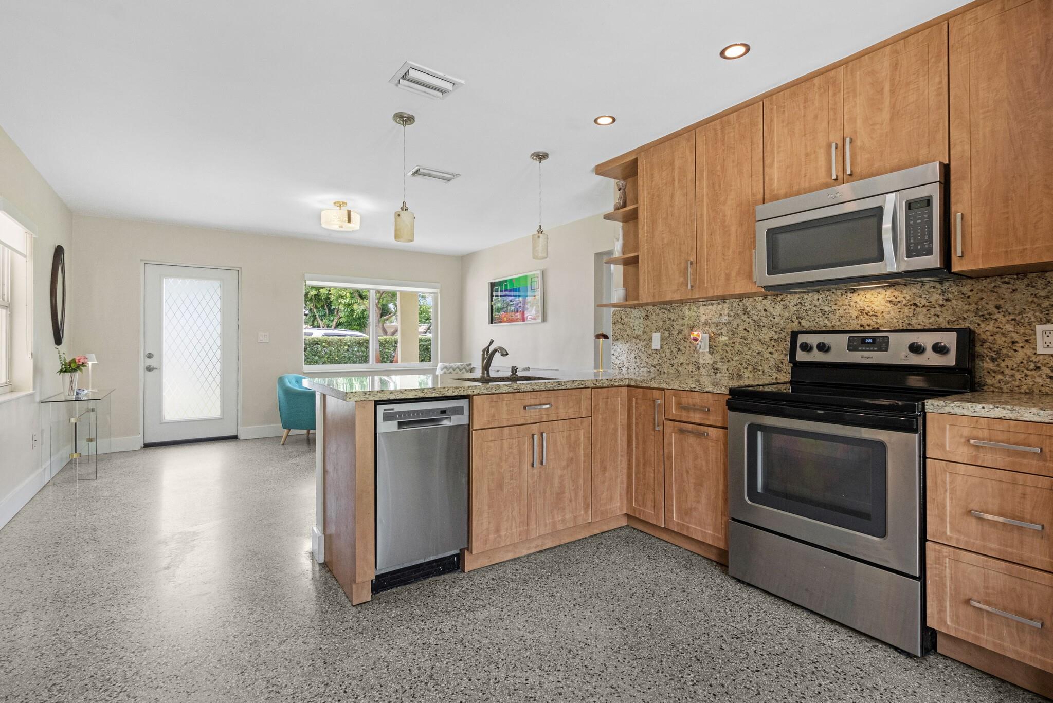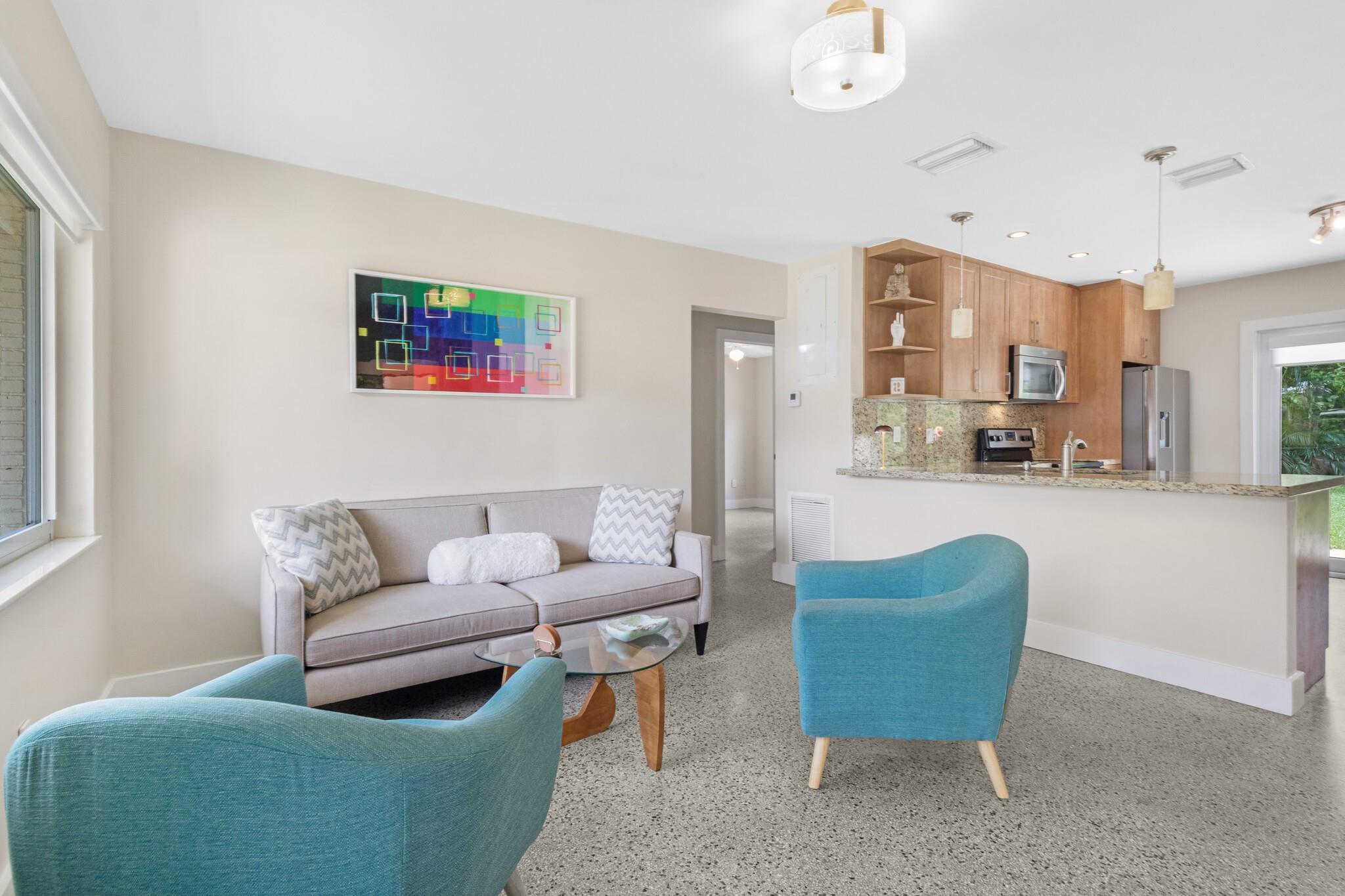 Beautifully renovated 2 bedroom/2 bathroom (plus small den/office/storage) private SFH residence in Middle River Terrace! This lovely home is walking distance to the restaurants, bars and shops of Wilton Manors, and the 13th Street redevelopment (Milk Money, Gulf Stream Brewing Co, shops, etc)! This exceptional home features a fully updated interior, eat-in kitchen, newer central a/c, lifetime metal roof, impact windows/doors, new custom privacy blinds, restored terrazzo floors, and indoor laundry. Large, private back yard with patio and plenty of room for your dream pool. Well-water irrigation system and LED landscape lighting.
