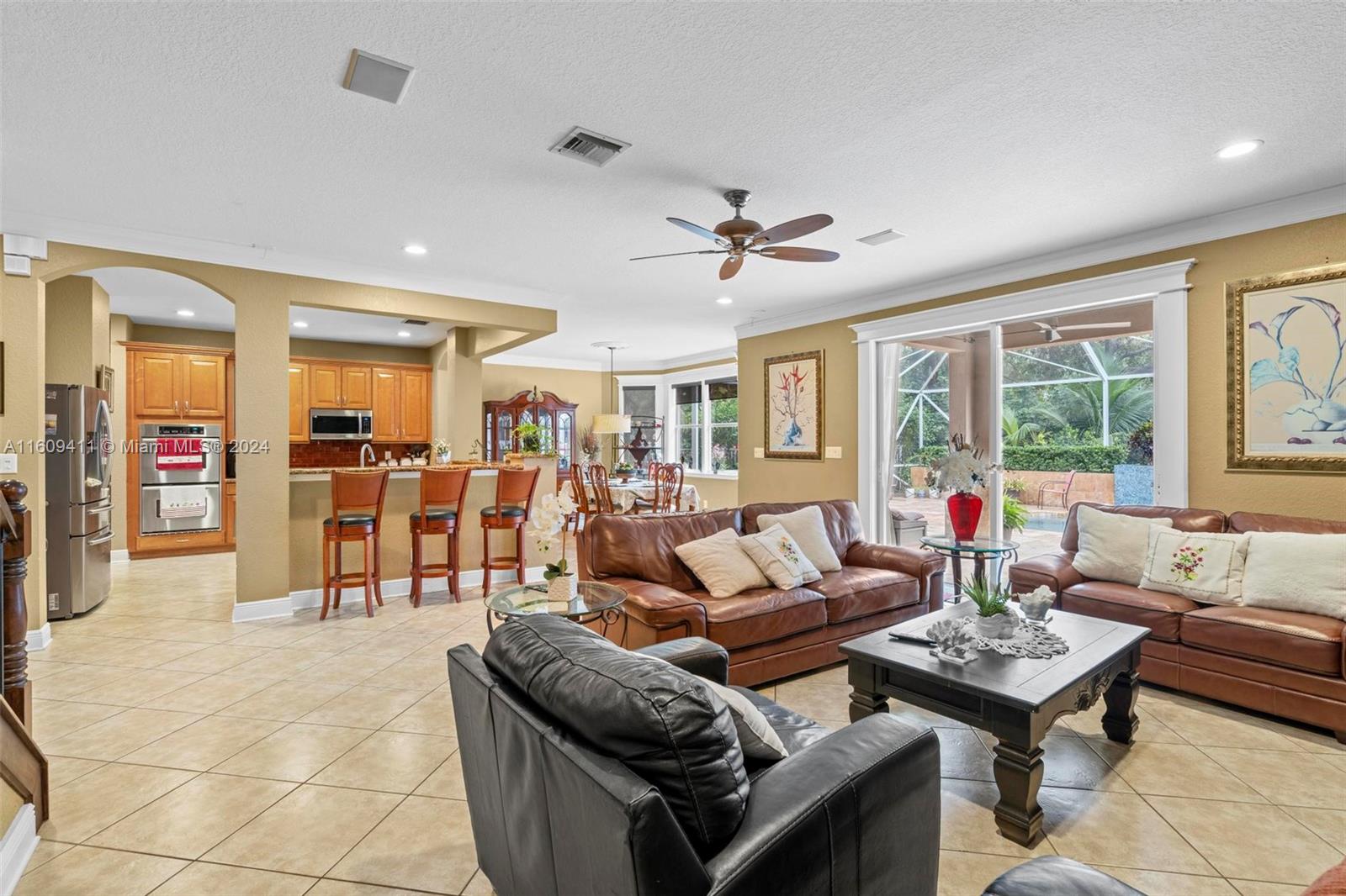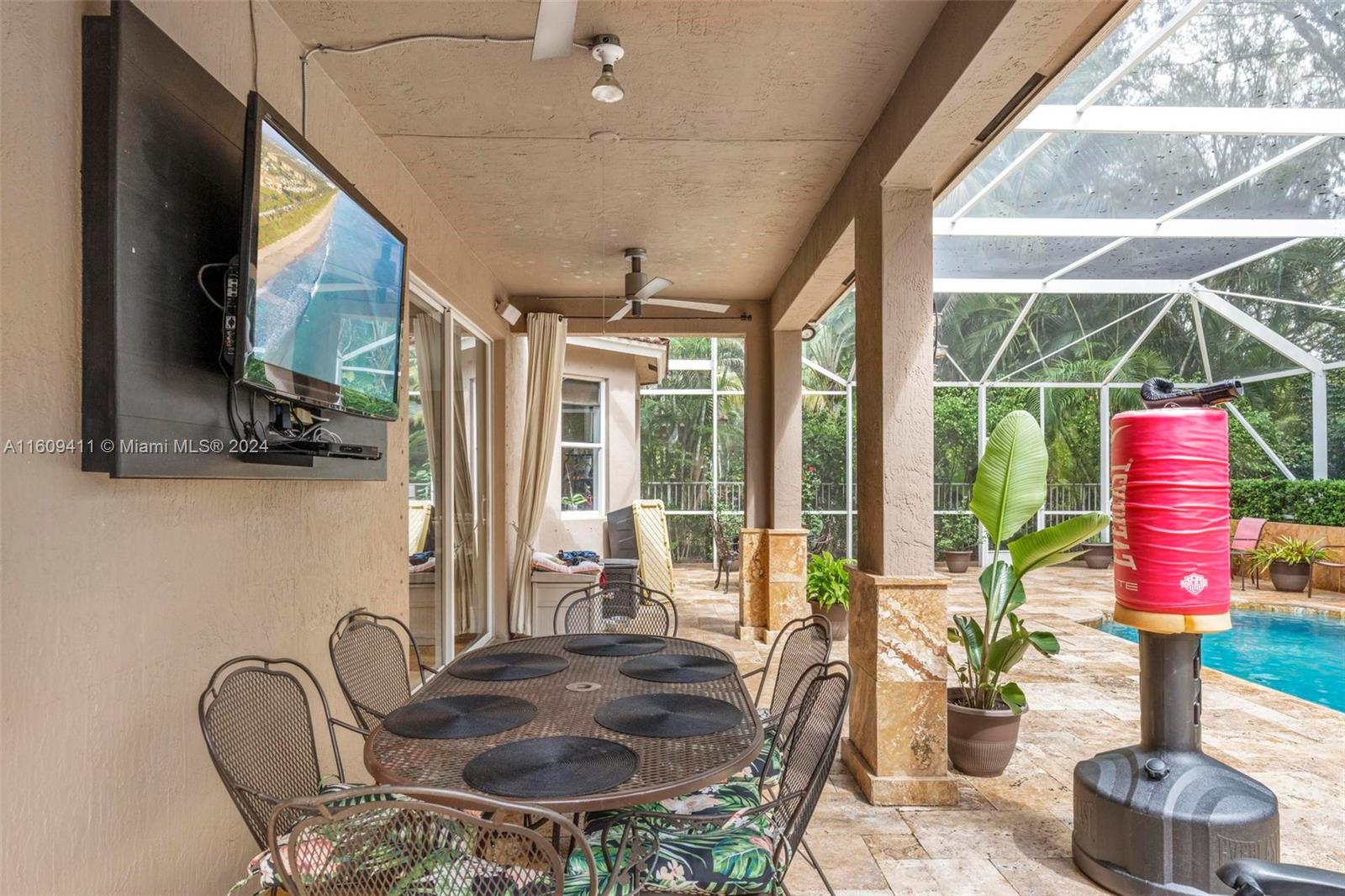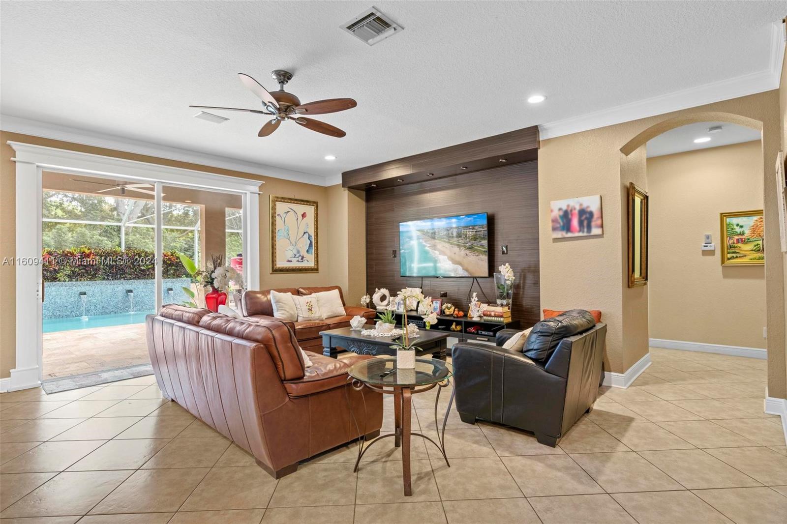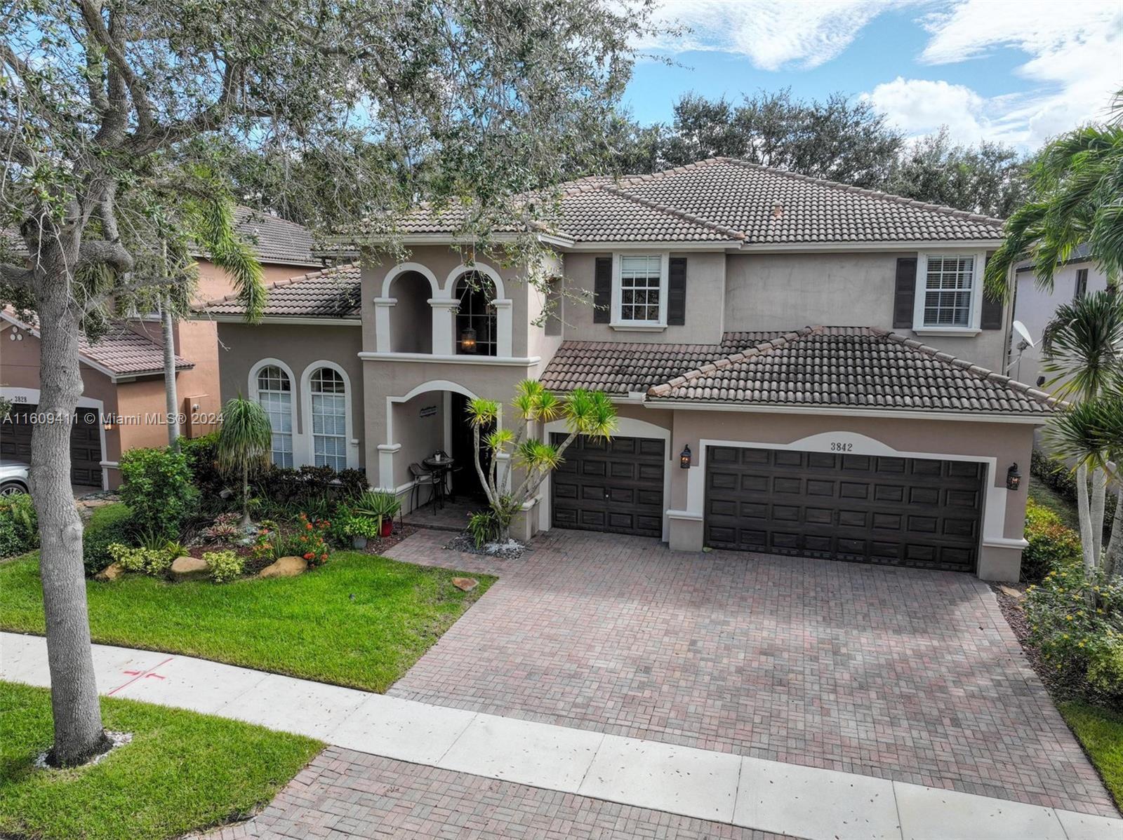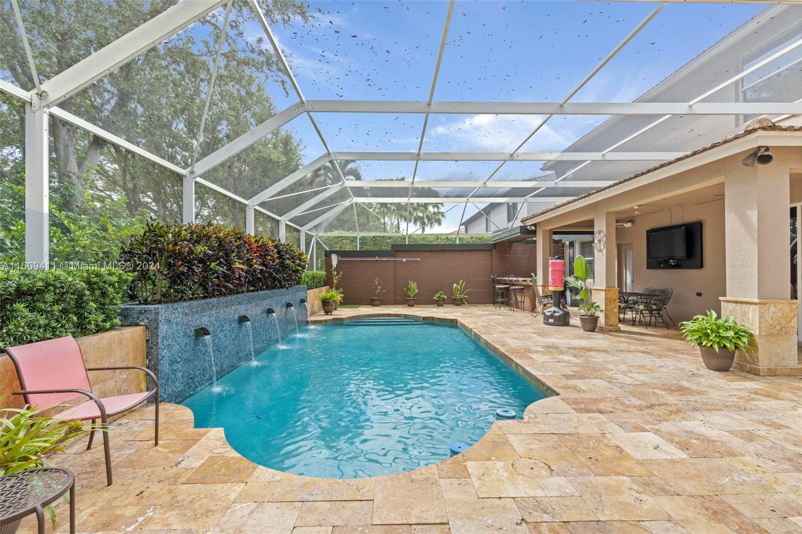 Nestled in the tranquil community of Isles of Weston, this impeccable 5/5 residence epitomizes luxury and comfort. Main level has a dedicated office space or a quiet study room. Upstairs, large media room can serve as 6th bdrm. Impressive Gourmet Kitchen all stainless steel appliances, plenty of storage opens to the Family Room and a separate breakfast area. A Chef's dream. Formal Dining Room perfect for Holiday Gatherings. Slide open glass doors to reveal Luxury Resort Style backyard with screened in pool, cascading waterfall and a summer kitchen perfect for hosting a summer bbq or enjoying a quiet evening. Space is designed for leisure and enjoyment. This residence is more than just a house, its a lifestyle waiting for you. Community includes: cable, internet, gym, pool and so much more!