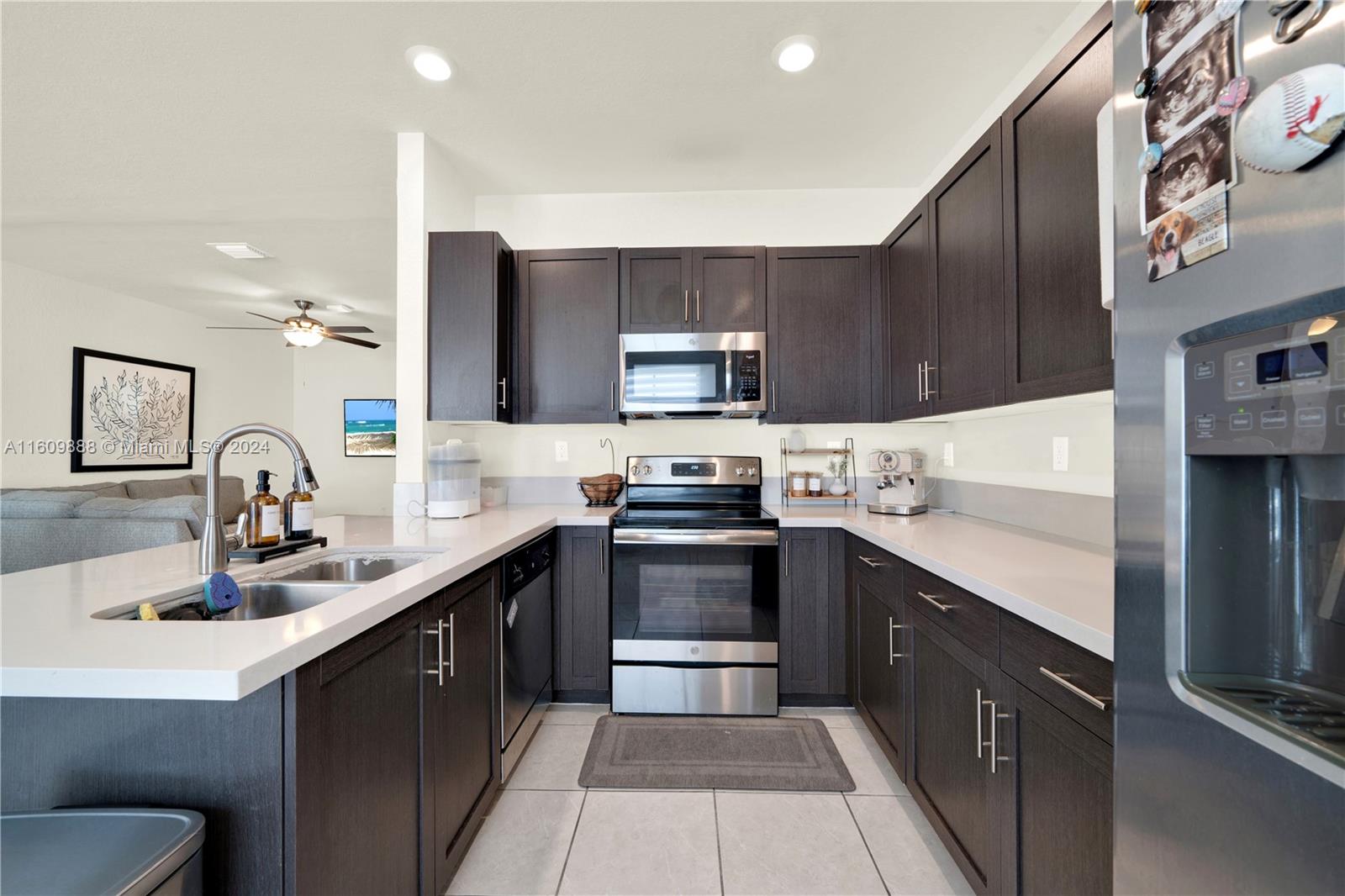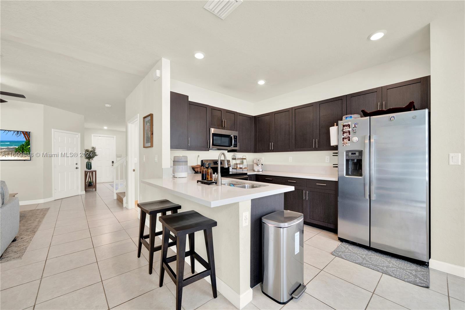 Discover your new home in the Aquabella gated community of Hialeah Gardens. This modern 2020-built townhouse offers 4 bedrooms, 2.5 bathrooms, and over 2,000 sq ft of living space, including a living room, dining room, and family space. The home features tile floors downstairs and wood flooring upstairs. Hurricane impact windows provide protection, and the kitchen has quartz countertops and stainless steel appliances. Enjoy the backyard with turf and an AC-equipped garage that can be used as a traditional garage, gym, office, or extra room. Aquabella offers resort-style pools, gyms, green areas, lakes, and play areas. Nearby are great schools and shopping centers with childcare, restaurants, shops, pharmacies, gas stations, and banks. Comfort and an active lifestyle await you.