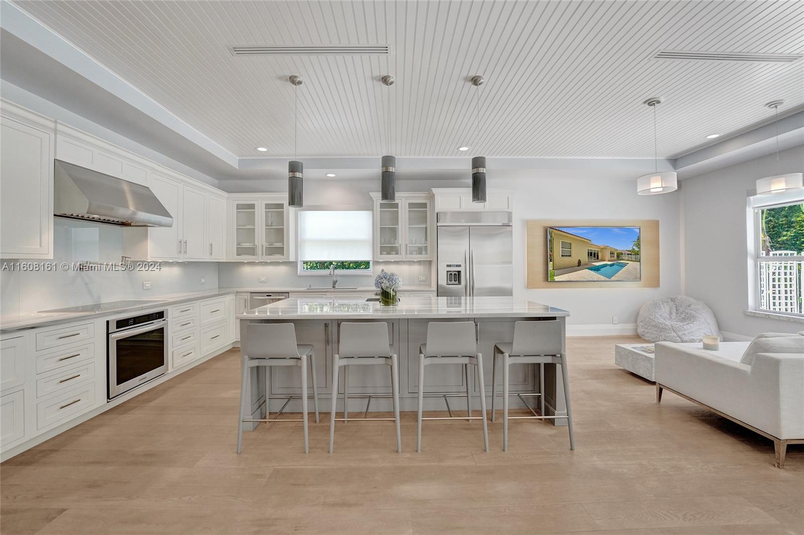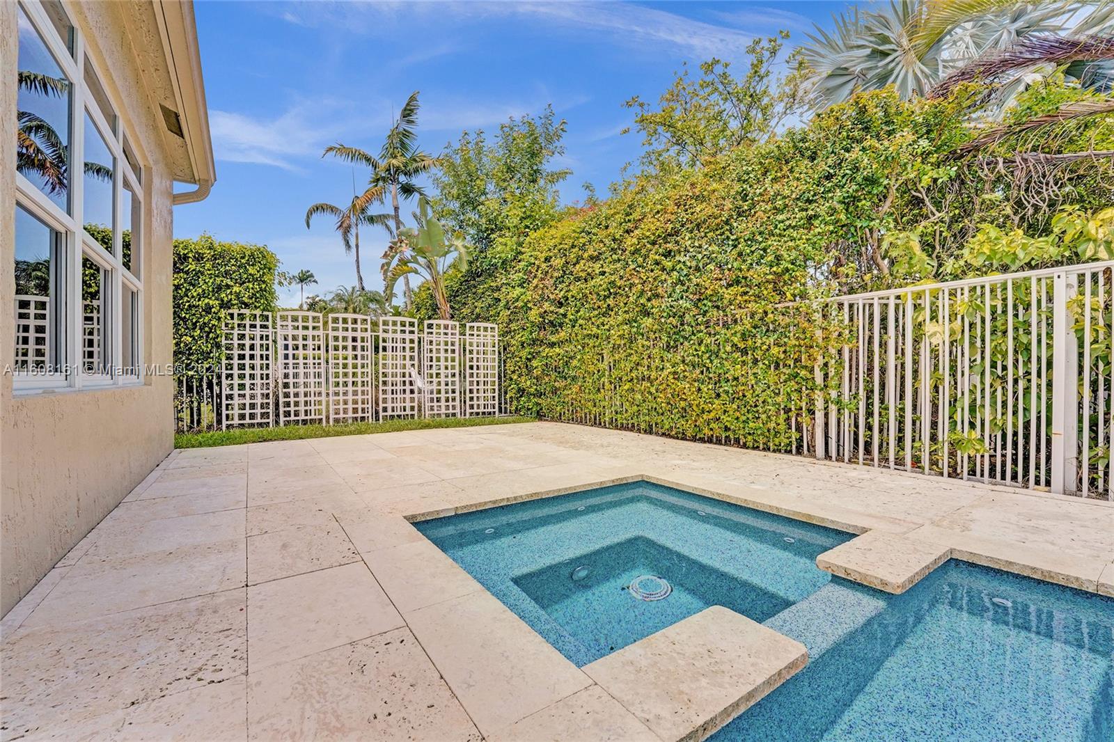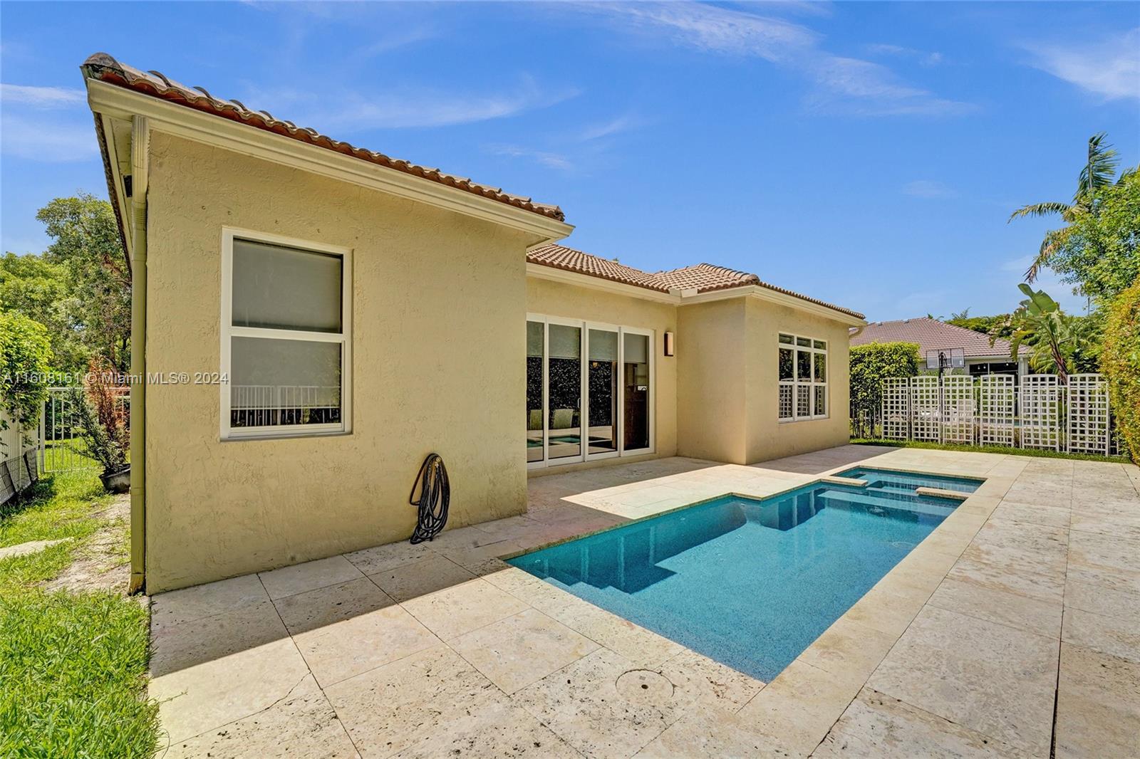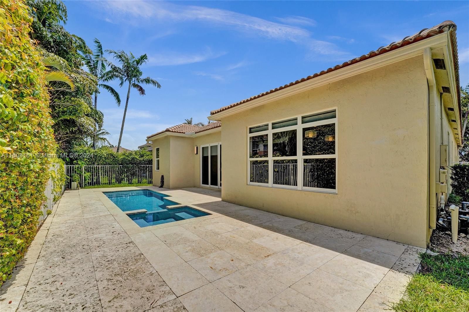 Experience unparalleled luxury in this fully renovated Bougainvillea model home. It features Duchateau wood flooring, custom-cut ceilings with designer beadboard inserts, and a grand center island kitchen with modern white shaker cabinets, marble countertops, a pot filler, and stainless steel appliances. Solid wood doors, a gas fireplace, and renovated bathrooms with Porcelanosa tile and Toto toilets. Custom closets, flat walls, 8" baseboards, and full-impact windows and doors. Outside, enjoy the travertine pool and spa, which are fully fenced and lushly landscaped. Every detail, from linear A/C vents to high-end lighting and custom garage flooring. Walk to the community pool, park, and top-rated schools. This home offers a perfect blend of luxury, comfort, and convenience.