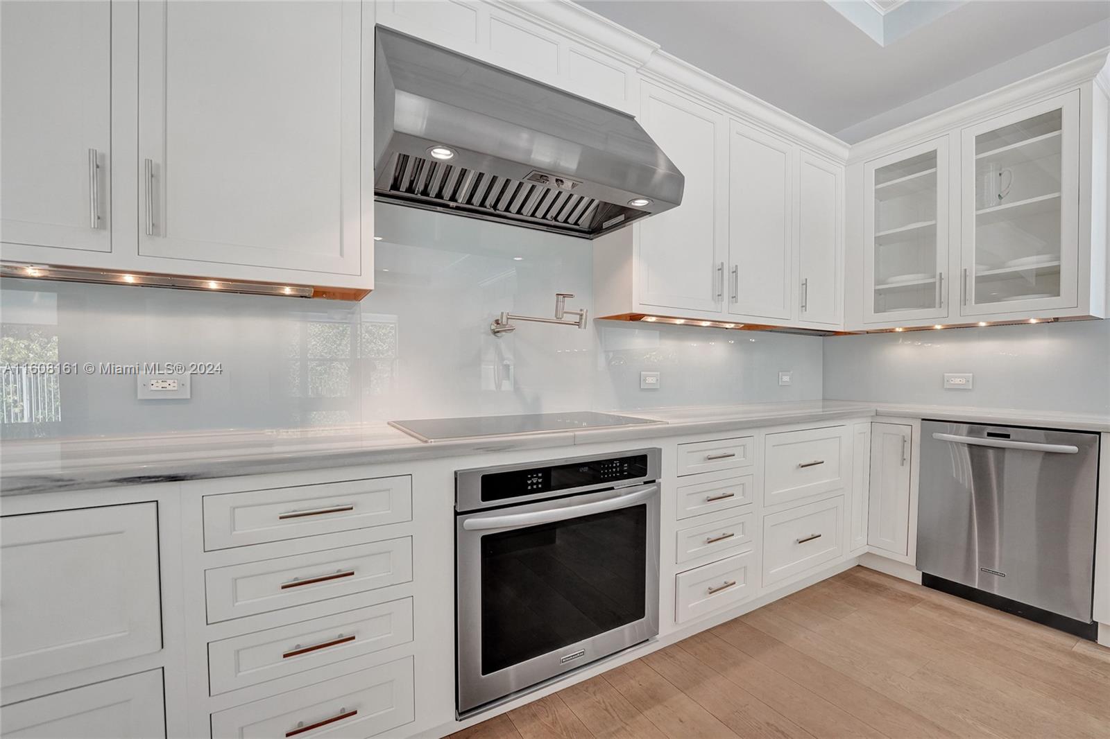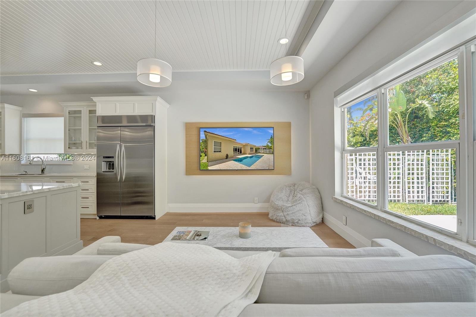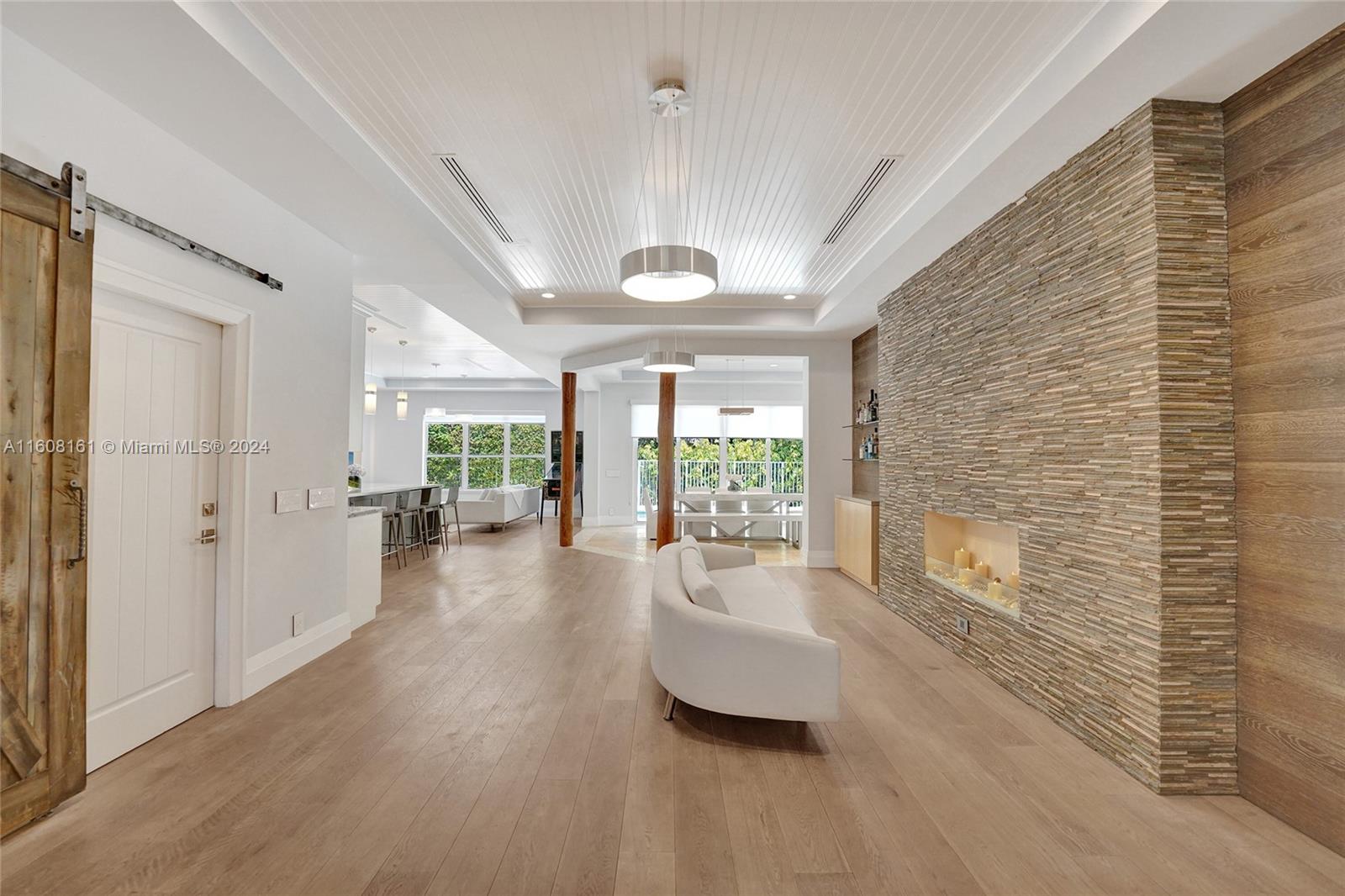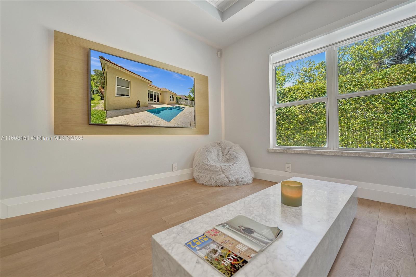 Experience unparalleled luxury in this fully renovated Bougainvillea model home. It features Duchateau wood flooring, custom-cut ceilings with designer beadboard inserts, and a grand center island kitchen with modern white shaker cabinets, marble countertops, a pot filler, and stainless steel appliances. Solid wood doors, a gas fireplace, and renovated bathrooms with Porcelanosa tile and Toto toilets. Custom closets, flat walls, 8" baseboards, and full-impact windows and doors. Outside, enjoy the travertine pool and spa, which are fully fenced and lushly landscaped. Every detail, from linear A/C vents to high-end lighting and custom garage flooring. Walk to the community pool, park, and top-rated schools. This home offers a perfect blend of luxury, comfort, and convenience.