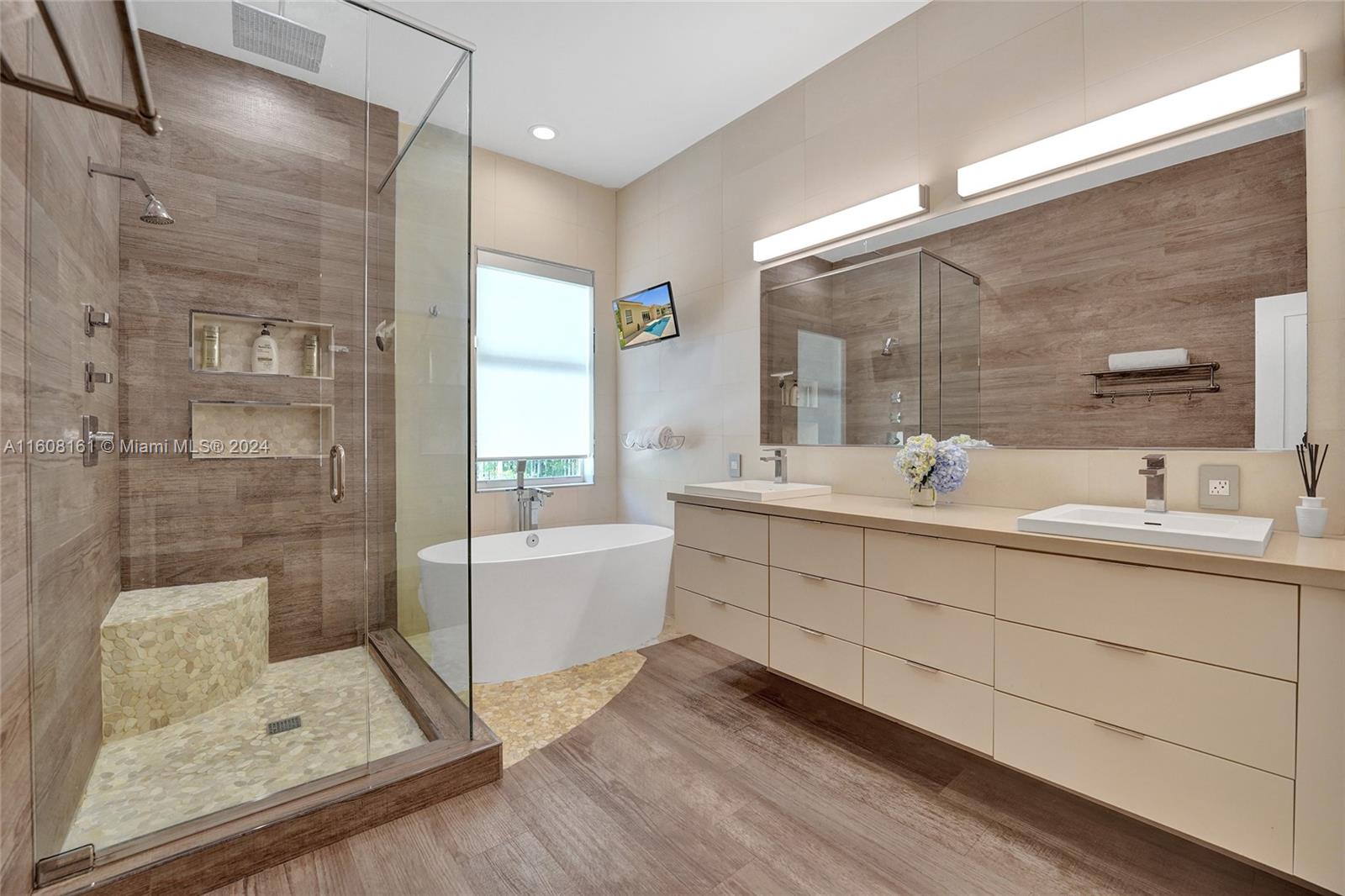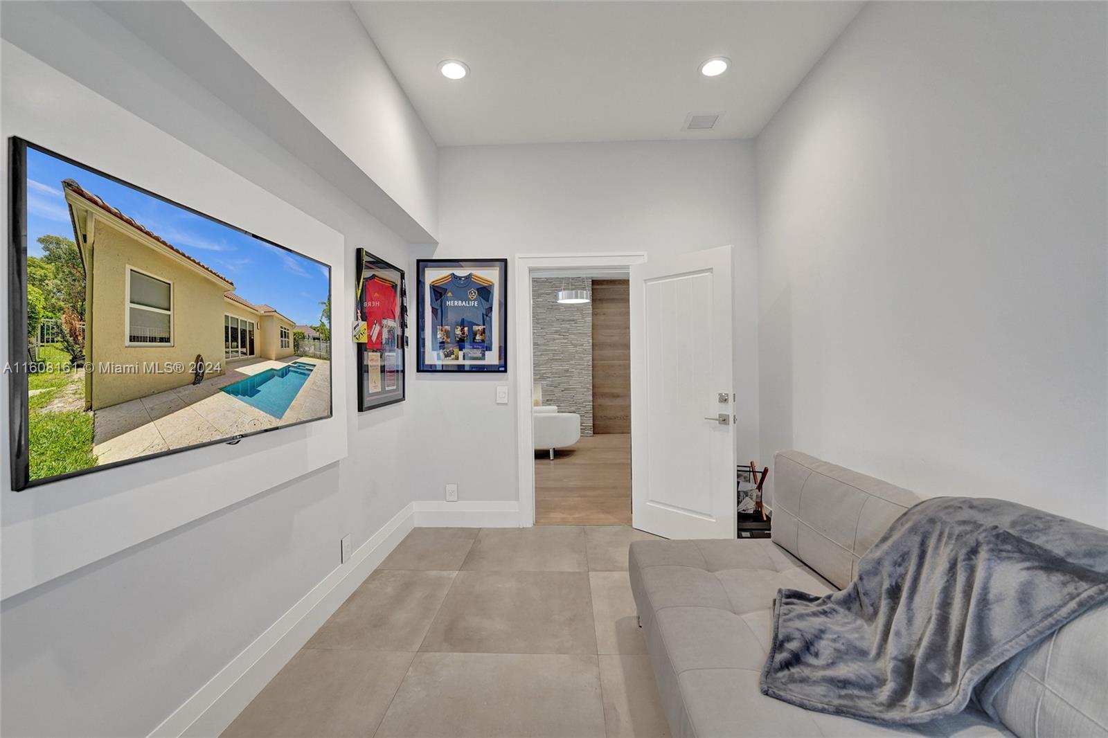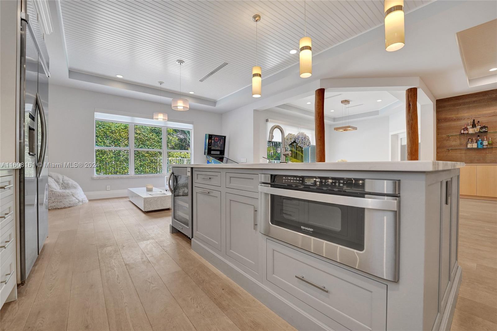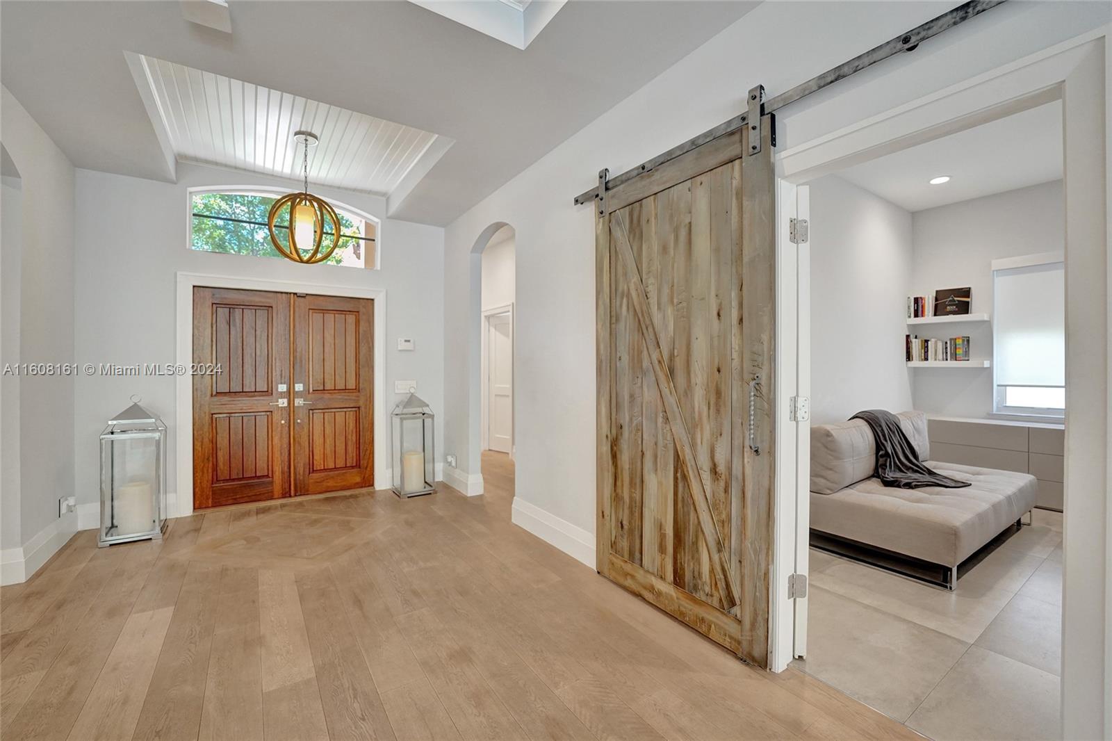 Experience unparalleled luxury in this fully renovated Bougainvillea model home. It features Duchateau wood flooring, custom-cut ceilings with designer beadboard inserts, and a grand center island kitchen with modern white shaker cabinets, marble countertops, a pot filler, and stainless steel appliances. Solid wood doors, a gas fireplace, and renovated bathrooms with Porcelanosa tile and Toto toilets. Custom closets, flat walls, 8" baseboards, and full-impact windows and doors. Outside, enjoy the travertine pool and spa, which are fully fenced and lushly landscaped. Every detail, from linear A/C vents to high-end lighting and custom garage flooring. Walk to the community pool, park, and top-rated schools. This home offers a perfect blend of luxury, comfort, and convenience.