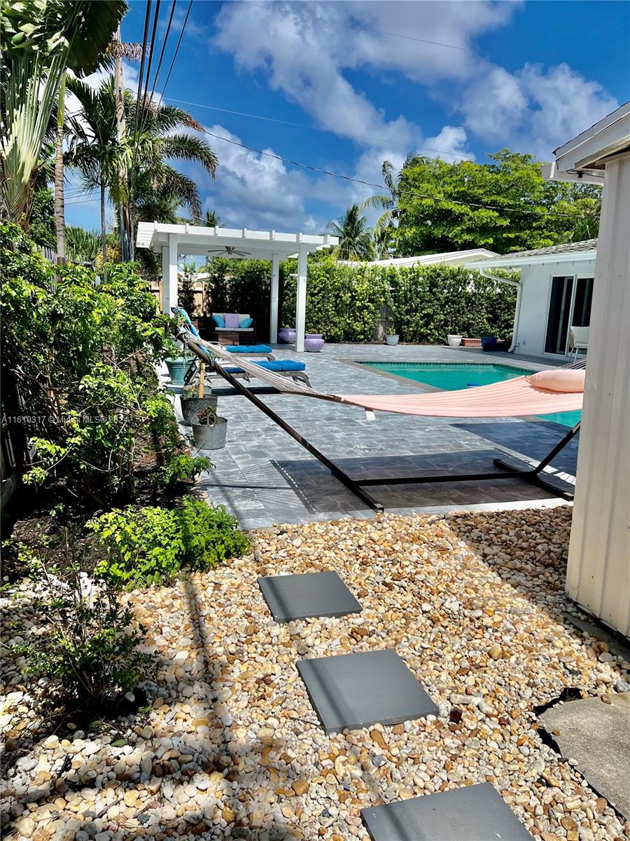 SELL YOUR LAWNMOWER AND RECLAIM YOUR WEEKENDS! LOWER MAINTENANCE LANDSCAPING WITH LOTS OT RIVER AND WHITE QUARTZ ROCKS, NATIVE SHRUBS WHICH DO NOT NEED ADDITIONAL IRRIGATION AND ATTRACT LOTS AND LOTS OF BUTTERFLIES AND BIRD LIFE. THIS BEAUTIFUL RANCH STYLE HOME IS LIGHT, BRIGHT, AND MODERN. YOU'LL SEE THE RESORT-LOOKING POOL, MARBLE PAVERS AND GAZEBO FROM EVERY LIVING AREA AND MASTER BEDROOM. IMPACT WINDOWS, MODERN KITCHEN, MODERN BATHROOMS, A/C 2018, ROOF 2009. PVC PLUMBING (EXCEPT FOR A SMALL SECTION). BONUS MEDIA ROOM! PLANTATION SHUTTERS. LAMINATE FLOORS IN BEDROOMS FOR THAT WARMTH. CIRCULAR DRIVEWAY. 7 MINUTE DRIVE TO THE BEACH.