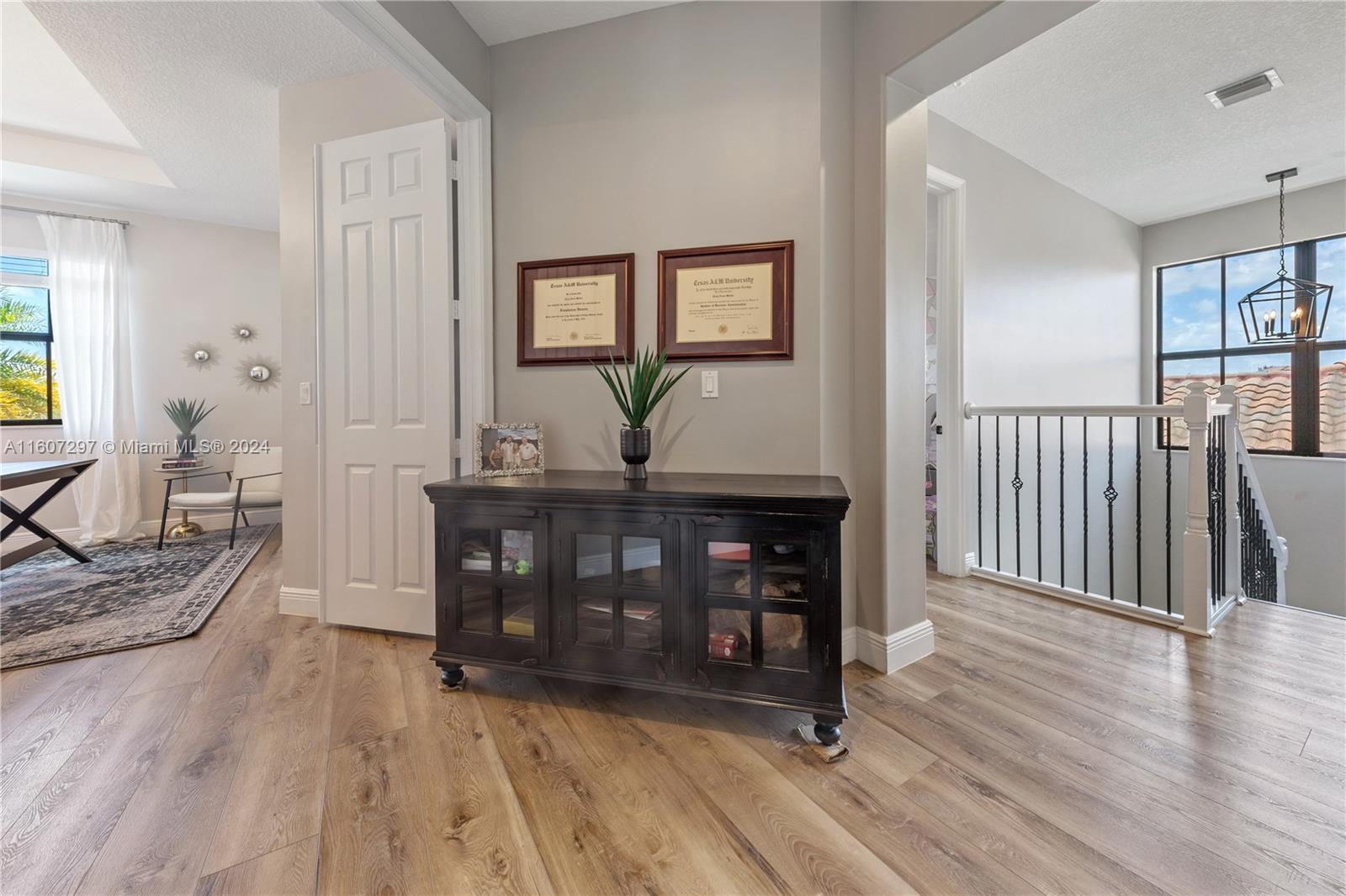 Welcome to Cooper City Florida! Situated in the most desirable gated community of Monterra is this waterfront estate home. The Delano model features 5 bedrooms, 5.5 baths including a separate full in law suite and a well-appointed office. Additional features include all remodeled bathrooms, the kitchen offers a prep island w/t sink, breakfast area, cabana bath and water views. Your outdoor enclosed space offers a Lake view highlighted by an infinity edge pool and covered lanai. Home comes with Hurricane Impact Windows and a 3-car garage, one has been converted into an office. The community of Monterra offers resort style amenities including tennis & b-ball courts, fitness center, tot lot & dog park. Zoned for A+ rated schools, just minutes from the airport & major highways.