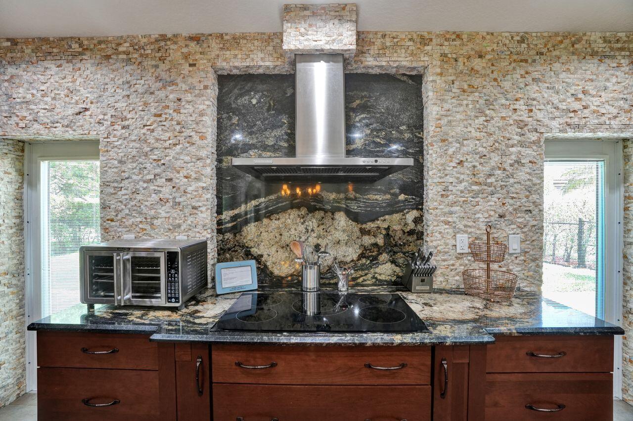 BRAND NEW S-tile roof installed June 2024. 4 bedroom corner lot home featuring a gourmet chefs kitchen with oversized island and all the state of the art commercial grade stainless steel appliances, including a side by side French door refrigerator, convection oven, warming tray, trash compactor, and induction cooktop. Built-in custom bar with wine cooler, plantation shutters and hurricane impact sliding doors throughout. A/C replaced in 2021. Oversized interior laundry room with 2nd refrigerator and 2nd dishwasher. Located on one of the largest lots! Garage can be a 5th room/workspace, has AC mini split installed in 2023 or sellers will convert back to garage for buyers. HOA covers lawn care.
