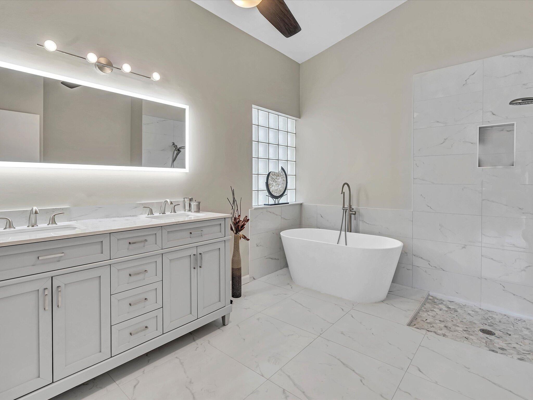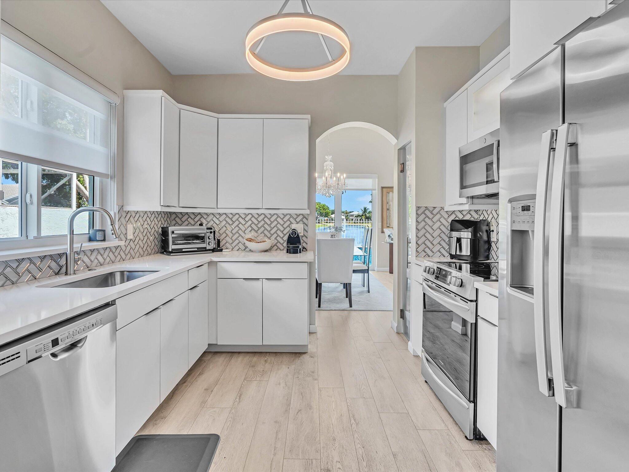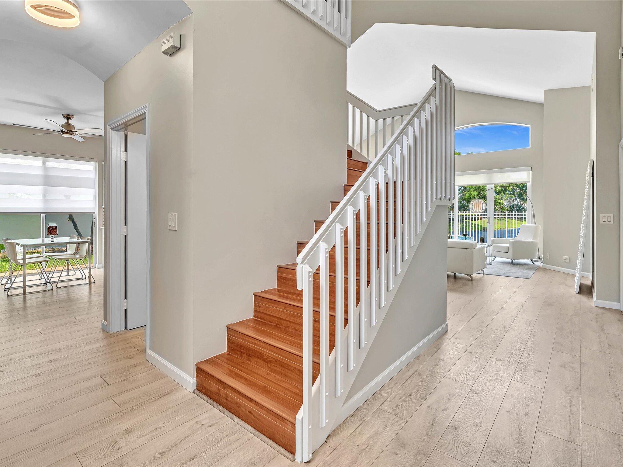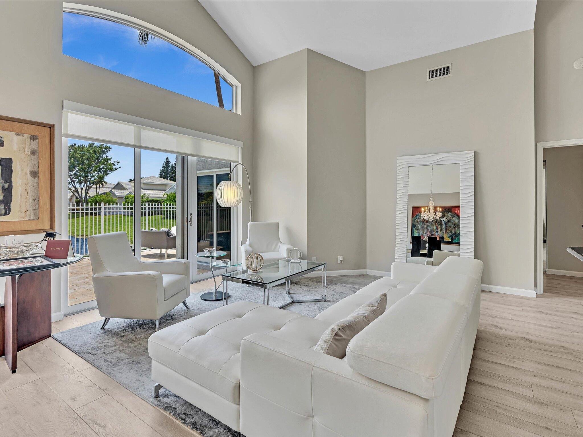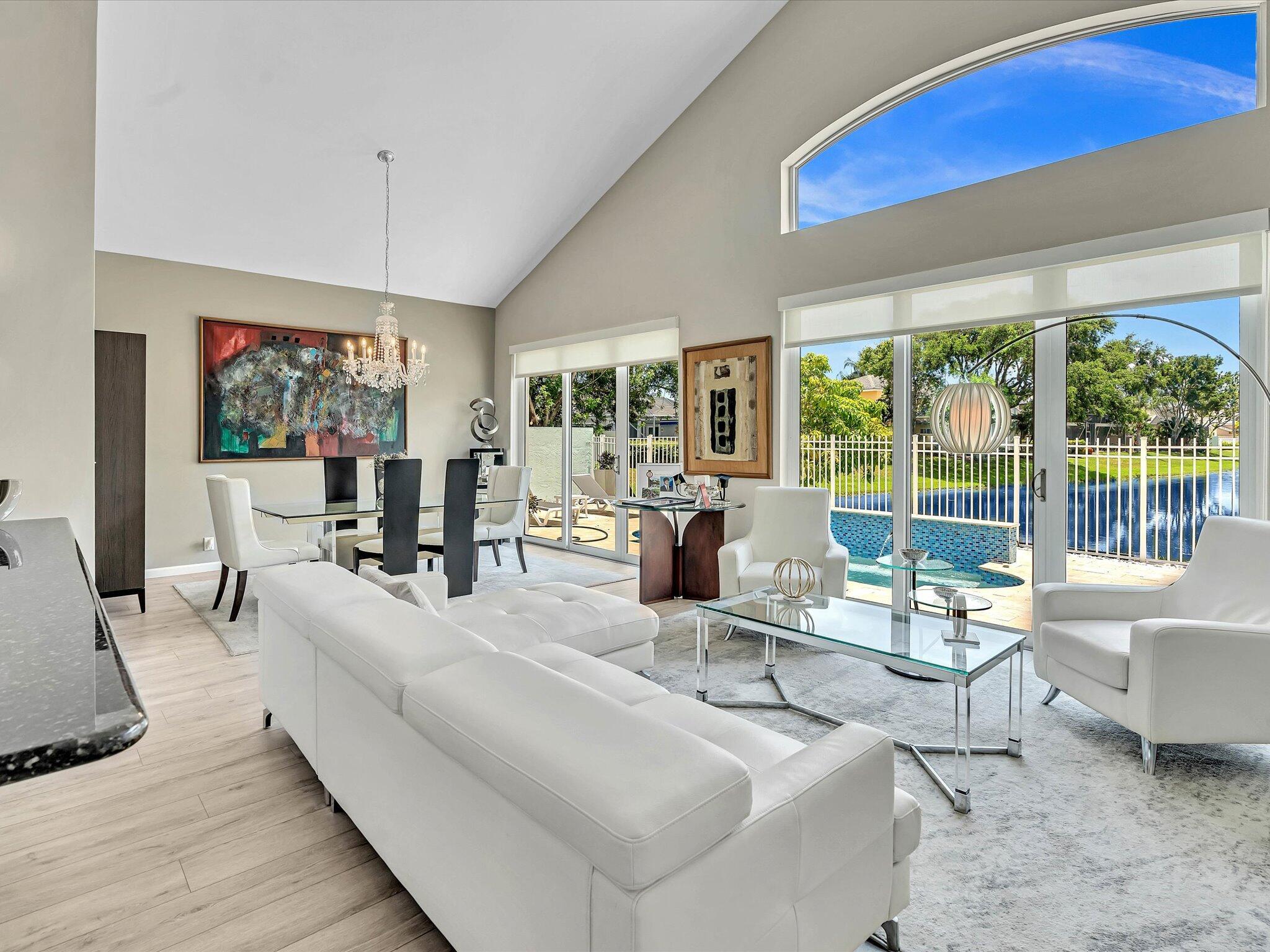 BREATHTAKING SINGLE FAMILY POOL HOME WITH LONG LAKE VIEWS IN THE PALMS at BOCA POINTE. Fully renovated,4 bdrms+Bdrm/office. Primary bdrm, office & den conveniently located on the main level. A chefs kitchen with walk in pantry, quartz countertops & SS appliances.The den for extra living space is located off the Kitchen.3 add'l bdrms, full bath & spacious loft area on the 2nd floor. Sliders from Dining/living rm open onto a peaceful backyard oasis, perfect for relaxing, entertaining.Other features include vaulted ceilings,Impact glass & updated flooring. Guard Gated. Community Pool. Country Club membership NOT Mandatory. Boca Pointe is an all age communityLIVE THE LIFE YOU DESERVE!