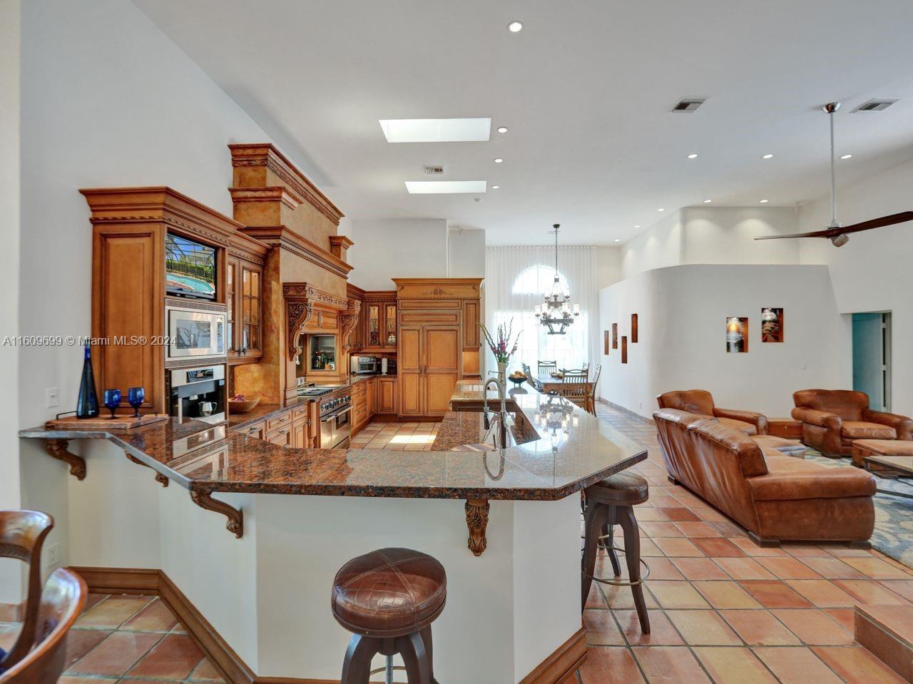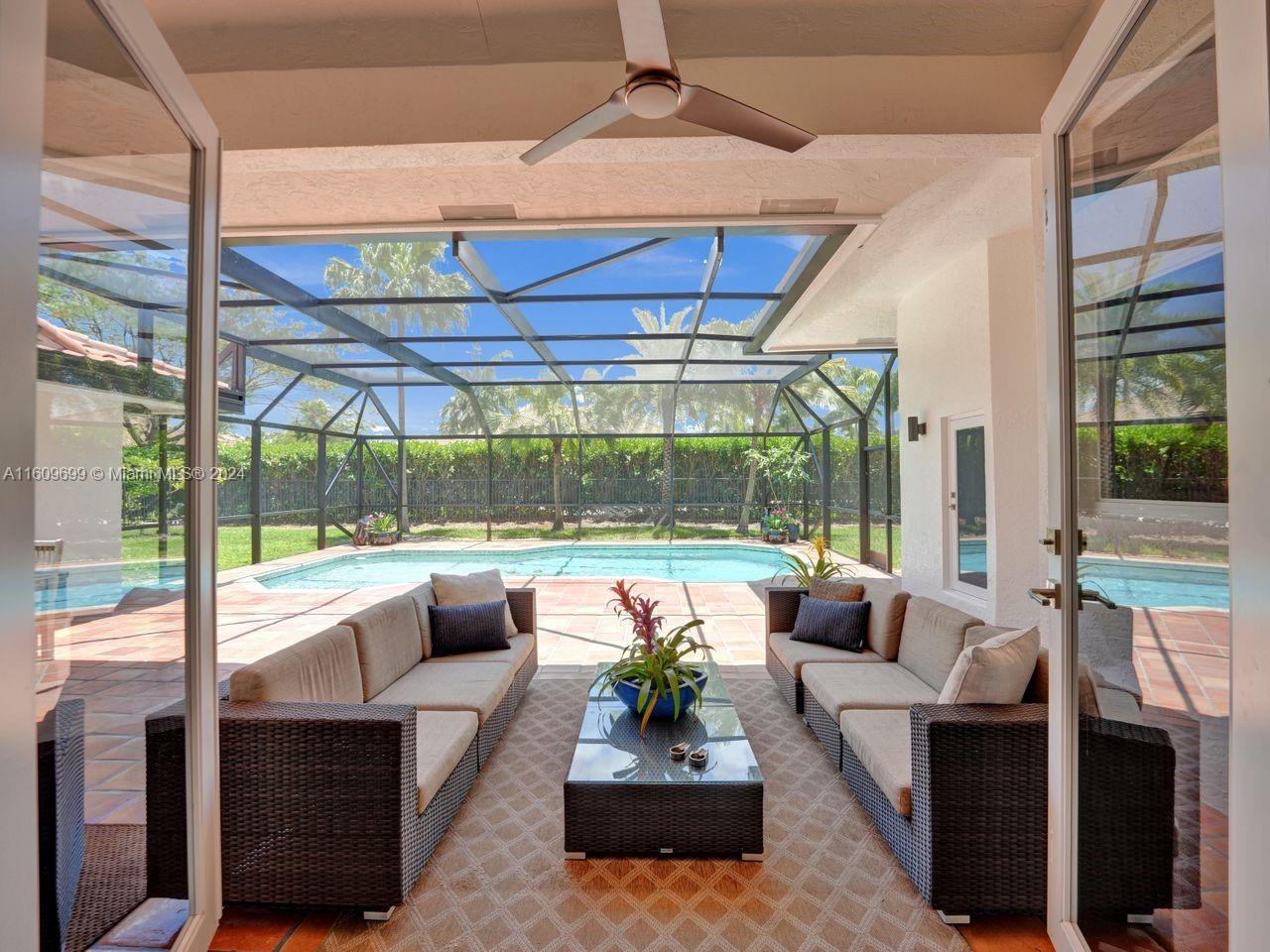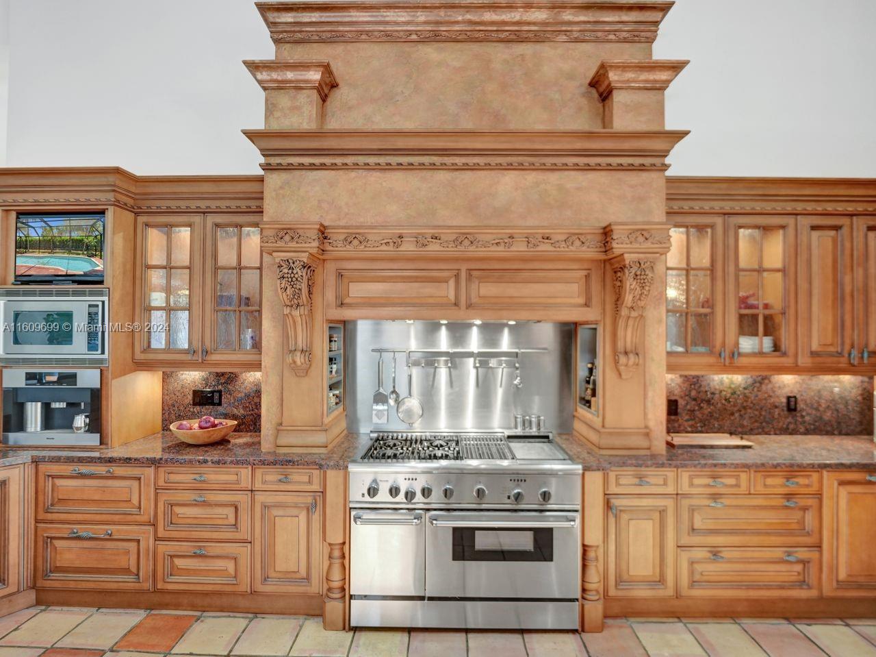 This is your Dream Home! Located in exclusive Palm Island, one of Weston's most desirable communities, this pristine home has timeless charm & a beautiful open floor plan w/5 Bedrooms & 3 1/2 baths. Features include brand new impact windows & doors, handcrafted built-ins, family room & living room w/double-sided fireplace, oversized chef's kitchen w/Sub-Zero appliances, Thermador gas stove, built-in Miele coffee/espresso system, new bathrooms w/European fixtures, endless gas hot water, primary bedroom w/sitting area & luxurious bath. The spacious outdoor covered living area has an oversized pool, large backyard, lush landscaping & piped gas grill. Gated community w/front/rear gates & neighborhood park, walking distance to ball fields, schools, places of worship, shopping & dining!