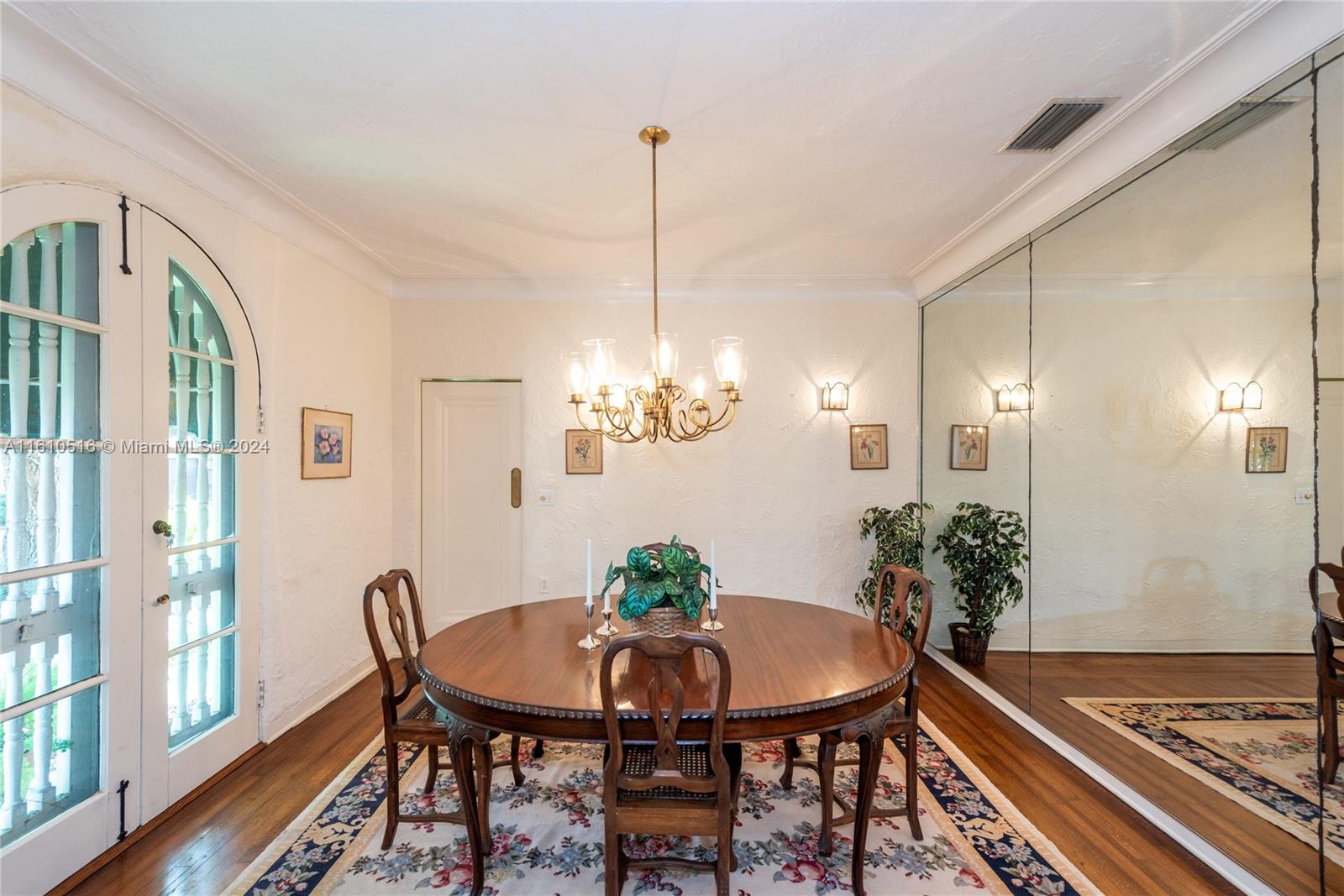 This 1927 home is a Mediterranean Revival home with approx. 2,756 adj. sq. ft. You enter a foyer that leads to a large living room with a fireplace and exposed wood beams on the ceiling. From the living room, is a beautiful dining room, that leads into the kitchen with an eat-in area. The kitchen has been updated to a country style, with a gas stove, 2 refrigerators, and a washer/dryer enclosed in the cabinets. Next is an office with a closet and half bath. Upstairs are four nicely sized bedrooms all with hardwood floors. There are two baths and the closets are very generously sized and updated. Impact windows and hurricane panels. The roof is from 2010. The house is on a 5,000 sq. ft. lot with a 2-car garage and on public sewer, within walking distance to DT Coral Gables.