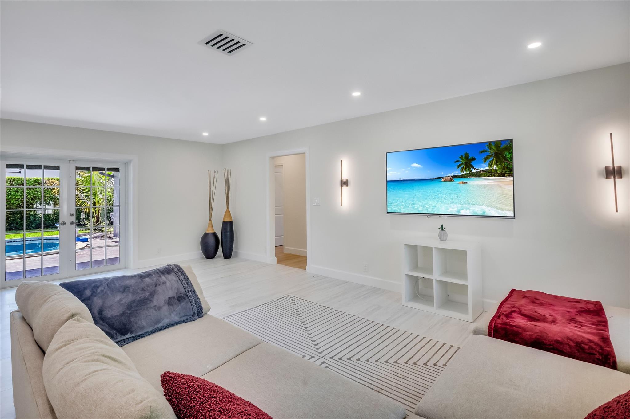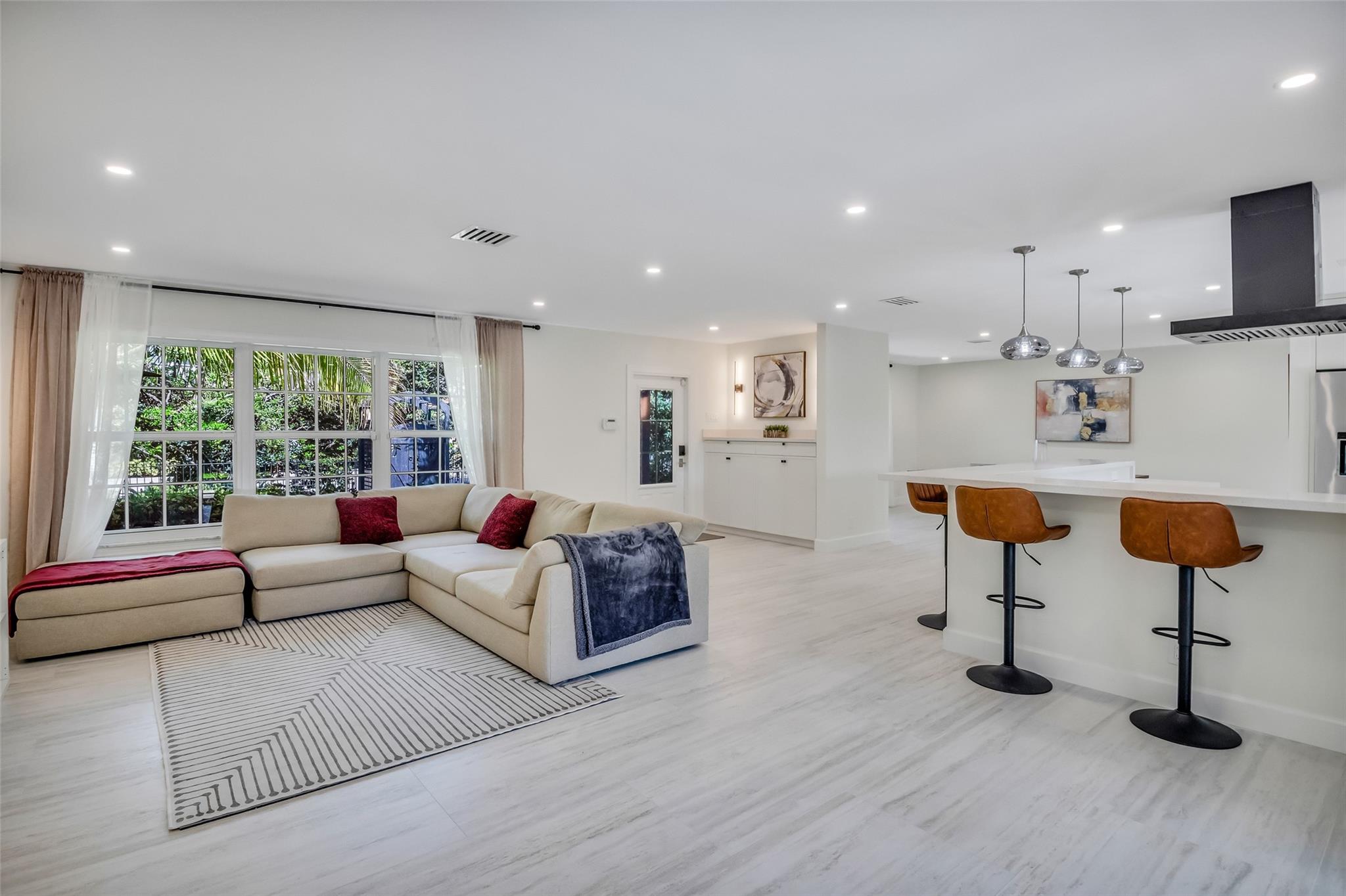 Fully renovated, stunning home in the heart of Fort Lauderdale! Best Priced Home in prestigious Coral Ridge Country Club. Perfect for a family to enjoy the Florida lifestyle near best schools. 4 Bedrooms + Office and 2 Bathrooms. Lush landscaping throughout with pineapples and olive tree. Salt-water Heated Large pool. Fully furnished by West Elm. Custom kitchen top tier appliances and generous cabinetry for plenty of storage. Impact windows and doors. Home is powered by 40 Solar panels that run the entire home & 50 Amp Electric vehicle outlet, full insulation. Electric golf cart is negotiable. All appliances are under warranty. Qualified buyers can get a 4.78% interest rate.