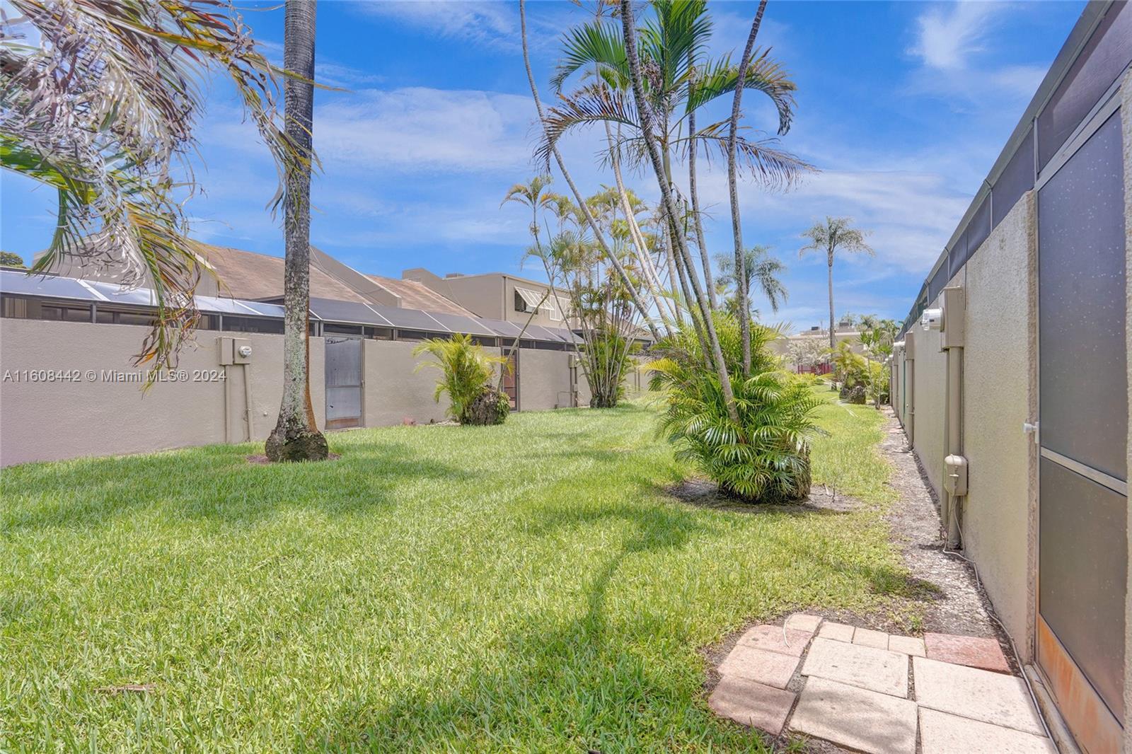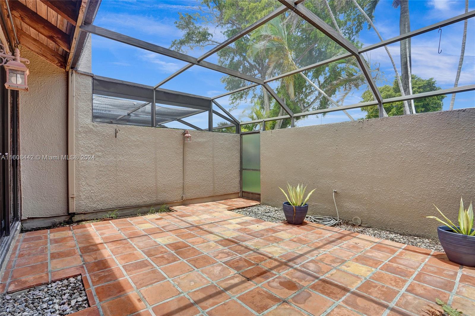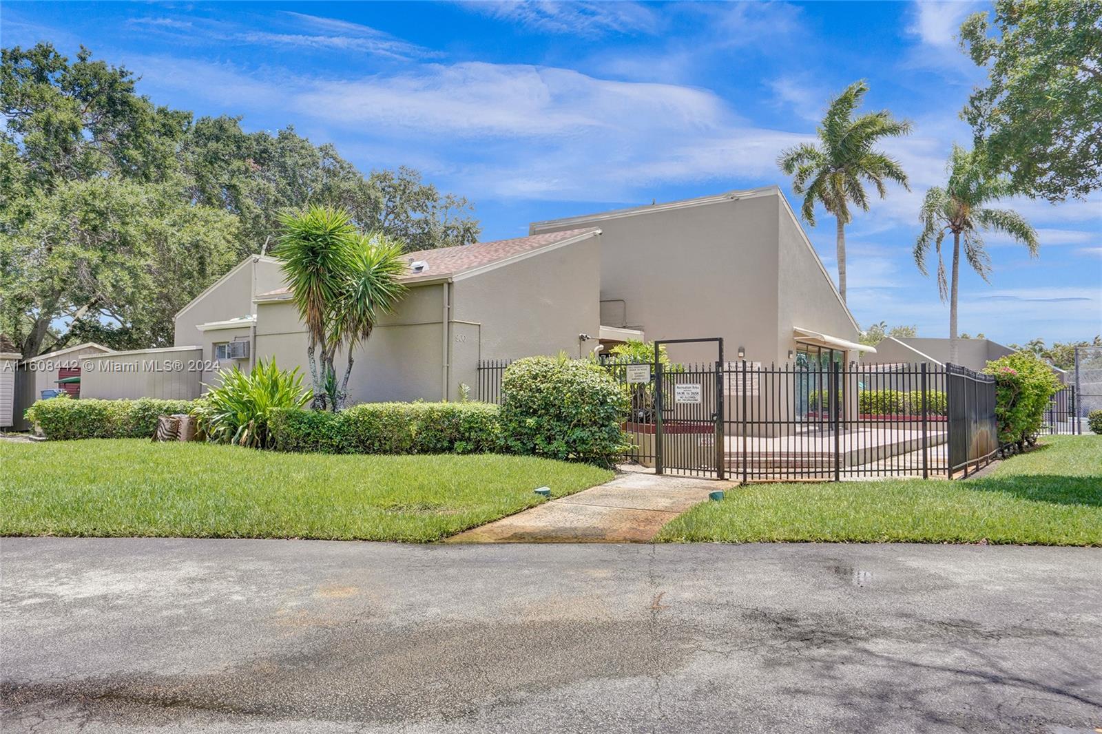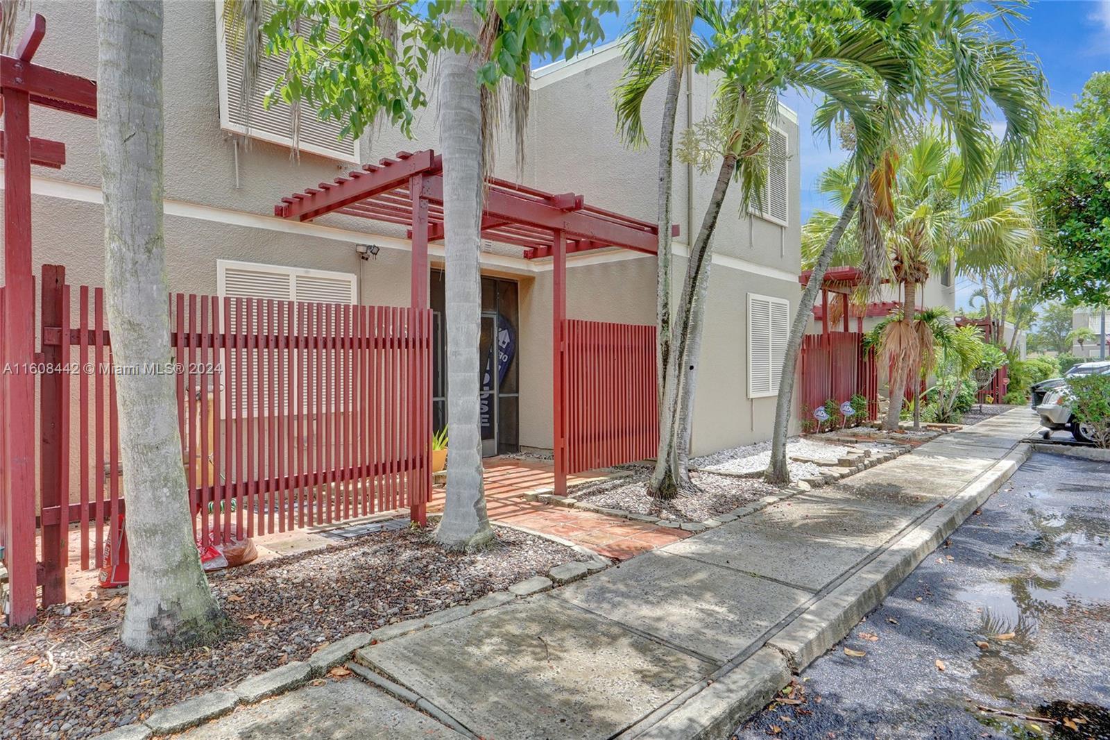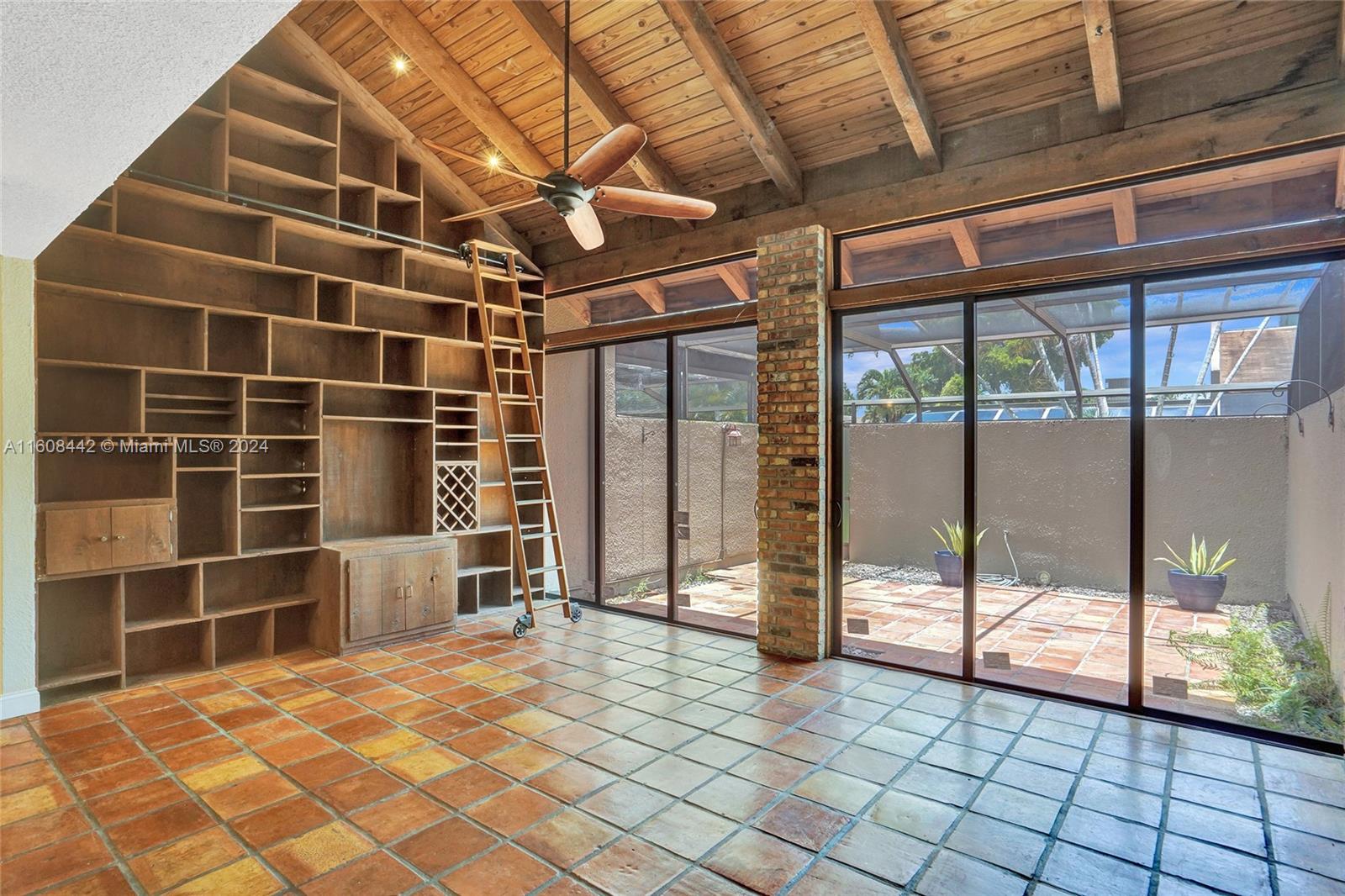 Welcome home to this spacious 3 bedroom 2 bath townhouse located in the desirable community of Villas West. Updated kitchen and baths. Open floor plan with high vaulted ceilings with wood beams. Library shelves from floor to ceiling with a sliding library ladder and a Chicago brick wall. Large master with walk-in closet. Brand new hurricane windows and doors throughout. Sliding glass doors across the entire back of the townhouse that open to your private secluded patio. Low maintenance, amenities which include pool, playground, and tennis courts. Bring your FHA buyers .
