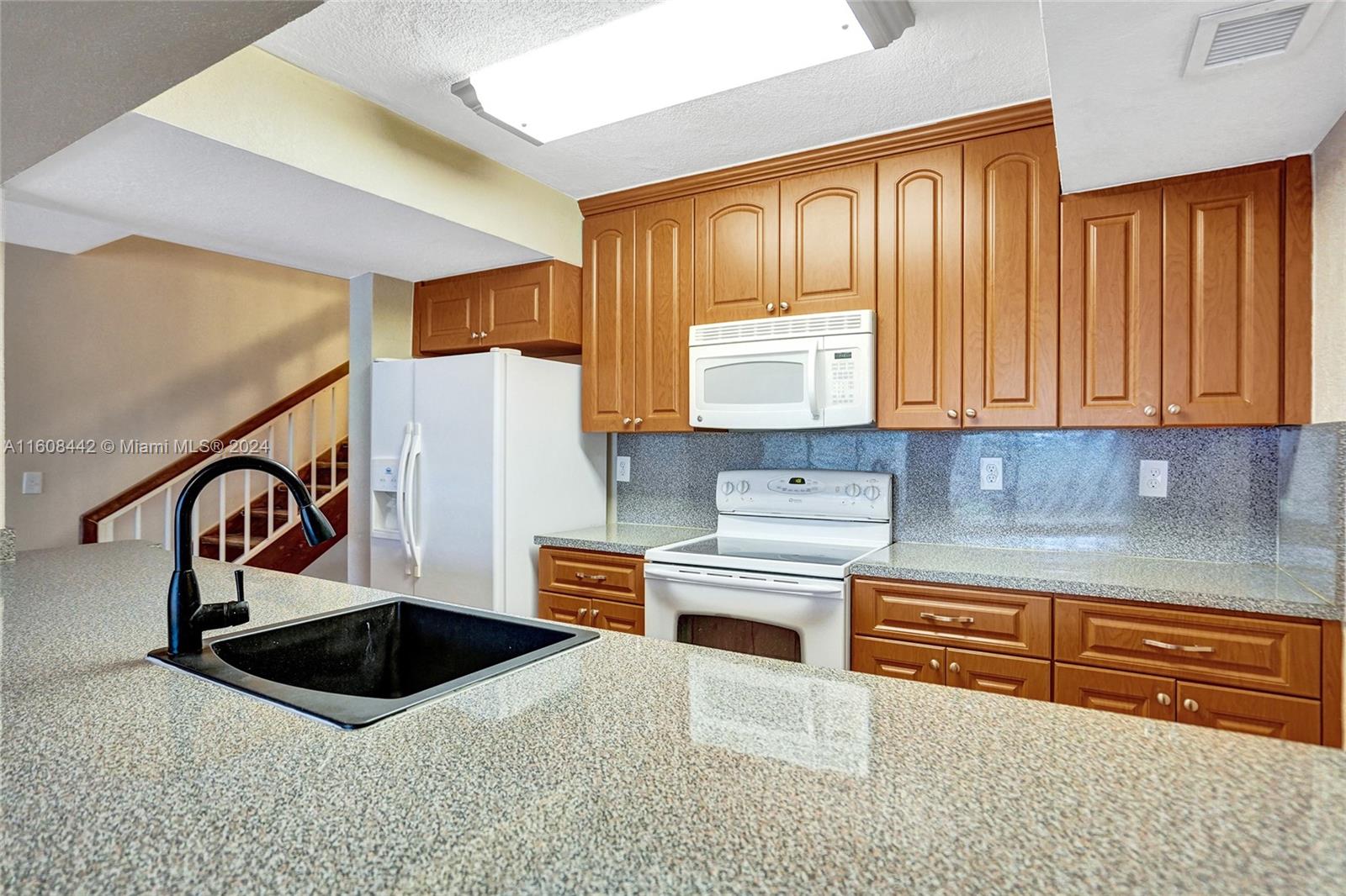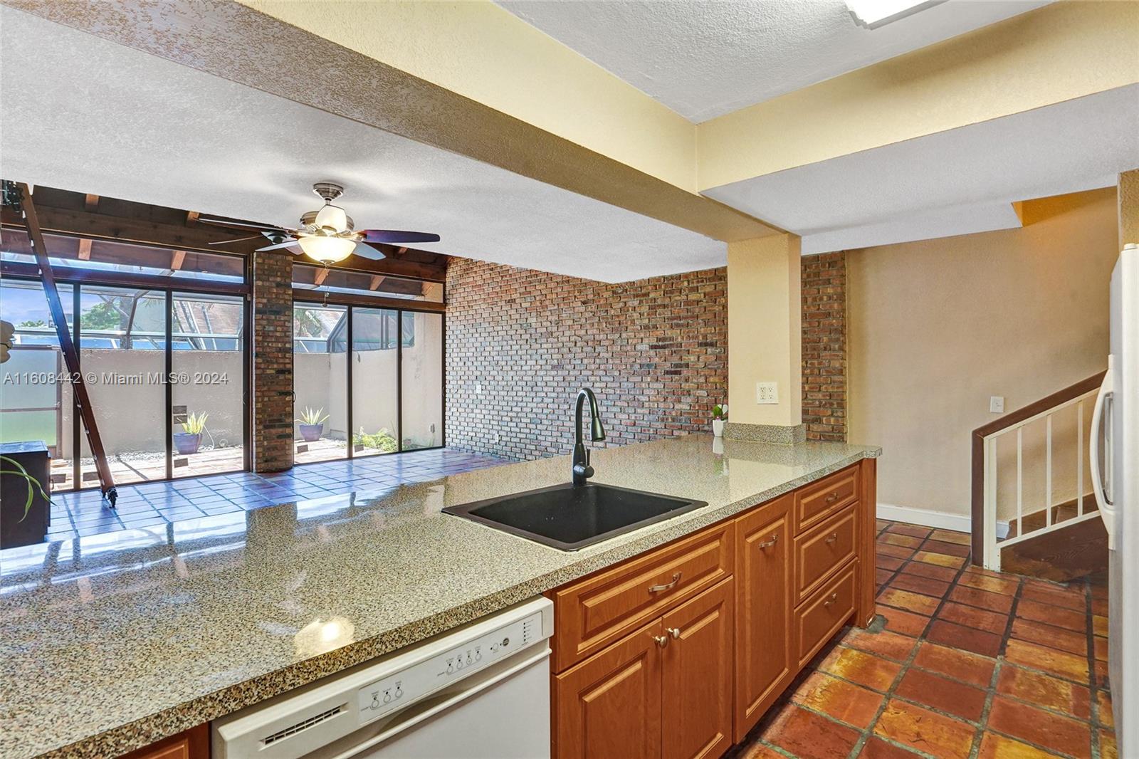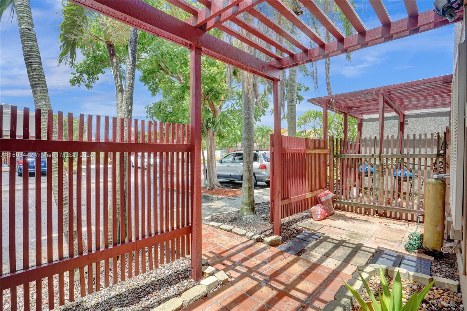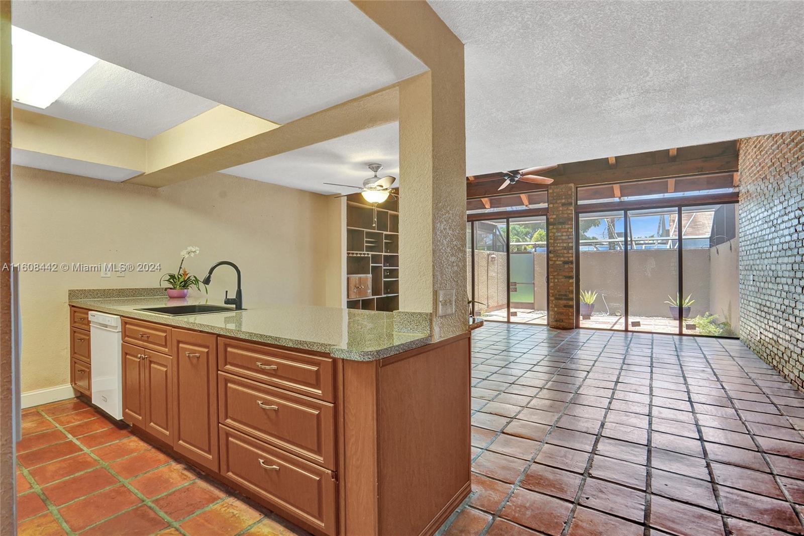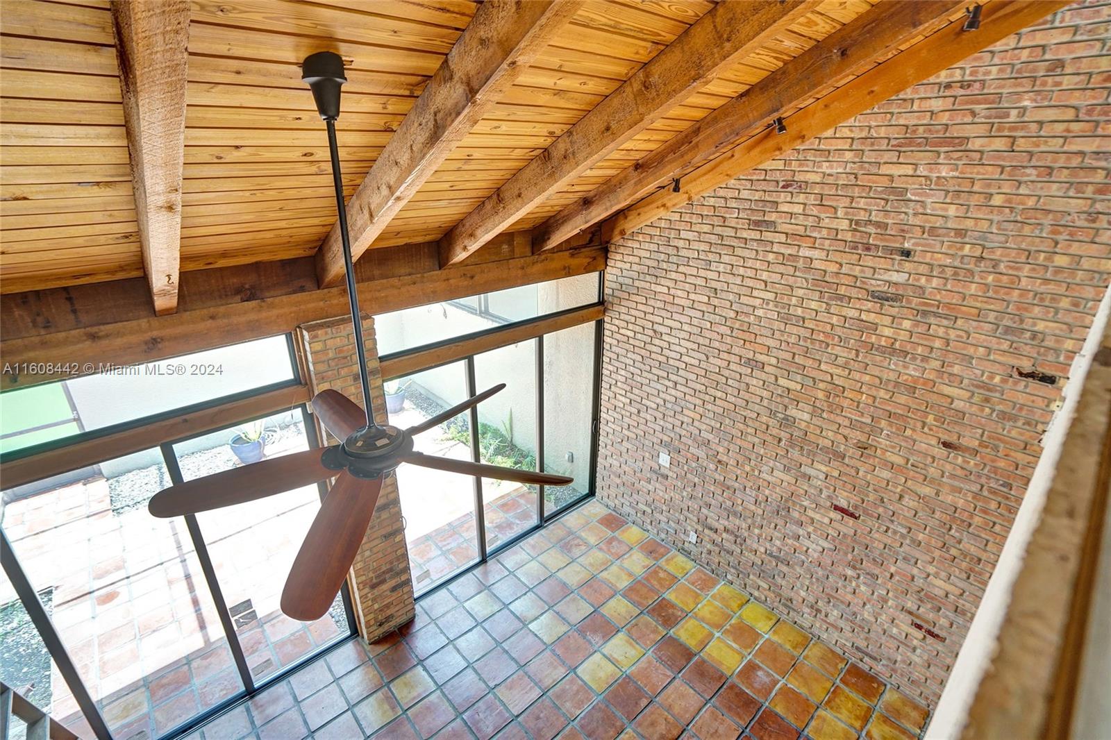 Welcome home to this spacious 3 bedroom 2 bath townhouse located in the desirable community of Villas West. Updated kitchen and baths. Open floor plan with high vaulted ceilings with wood beams. Library shelves from floor to ceiling with a sliding library ladder and a Chicago brick wall. Large master with walk-in closet. Brand new hurricane windows and doors throughout. Sliding glass doors across the entire back of the townhouse that open to your private secluded patio. Low maintenance, amenities which include pool, playground, and tennis courts. Bring your FHA buyers .