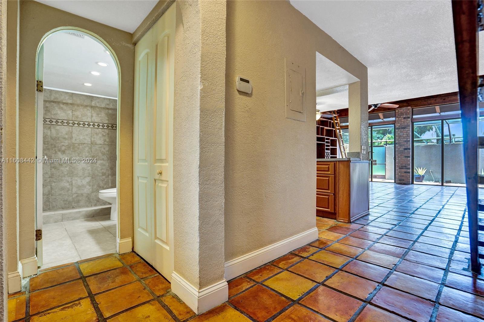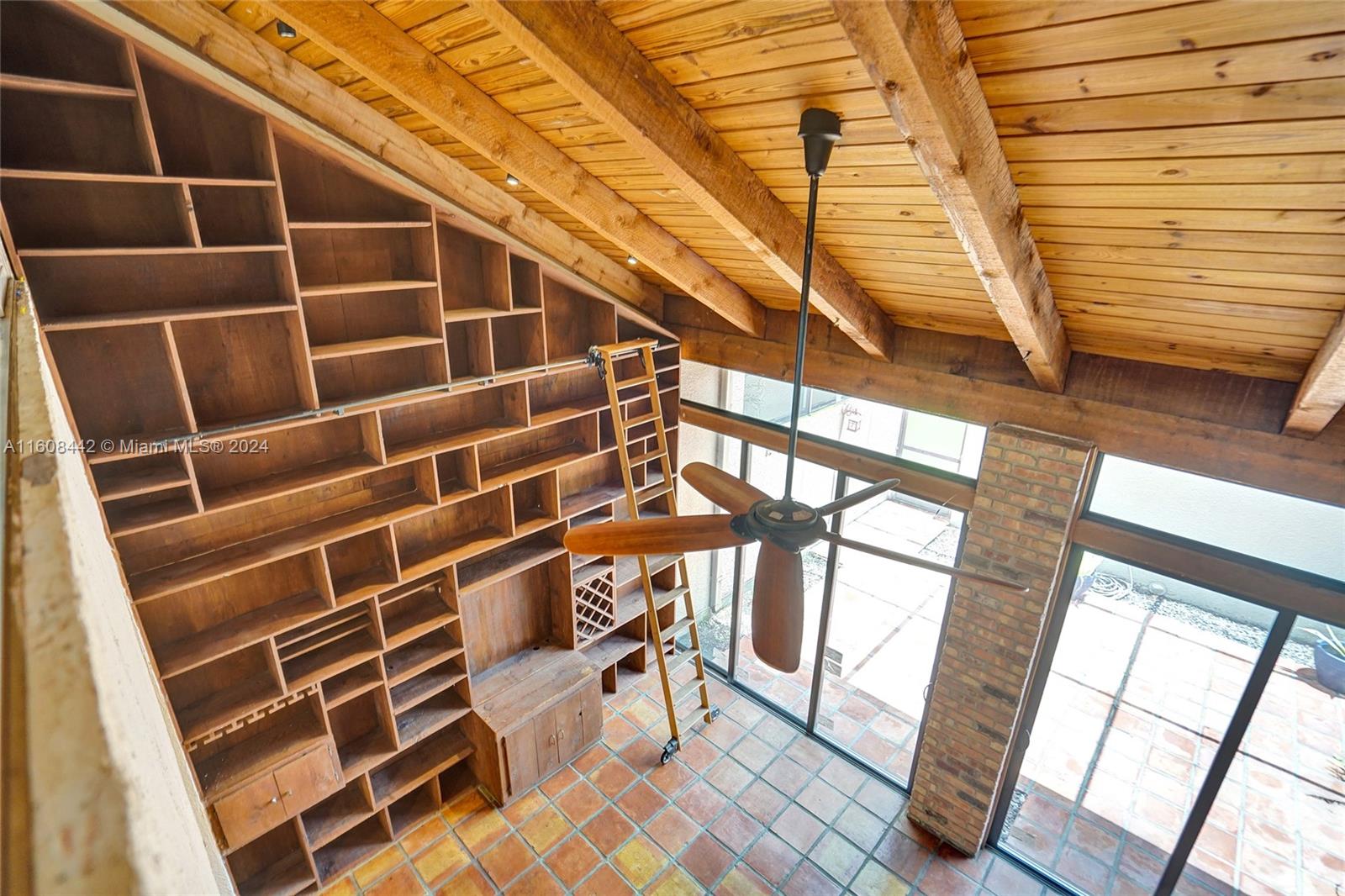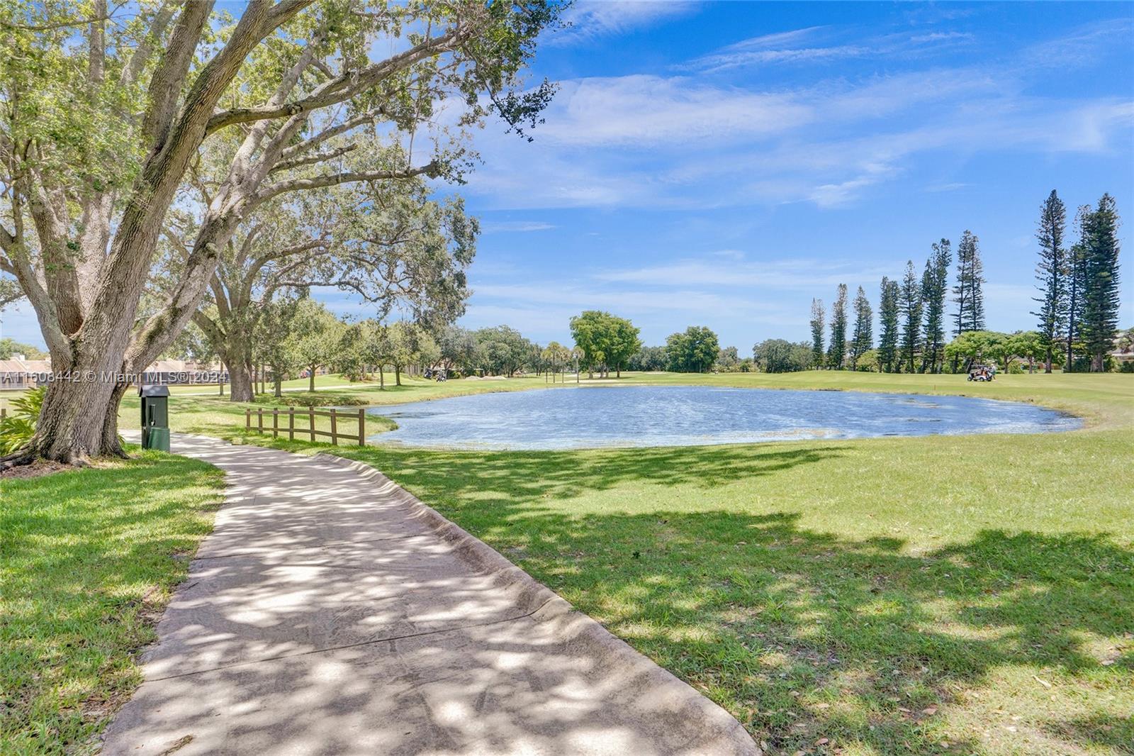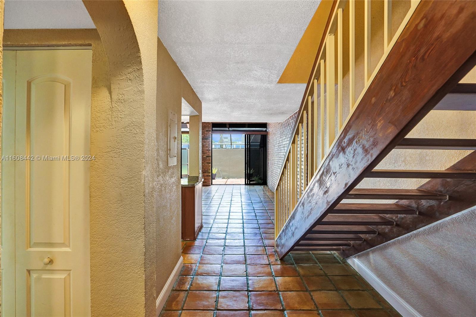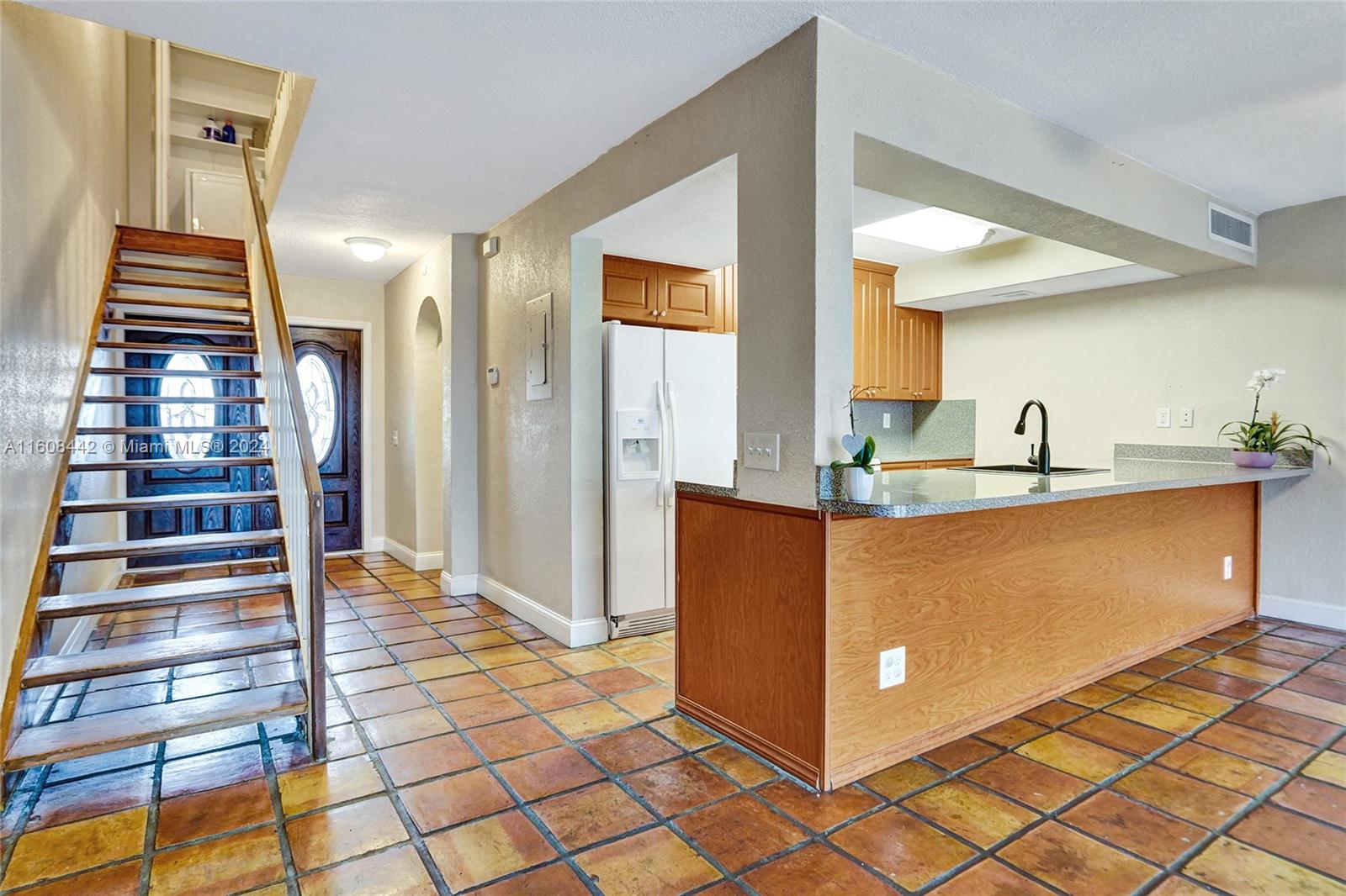 Welcome home to this spacious 3 bedroom 2 bath townhouse located in the desirable community of Villas West. Updated kitchen and baths. Open floor plan with high vaulted ceilings with wood beams. Library shelves from floor to ceiling with a sliding library ladder and a Chicago brick wall. Large master with walk-in closet. Brand new hurricane windows and doors throughout. Sliding glass doors across the entire back of the townhouse that open to your private secluded patio. Low maintenance, amenities which include pool, playground, and tennis courts. Bring your FHA buyers .