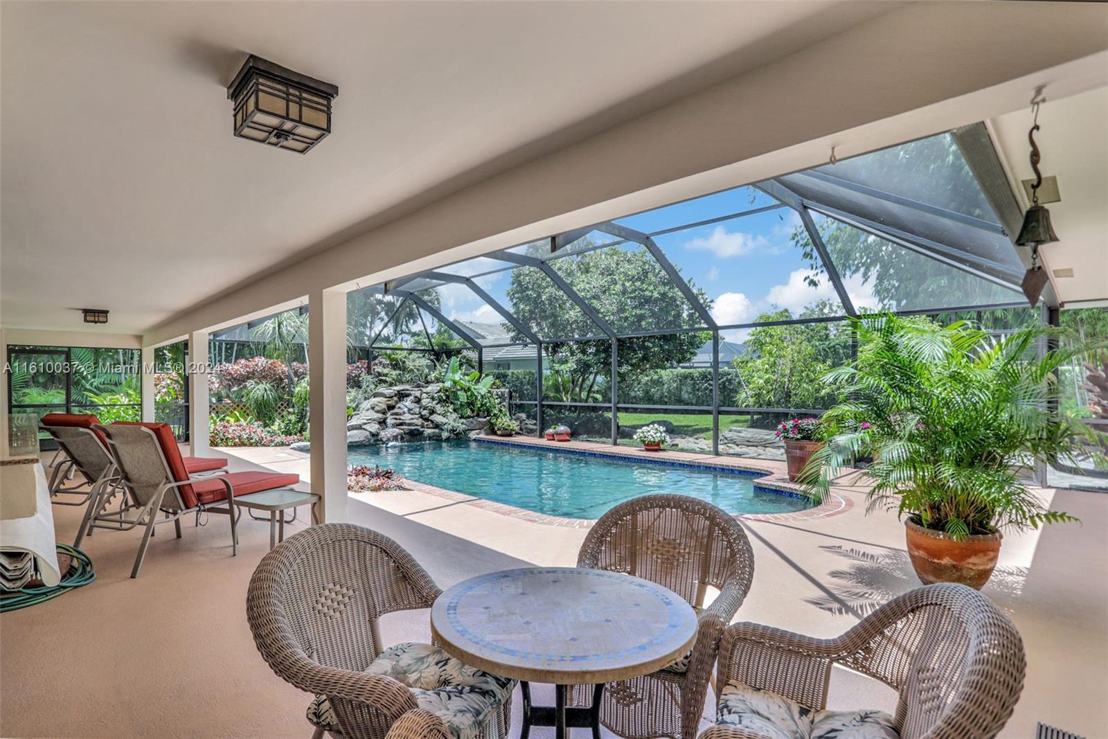Welcome to your sprawling ranch-style oasis, featuring two master bedrooms with ensuite baths, perfect as in-law quarters. Sporting a NEW ROOF and meticulously maintained, this rare gem sits on a huge 17,156 SF lot inside Maplewood's 37 home Treasure Island community. The breathtaking custom-designed backyard includes a sparkling pool, cascading natural-rock waterfall, lush greenery, vibrant flowers, and a Japanese garden. Culinary enthusiasts will love the 5-burner Thermador gas stove, cook's island, stainless appliances and solid maple cabinetry. Relax in the warm glow of your wood-burning fireplace, surrounded by Crystal Beach granite or in your Far-Infrared sauna. Elegant flooring features large-format Italian porcelain. New AC, water heaters Near Cypress Park for pickleball, sports.