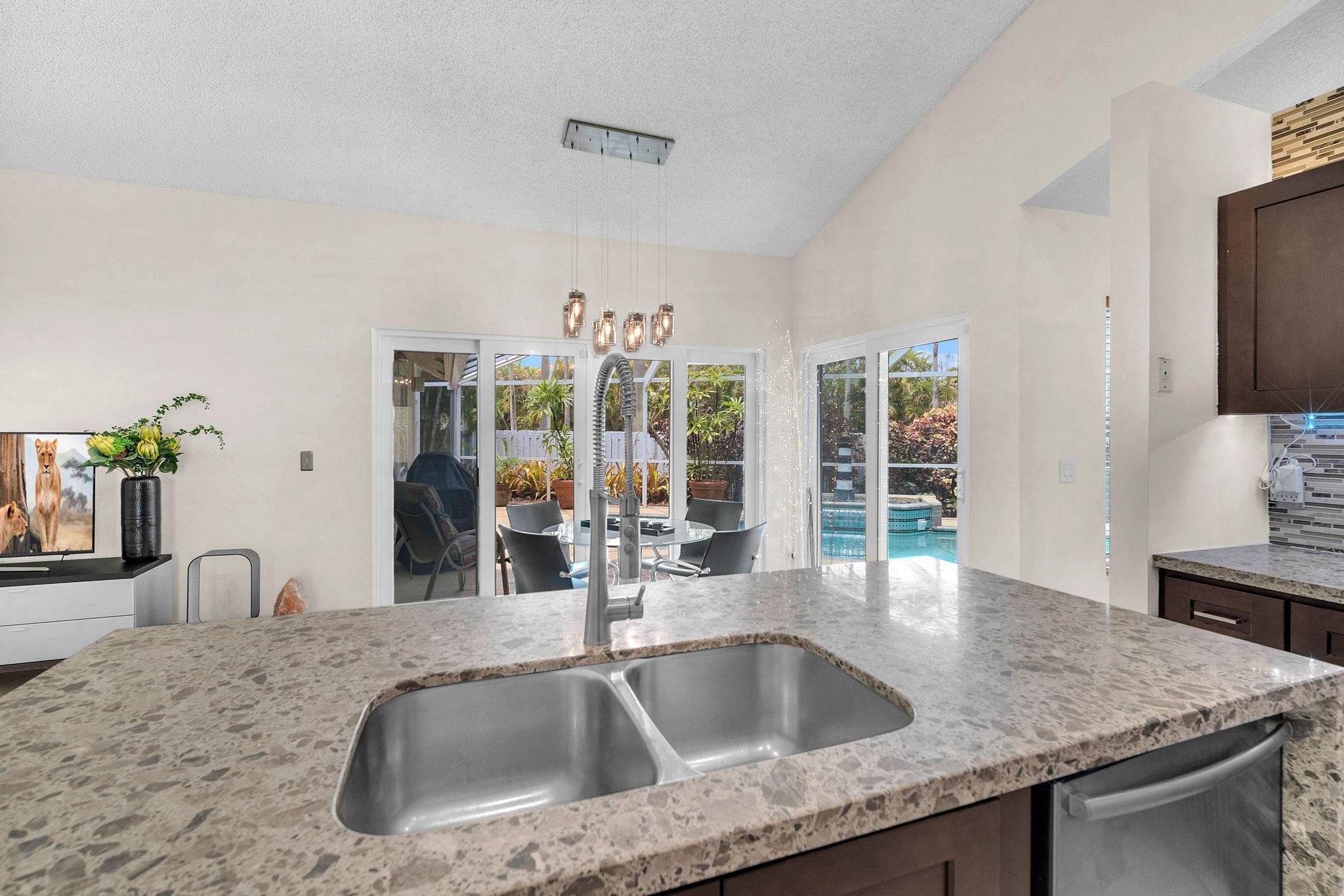 Welcome to paradise! Nestled in a cul-de-sac with lush tropical surroundings, this stunning 4 bedroom, 2 bathroom home includes vaulted ceilings & offers breathtaking views from every angle! Featuring a split-bedroom layout, the master suite has stunning pool views, 2 closets for extra storage, a custom designed bathroom & a private pathway to the outdoor oasis. The other 3 bedrooms are spacious with large closets! The beautifully designed open kitchen has upgraded appliances, marble countertops, & custom cabinets. Sit back & lounge by the screened in pool area or relax under the tiki hut in your fully landscaped, fenced in backyard. Close to Costco, restaurants, & highways. 2022 Roof, 2020 impact windows/doors, 2017 water heater, 2014 AC, freshly painted & landscaped