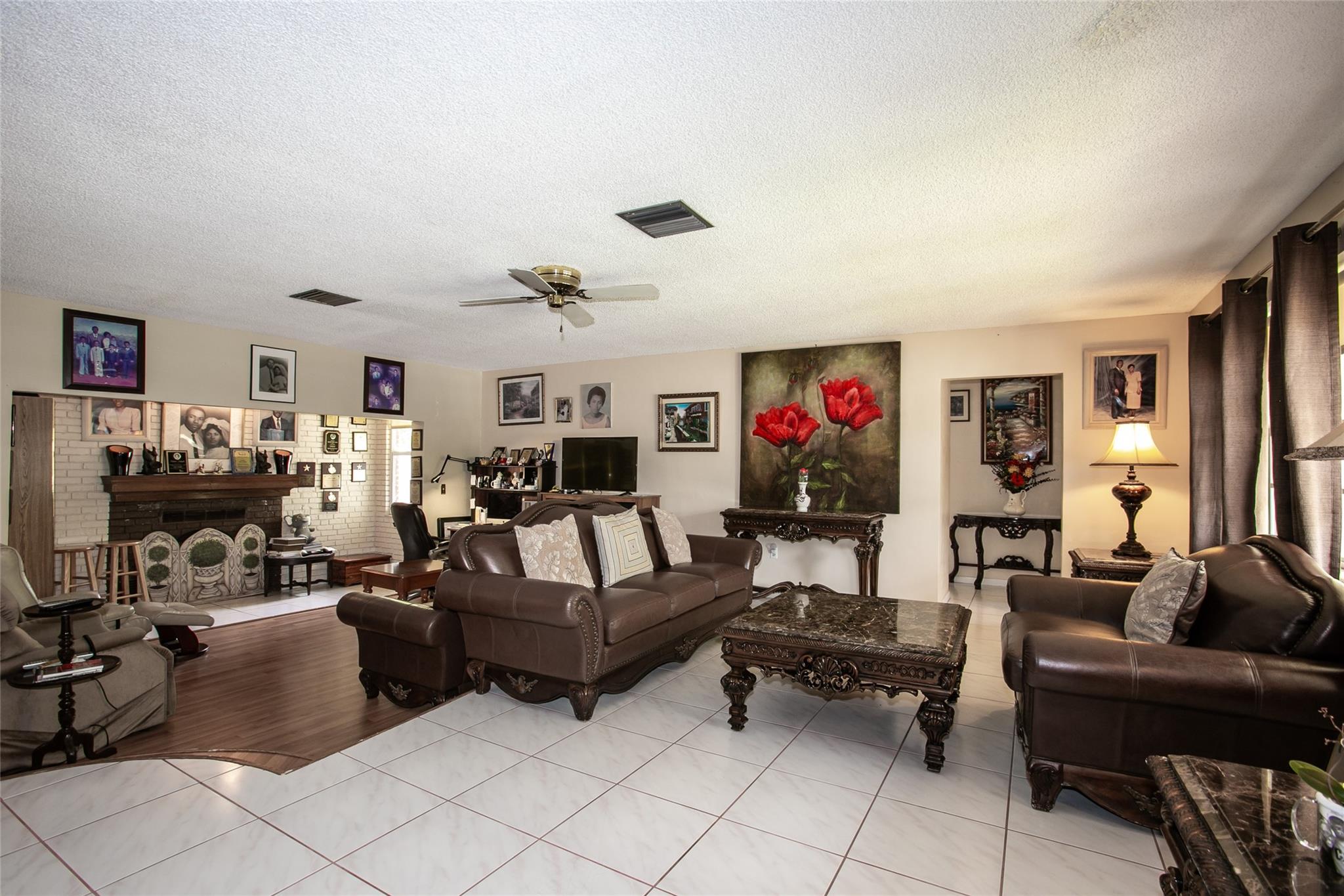 AMAZING OPPORTUNITY TO PURCHASE THIS LARGE 2 BEDROOM 2 BATH HOME WITH A TWO CAR GARAGE IN DESIRABLE PEMBROKE PINES WITH NO HOA*OPEN LIVING AREA WITH A REAL WORKING FIREPLACE*SPACIOUS MASTER BEDROOM WITH REMODELED BATHROOM*EAT IN KITCHEN WITH WHITE CABINETS*TILE & LAMINATE FLOORS* LARGE GUEST BEDROOM*FRENCH DOORS LEADING TO HUGE ROOFED AND TILED SCREENED IN PATIO* GREAT FOR ENTERTAINING *NICELY LANDSCAPED YARD* CIRCULAR DRIVEWAY*NEW AC (MAY 2024)*